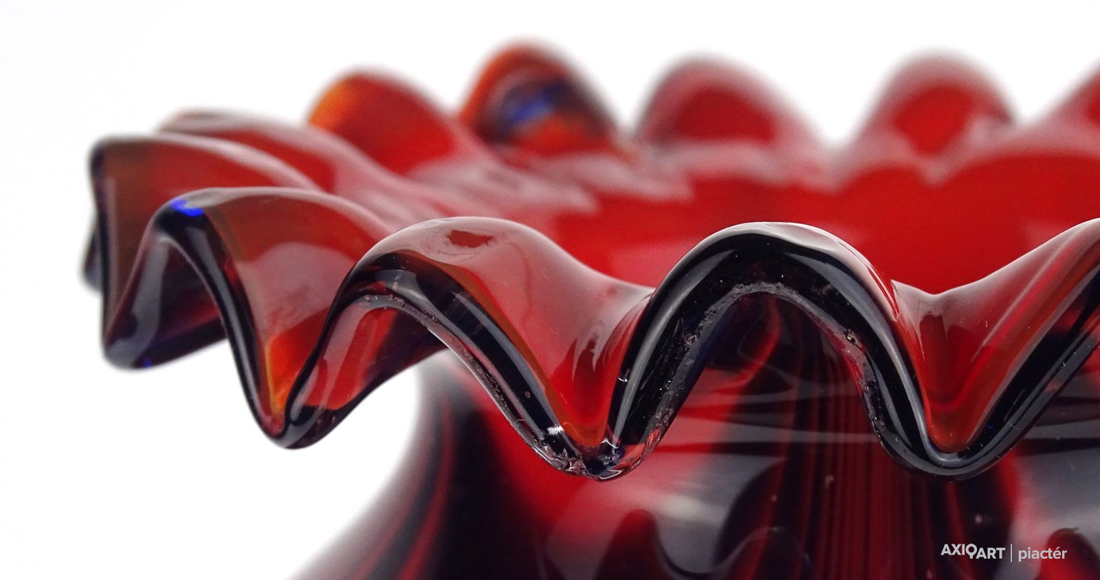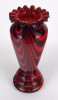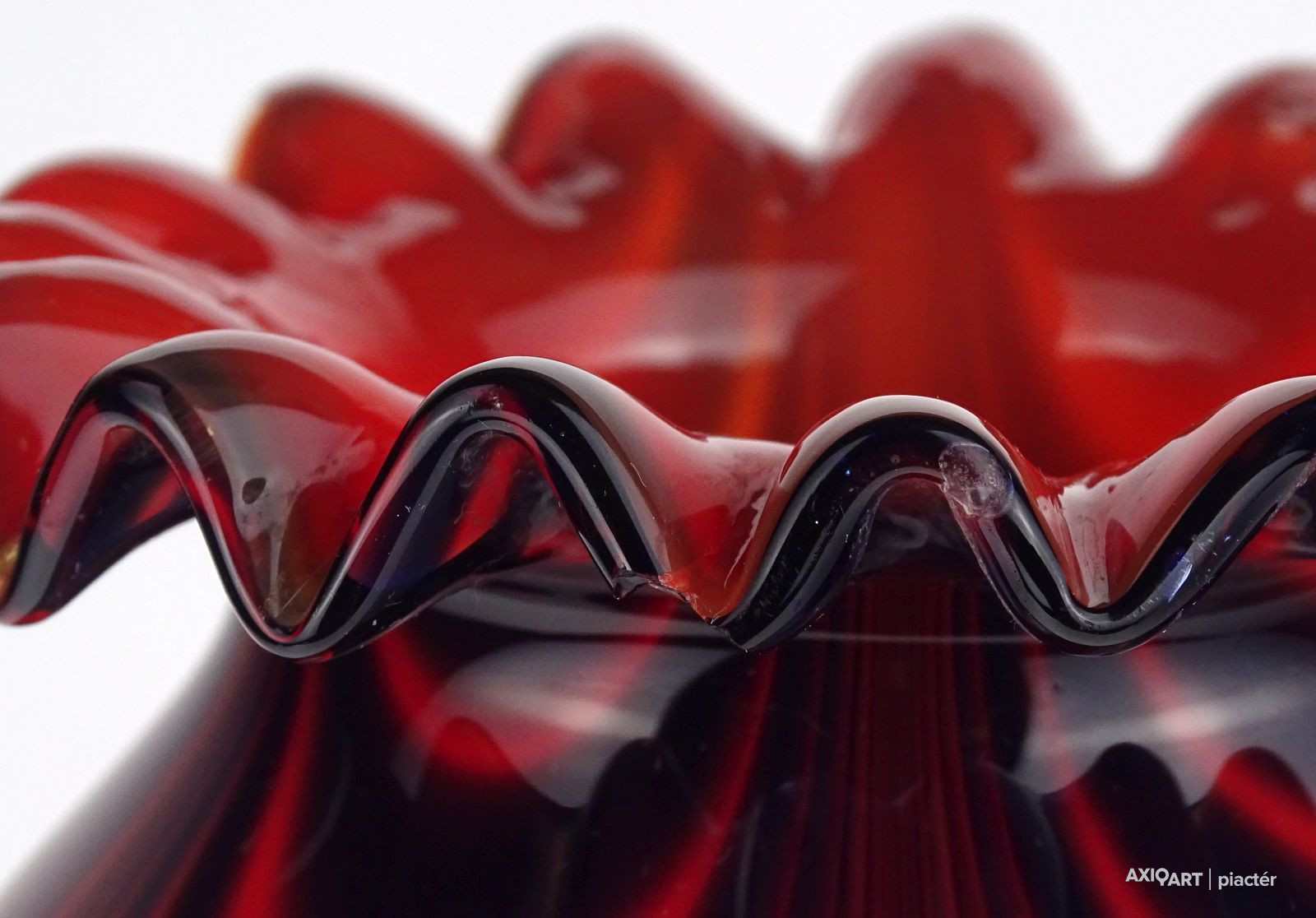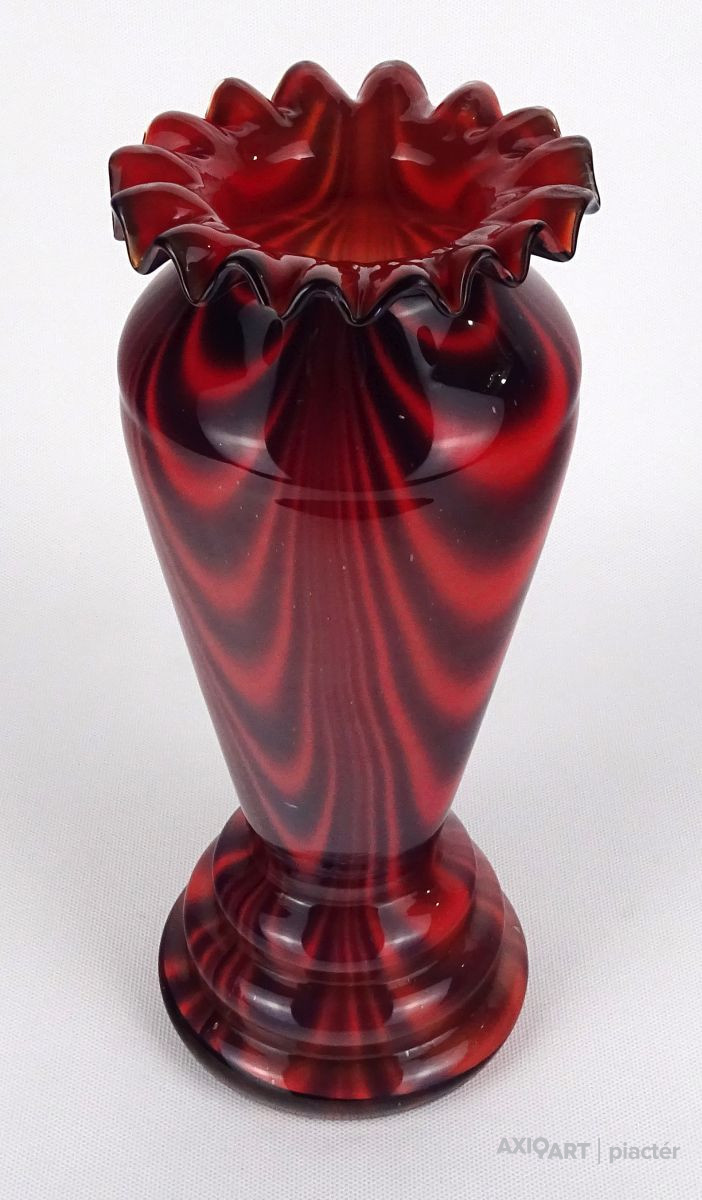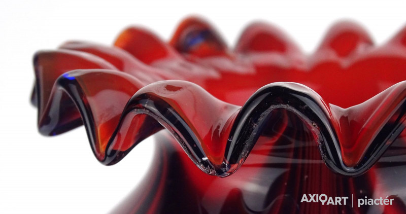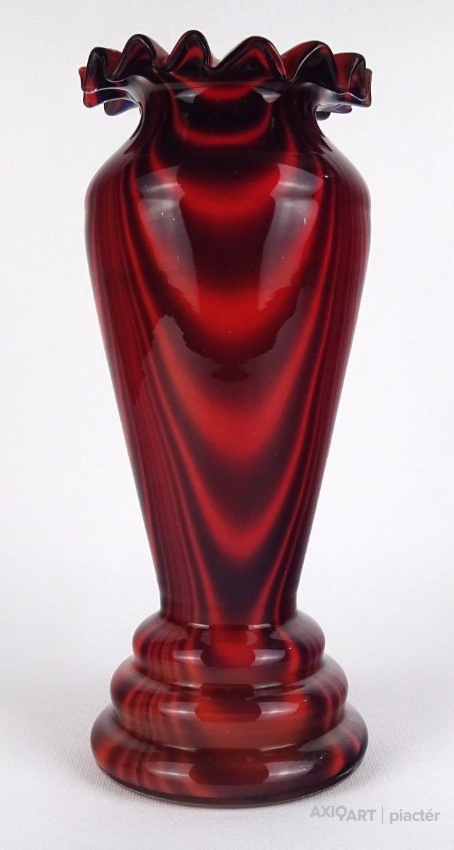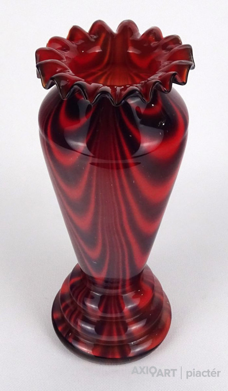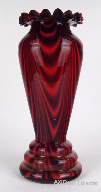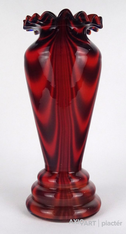 [1Q917/UZ-N] Antik, nagy méretű színezett fújt üveg váza. Fodros szélű muránói üveg váza. Magasság: 29 cm Szélesség: 12 cm Súly: 1.12 kg