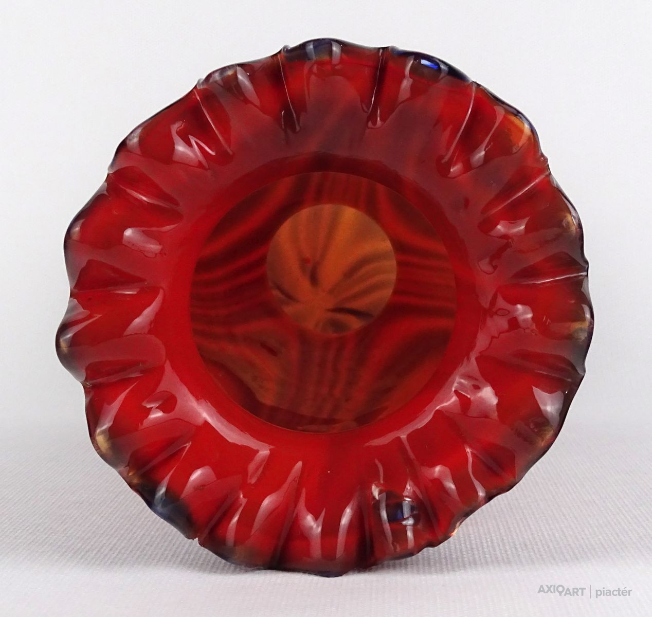 Antik, nagy méretű színezett fújt üveg váza. Fodros szélű muránói üveg váza.
