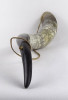 Szürkemarha szarvából készített szaru dísztülök. Körben karcolt, vésett vadász jelenetekkel díszítve. Őz, szarvas, fenyő erdő, vaddisznó ábrázolások láthatók rajta. Hasított bőr akasztási lehetőséggel rendelkezik.
