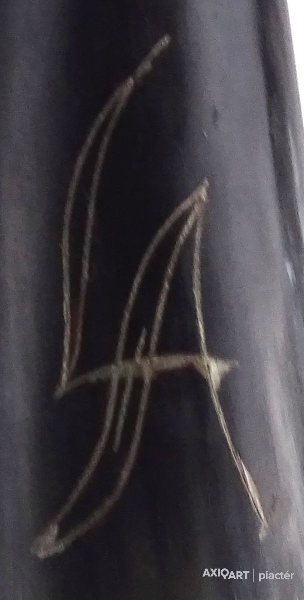 [1Y029/Z018] Olaj farost festmény, üveglap mögött, hibátlan képcsarnokos keretben. Hátoldalán Képcsarnok Vállalat papír címkéje: A művész neve: SCHÉNER MIHÁLY A kép címe: TÁJ Magasság: 66.5 cm Szélesség: 86 cm Súly: 6.54 kg Schéner Mihály festő, grafikus, szobrász, keramikus, bábtervező Medgyesegyháza, 1923-01-9 Elhalálozott: Budapest, 2009. május 11. Honlap: http://www.kormendigaleria.hu/kiadvany.html 1942-1947: Magyar Képzőművészeti Főiskola, tanára: Rudnay Gyula. 1978: Munkácsy-díj; 1984: érdemes művész; 1989: kiváló művész; 1995: Kossuth-díj. 1992-től a Magyar Művészeti Akadémia, 1993-tól a Széchenyi Irodalmi és Művészeti Akadémia tagja. 1956-ig tanított. 1982: Nagyatádi Faszobrász Alkotótelep, 1985: Nemzetközi Acélszobrász Alkotótelep, Dunaújváros. A stílusában felismerhető, mégis sokféle műtárgyat létrehozó ~ gazdag, állandóan alakuló életműve a folyton változó világban helyét kereső, az alkotói szabadságot megvalósító XX. századi képzőművész példázata lehetne. Magát expresszív-szürrealista alkotónak nevezi. Egyaránt dolgozik festékkel, textillel, fával, fémmel. Rajzol, szerkeszt, farag, épít, gyúr, varr és ragaszt, felhasználja a mézesbábok öntőformáit. Festő, rajzoló, textilszobor- és bábkészítő, fazekas, asztalos, esztergályos. Háromlépcsős folyamatban gondolkozik: rajzban tervez, majd fest, szobrot készít, “formába önt”, mindig a végső plasztikai megoldást keresi. Ami állandó és mégis játékosan változékony megjelenésű Schéner művészetében, az a gyermekkori emlékek által meghatározott népi mesterségek iránti tiszteletet kifejező motívumkincs, a tárgyi folklór formakészlete, amely már-már kézjegyként ismétlődik munkáin. Mitologikussá nőtt képzelete új lényeket teremt, pl: a Pigulát, amely disznótestű, emberfejű teremtmény. Schéner festményein a szürrealista motívumokat konstruktív szerkezetbe rendezi, a geometriát és az organikus természeti motívumokat egyaránt beépíti műveibe. A népi, népművészeti formakincsből merített lovas huszárok, betyárok, szegénylegények cifra szűr mentéje, piros csákója, fekete csizmája, az önálló életet élő zsinórdíszek és mézeskalács bábok, a kiskocsik a gyermekkori vásárok, búcsúk színes forgatagába vezet. A primér motívumokat aztán felváltják a vastagon felhordott felületbe karcolt jelek, vonalhálózatok, amelyek a játszó gyermek homokba rajzolt ábráit, a pásztorember fába vésett üzeneteit, az ősember barlang falába rótt mágikus jeleneteit idézik meg. A művész pillanatnyi érdeklődésének megfelelően a színek búvópatakként tűnnek el és jelennek meg ismét. A 60-as években leginkább a formákkal való játék érdekelte, a festmények felülete egyre gazdagodott: a táblaképek felületén applikációk jelentek meg, vagy lemállasztott rétegek hagyták maguk után hiányukat, motívumok nélküli ősformák, archetipikus képzetek bukkantak fel művészetében. A véletlenszerűnek látszó rétegekkel való játék azonban tudatos komponálás eredménye, amely később nyilvánvaló ritmusnak és formai szerkesztettségnek adja át a helyét, mint a Törvénytáblák c. sorozaton. A különböző művészi kifejezési formák egymásra termékenyítő hatással vannak, át- meg áthatják egymást. Textilszobrai, amelyekkel új műfajt teremtett, ugyanazzal az automatikus, expresszív-szürrealista módszerrel készülnek, mint festményei. A hagyományosan a népművészetben alkalmazott anyag, a filc lehetőséget ad a népi formakincs felelevenítésére, amely azonban a művész különös szürrealista átiratában jelenik meg. A szívekkel kivarrt, zsinórdíszes Posztókotlós c. művén mézesbábok lógnak, hátán huszárok lovagolnak. Egész sor textilből készült kéz-plasztikát alkot, amelyeket az ujjakra rávarrt díszekkel öltöztet, személyesít meg. A színes-különös világból aztán ~ újra puritán képi és formai rendbe juttatja el a nézőt, majd nemsokára tépett, gyűrt, vágott, csorgatott, repedezni hagyott szenvedélyesen vonagló képi felületeket hagy hátra. Schéner készített apró gyermekjátékokat, térstruktúra-tereket, mászókákat is. A magyar népi formák mellett szürreális játékaiban gyakran alkalmaz görög mitológiai alakokat, “elkentaurosodott” lovakat, Gorgó-fejeket, sellőket, hárpiákat, Pán-ábrázolásokat. Schéner nemcsak saját művészetéről publikál, hanem művésztársairól is számos írása jelenik meg, elsősorban az Új Auróra c. folyóiratban, amelynek egy ideig főmunkatársa volt. Irodalom kiállítása, Magyar Építőművészet, 1962/4. Húsz év után, Művészet, 1965/4. BOZÓKY M.: ~, Tiszatáj, 1968/5. PERNECZKY G.: Nincs uborkaszezon, Élet és Irodalom, 1969. augusztus 8. BARÁNSZKY-JÓB L.: ~, Művészet, 1969/9. LÁSZLÓ GY.: ~ kaposvári kiállítása, Jelenkor, 1969/4. MAJOR M.: Pásztorok, betyárok, huszárok - kezek, Tükör, 1970. szeptember 15. FRANK J.: Bemutatjuk ~t, Élet és Irodalom, 1972. május 6. ról kiállítása ürügyén, Képzőművészeti Almanach, Budapest, 1972 Sötétkék kokasok, Élet és Irodalom, 1973. szeptember 9. MAJOR M.: ~ játékai, Élet és Irodalom, 1974. július 27. BARTA J.: Egy különös művész, Alföld, 1974/6. VADAS J.: Szárnykészítők, Élet és Irodalom, 1975. október 4. JUHÁSZ F.: A halál ellen játszani, Élet és Irodalom, 1975. május 17. PAP G.: Kincsek és műkincsek, Művészet, 1975/6. P. SZŰCS J.: Az utak kettéválnak, Művészet, 1978/3. Békési művészet, Művészet, 1978/7. SZAMOSI F.: ~ [kismonográfia], Budapest, 1978 VADAS J.: Játék a játékkal, Élet és Irodalom, 1979. augusztus 18. NÉMETH L.: ~ műveiről, Művészet, 1979/4. MIKLÓS P.: Mit akar ez a múzeum?, Művésze