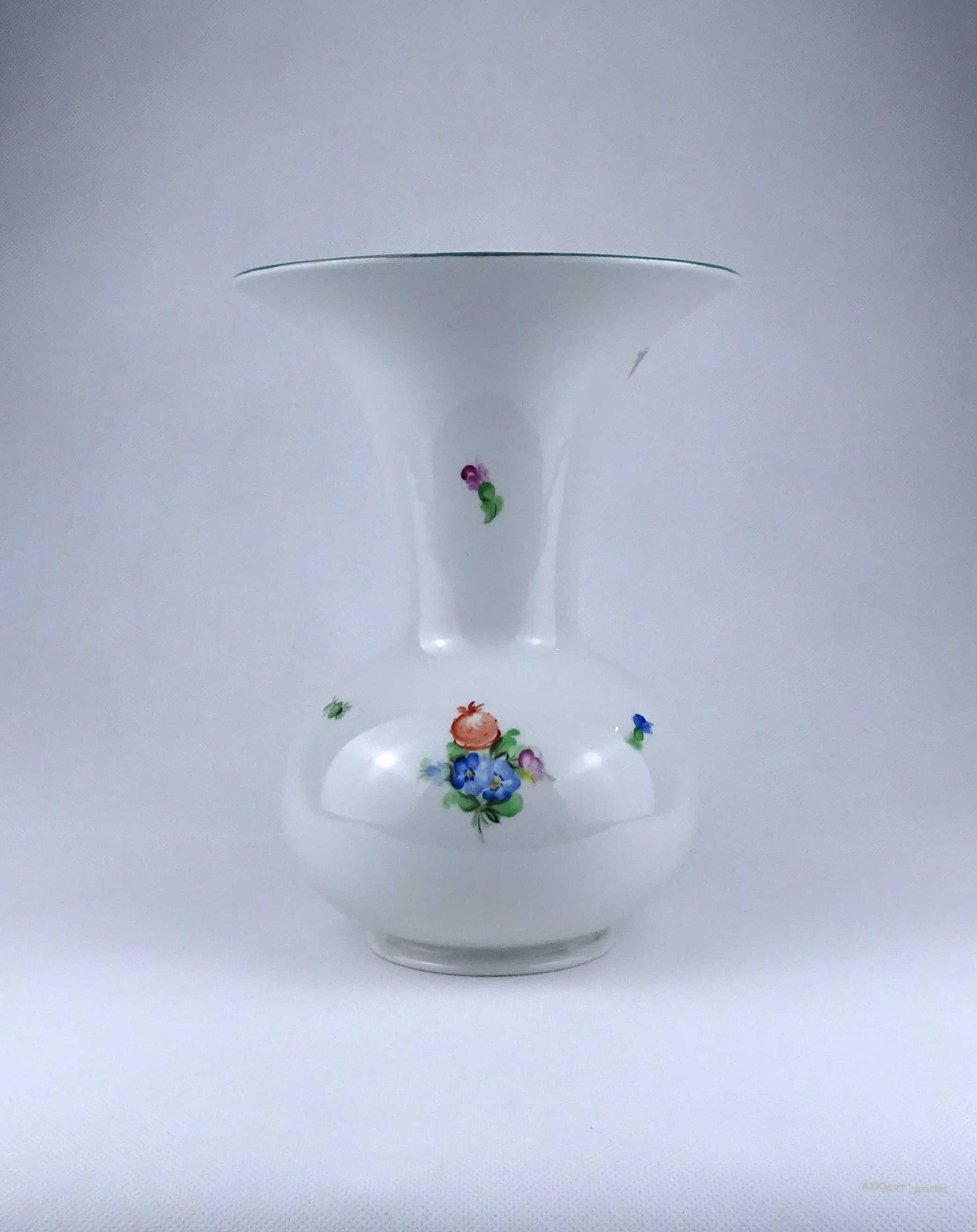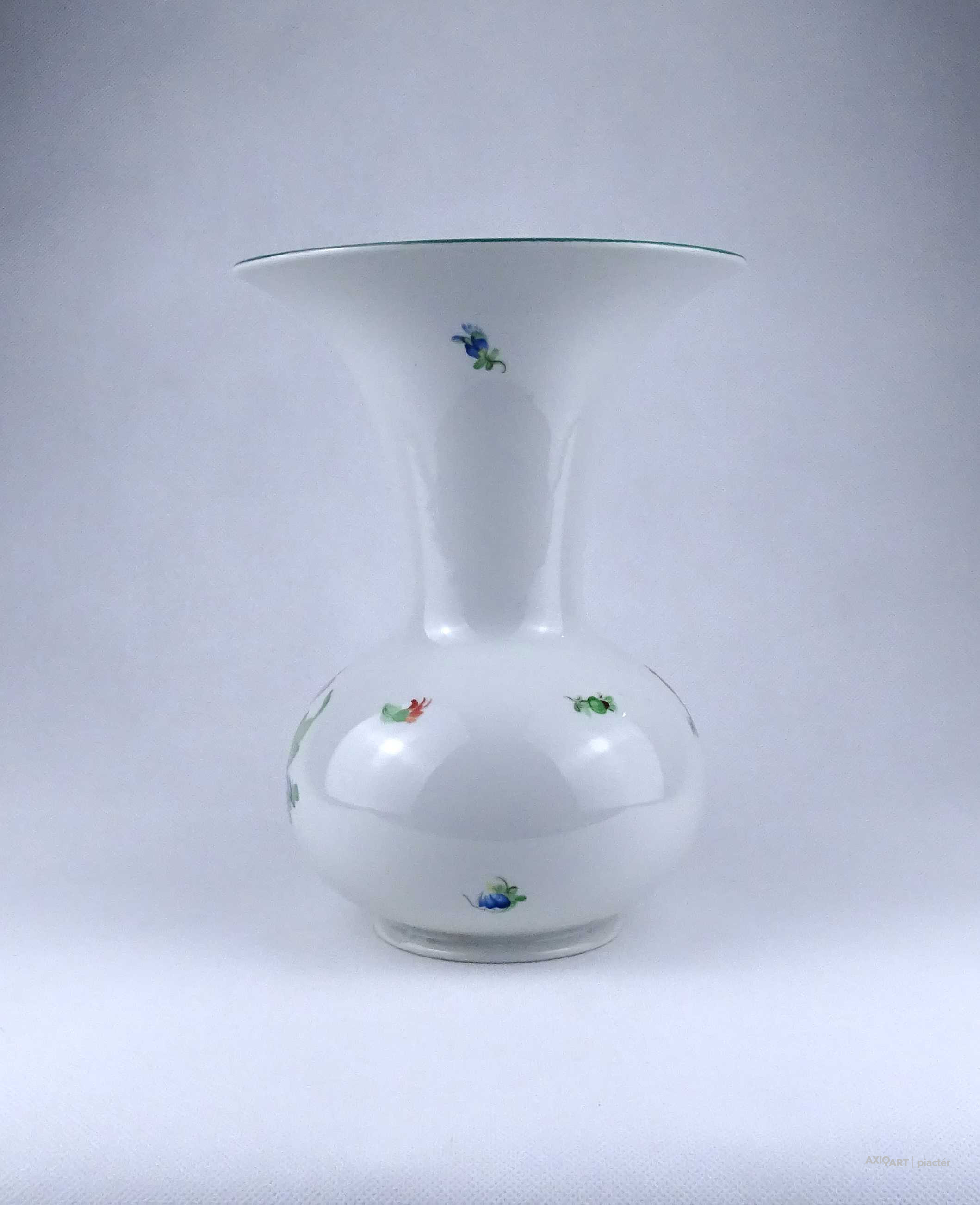 [1Z837/X333] Régi, nagyméretű, szép állapotú, virágmintás Herendi porcelán Tertia váza. Felső pereme egy helyen restaurátor által szakszerűen javított. Alján zöld Herendi Tertia jelzés: TERTIA Mélynyomással: HEREND Karcolt formaszám: 6656 Magasság: 26.3 cm Szélesség: 20.1 cm Súly: 1.71 kg