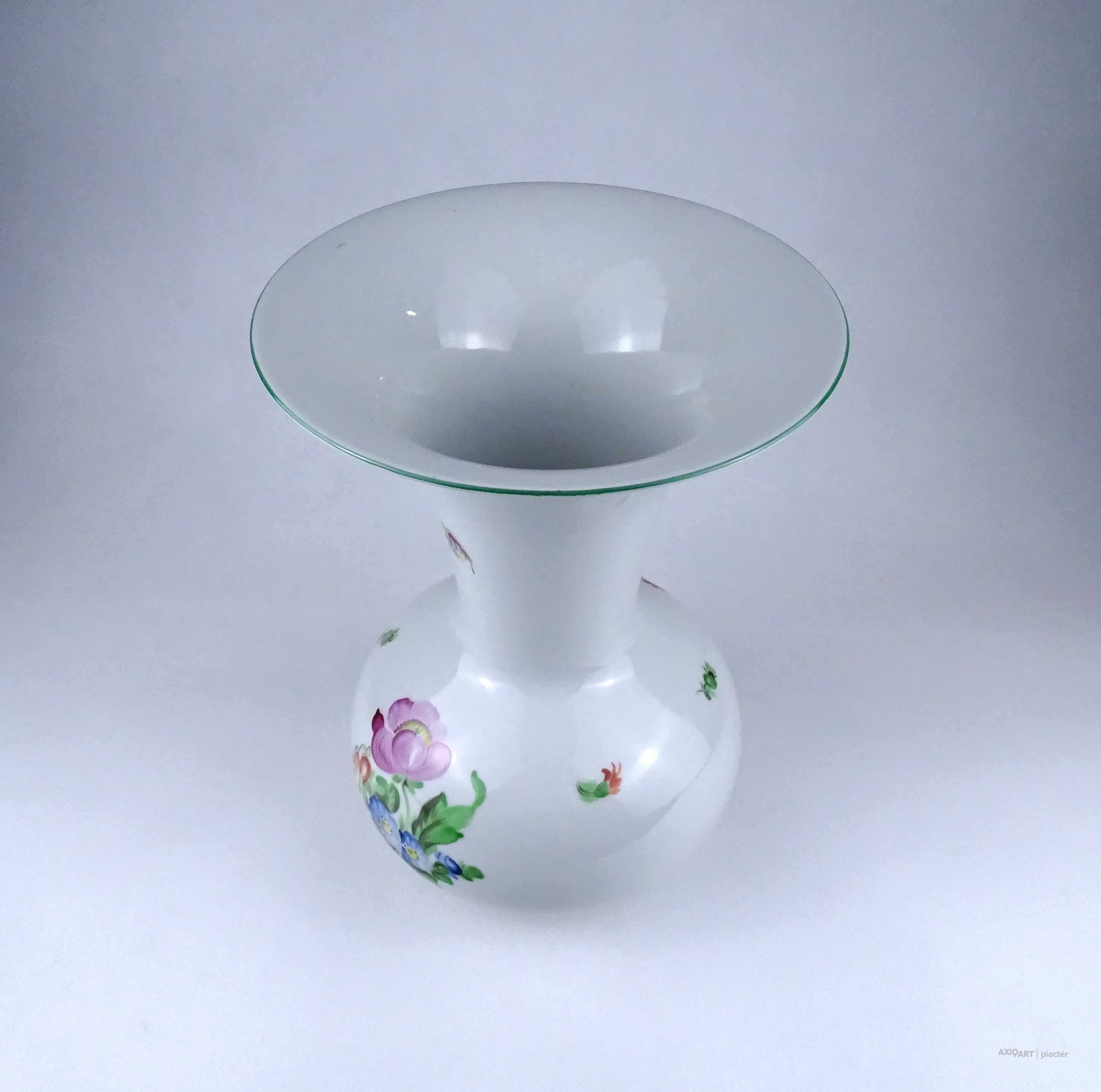 Régi, nagyméretű, szép állapotú, virágmintás Herendi porcelán Tertia váza. Felső pereme egy helyen restaurátor által szakszerűen javított.
