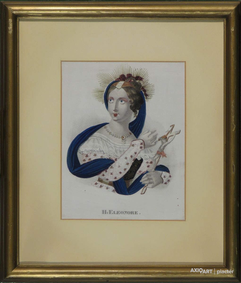 [FKC507/Bp45/39] A kép mérete: 30 x 24 cm keret nélkül. Készült: Temperával színezett litográfia, Papír A kép Német művész 1800 körül alkotása. Jelezve középen lent "H: Eleonore (Heilige)" A festmény jó állapotban van. Keret: Ép