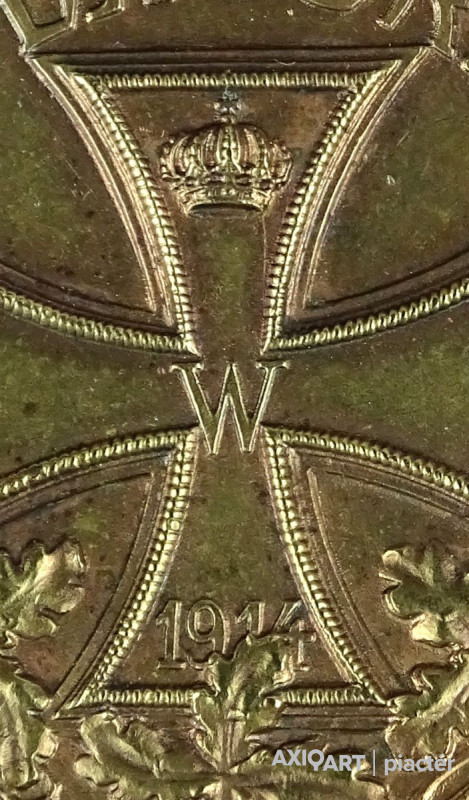 A világháborús német emlékérme, aranyozott változata, előlapja felhelyezett harci jelvénnyel.Az érem hátlapja, rézbevonatú változat.