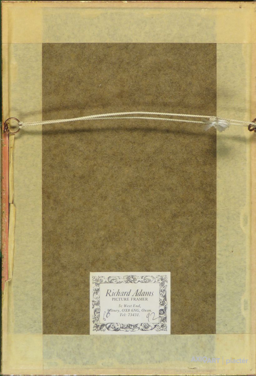 [FKD019/Bp58/38] A kép mérete: 22 x 34 cm keret nélkül. Készült: Rézkarc, Papír A kép Remsey Jenő György (Nagykőrös, 1885, Gödöllő, 1960) alkotása. Jelezve jobbra lent "Remsey (ceruzával)" A festmény jó állapotban van. Keret: Ép Magyar festők és grafikusok életrajzi lexikona I-II. Festő. 1905-1909 között Budapesten az Iparrajziskolában tanult, majd a gödöllői művésztelep tagja lett, ahol 1914-ig dolgozott. 1909-ben a KÉVE tagjai sorába választotta, s rendezésükben számos tárlaton vett részt. 1913-ban a nagybányai szabadiskolában képezte magát, majd a KÉVE tagjaként ösztöndíjjal Párizsba is elkerült, de tanulmányutakat tett Bécsbe és két ízben Münchenben is. 1924-ben egyik alapítója és elnöke volt a Spirituális Művészek Szövetségének, majd létrehozta annak lapját, a Fáklyát. 1937-41 között a Nemzeti Figyelő munkatársaként dolgozott, 1952-ben tagja lett a Szinyei Alkotóközösségnek, 1960-ban pedig a Rézkarcoló Művészek Alkotóközösségének. 1909-ben vett részt először a KÉVE tárlatán, 1920-ban újra. 1923-ban a Helikonban, 1924-ben és 1944-ben a Nemzeti Szalonban, 1935-ben és 1964-ben az Ernst Múzeumban, 1947-ben pedig a Szalmássy Galériában volt kiállítása. 1957-64 között több tárlatot is rendeztek műveiből Párizsban, de a KÉVE által alkotásai elkerültek berlini, düsseldorfi, bécsi, genfi, nürnbergi, lipcsei seregszemlékre is. Remsey hosszú pályájának kezdete a szecesszió stílusirányzatához kapcsolódott. Részt vett a szecesszió eszmeiségének elkötelezett gödöllői művésztelep munkájában, s egészen haláláig Gödöllőn élt. Így nem csoda, ha mindvégig ápolta a művésztelep emlékét, mely saját pályáján is az első döntő jelentőségű inspirációt és művészetközösséget jelentette. Akárcsak Körösfői és Nagy Sándor, ő is szimbolikus sugallatú műveket alkotott, amelyekre a lapidáris formaalkotás, a stilizáció, a vonalkontúrok hangsúlyos szerepe, a homogén színsíkok alkalmazása volt jellemző. Gobelintervezéssel is foglalkozott. Díjak: Benczúr-díj; Hors Conours-oklevél, Bécs; Gödöllő város díszpolgára. Több műve a Magyar Nemzeti Galéria tulajdonát gazdagítja (Énekeskoldusok, Ködfoszlás a Dunán, Az irgalmas szamaritánius, Szent család, Önarckép). A budapesti Lónyai utcai református gimnázium számára 1942-ben egy freskót alkotott (A magyar reformáció szellemtörténete). (Éber, RI-NM, MMFRA, ML) Magyar festők és grafikusok életrajzi lexikona I-II. Műgyűjtők és kereskedők kézikönyve Festő. Budapesten tanult, majd a gödöllői művésztelep tagja volt. 1909-ben koll. kiállítása volt a KÉVE tárlat keretében. 1913-ban a nagybányai festőiskolában dolgozott. A KÉVE tagjaként ösztöndíjjal Párizsba is elkerült, de tanulmányutakat tett Bécsben, és Münchenben is. 1920-ban ismételten állított ki műveket a KÉVE tárlatán. 1923-ban a Helikonban, 1924-ben a Nemzeti Szalonban volt kiállítása. A Spirituális Művészek Szövetségének tagja volt. Alkotásait stilizálja s főleg dekoratív hatásokra törekszik. Több műve az MNG tulajdonában van. (Éber, RI-NM) Magyar festők és grafikusok adattára Művészi képzettségét az a kapcsolat segítette kibontakozni, amelyet Gulácsy Lajossal, Erdei Viktorral és Fülep Lajossal teremtett. A KÉVE tagja lett és ösztöndíjjal Párizsba került. Tanulmányutakat tett Bécsben és Münchenben, majd itthon a Gödöllői Művésztelepre került. Alapító tagja volt az 1924-ben alakult Spirituális Művészek Szövetségének. 1924-ben és 1944-ben a Nemzeti Szalonban, 1935-ben és 1964-ben az Ernst Múzeumban és 1947-ben a Szalmássy Galériában vett részt csoportos kiállításokon. Eleme a kompozíció, a sokalakos, a nagy csoportokat fölölelő képek problémája, amely képszerkesztő hajlandóságát, rendező képességét foglalkoztatja és alkalmat ad arra, hogy témáit a maga sajátos módján adja elő. Ez pedig a díszítő stilizálás nyelve. Képei síkszerűek, nagy dekoratív színfoltok mozaikszerű együttesei, amelyek erőteljes kontúrhatásukkal és fényproblémáikkal gobelin terveknek vagy üvegfestményeknek hatnak. Írói munkássága is számottevő. - Irod.: Gellér Katalin - Keserű Katalin: A gödöllői kismesterek. MTA 1981. I. 441. Művészeti lexikon I-IV. Festő, költő és író. Bp.-en, Bécsben és Münchenben tanult, majd a gödöllői művésztelep tagja lett. Számos külföldi kiállításán kívül 1909-ben és 1920-ban kollektív kiállítása nyílt a KÉVE-tárlat keretében, 1923-ban a Helikon szalonjában, 1924-ben és 1944-ben a Nemzeti Szalonban, 1935-ben és 1964-ben az Ernst Múzeumban, 1947-ben a Szalmássy Galériában. 1957 és 1964 között Párizsban több kiállítást rendeztek műveiből. 1924-ben egyik alapítója s elnöke volt a Spirituális Művészek Szövetségének. Több műve (Énekeskoldusok, Ködfoszlás a Dunán, Az irgalmas szamaritánius, Szent Család, Önarckép stb.) a Nemz. Gal. tulajdona. Szecessziósan stilizált, szimbolikus ihletésű képeivel expresszív hatásokra törekedett. Művészeti lexikon I-II. Budapesten tanult, azután a gödöllői művésztelep tagja volt. 1909. és 1920. kollektív kiállítása volt a Kéve tárlat keretében. 1923. a Helikon szalónjában, 1924. a Nemzeti Szalónban. A Spirituális Művészek Szövetségének tagja. Énekes koldusok c. olajfestménye a Székesfővárosi Múzeum, Anyám arcképe, Ködfoszlás a Dunán, Az irgalmas szamaritánius, a Szent Család és Önarckép c. művei a Szépművészeti Múzeum tulajdonában vannak. Képeit stilizálja s főleg dekoratív hatásokra törekszik. Művész életrajzok kortárs magyar képzőművészek Művészeti tanulmányait Bécsben, Münchenben és a gödöllői művésztelepen végezte. 1907 óta szerepel a hazai és külföldi nyilvá