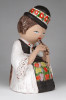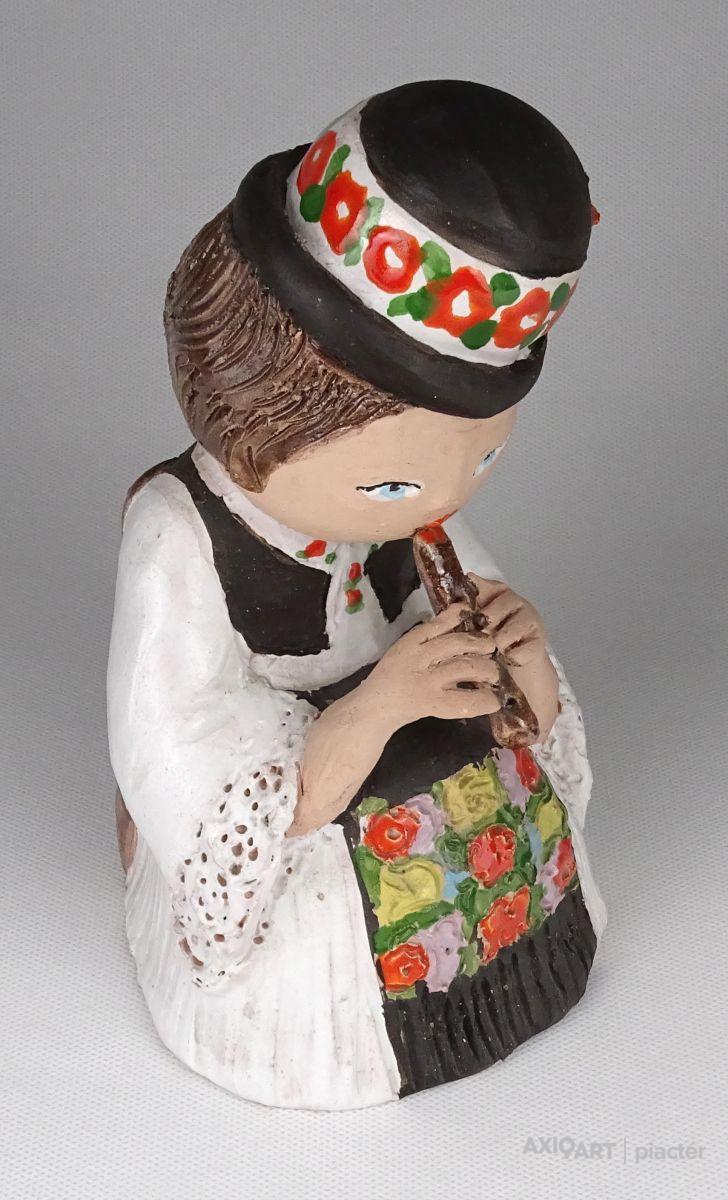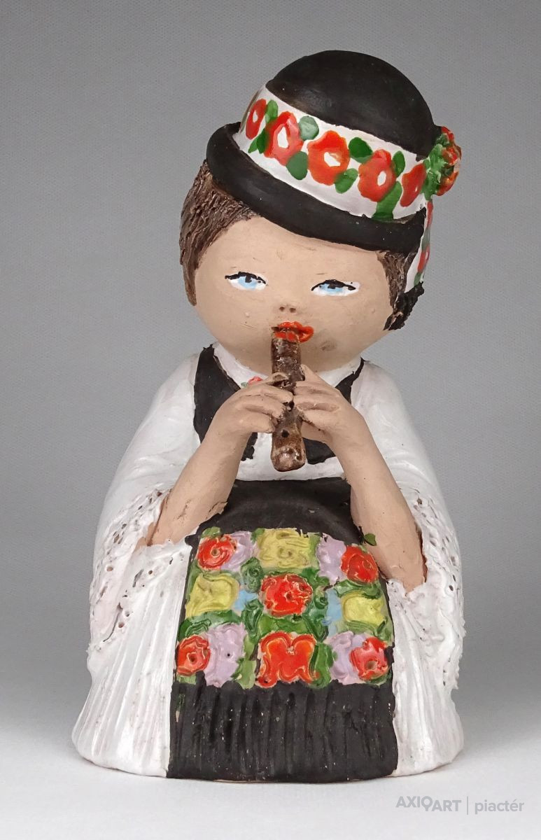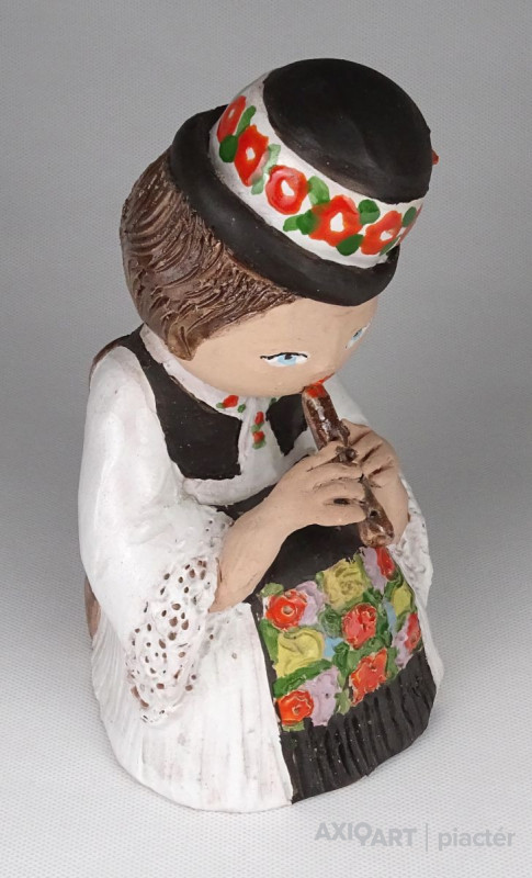 Hibátlan állapotú, kézi festéssel díszített, jelzett kerámia figura. Népviseletes kerámia szobor.