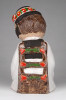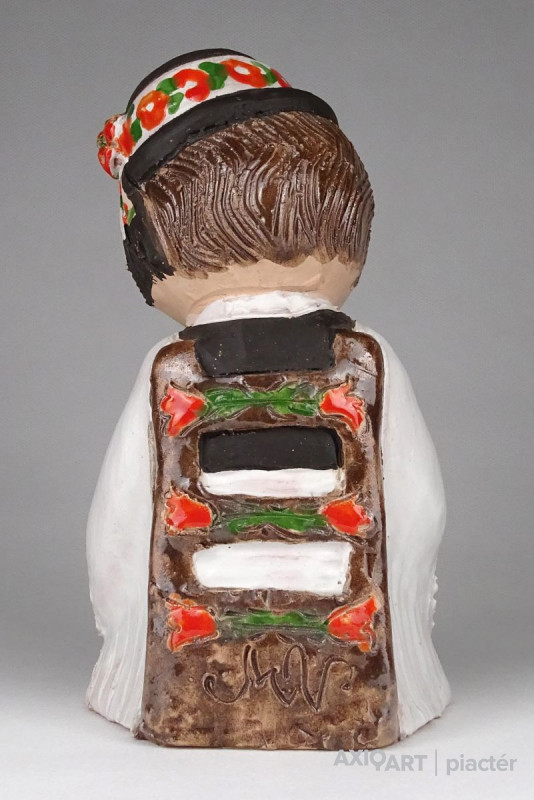 [1M526/X225/2] 25% ÁRENGEDMÉNY MINDEN TERMÉKÜNKRE Dec. 14-ig Hibátlan állapotú, kézi festéssel díszített, jelzett kerámia figura. Népviseletes kerámia szobor. Hátoldalán karcolt jelzés: M.V. Magasság: 19.5 cm Szélesség: 11 cm Súly: 0.405 kg