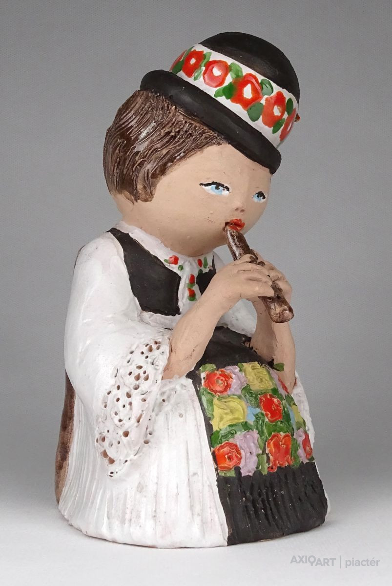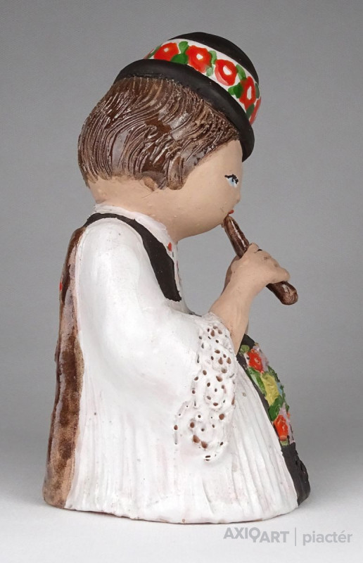 Népviseletes jelzett kerámia furulyázó legény figura 19.5 cm