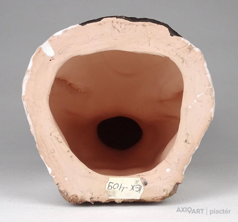 [1M185/UZ-N] 25% ÁRENGEDMÉNY MINDEN TERMÉKÜNKRE Dec. 14-ig Hibátlan állapotú, jelzett iparművészeti kortárs kisplasztika, afroamerikai nő kerámia szobor. Hátoldalán karcolt jelzés: VA (Vertel Andrea) Ujja profi restaurátor által javított! Magasság: 42.5 cm Szélesség: 21.5 cm Súly: 4.185 kg Vertel Andrea keramikus Budapest, 1953-08-15 1971: Képző- és Iparművészeti Szakközépiskola, mesterei: Sándor István, Lőrincz Győző. 1993: a kecskeméti Nemzetközi Kerámia Stúdió ösztöndíja. 1975-től az Iparművészeti Vállalat és a Képcsarnok galériában forgalmazta munkáit. Egyedileg mintázott figurális kerámiát készít. Porcelánt és samottot is használ, a finom és a durva anyagok ellentétét aknázza ki alkotásaiban. Irodalom KESZTHELYI K.-LACZKÓ I.: A magyar kerámiaművészet I. Alkotók, adatok 1945-1998, Budapest, 1999. Egyéni kiállítások Egyéni kiállítások 1980 • Videoton Művelődési Ház, Székesfehérvár 1989 • Képcsarnok, Sopron • Dési Huber Terem, Veszprém • Kommunális Galéria, Vác • Idea Castellum • Puchheim 1991 • Royal Art Galéria, Tihany 1995 • Képcsarnok, Sopron • Medgyessy Terem, Debrecen • Rudnay Terem, Eger • Kastély Galéria, Kapolcs • József Attila Művelődési Ház, Göd Válogatott csoportos kiállítások Válogatott csoportos kiállítások 1988 • Internationales Art Festival, Deutsches M., München 1993 • Art revue Budapest, Budapest • Balassa Bálint Múzeum, Esztergom 1996 • XIV. Országos Kerámia Biennálé, Pécs. Forrás: artportal.hu