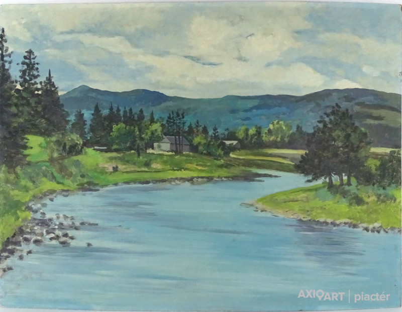 [FK3279/Bp304/37] A kép mérete: 35 x 41 cm keret nélkül. Készült: Olaj, Farostlemez A kép Áron-Nagy Lajos (Budapest, 1913, Székesfehérvár, 1987) alkotása. Jelezve Balra lent "Áron-Nagy" A festmény jó állapotban van. Keret: Ép A festmény hátoldalán: a Művészeti Alap és a Képcsarnokvállalat raglapja látható, és autográf írással: Áron-Nagy lajos "Parti fák" 1968 Magyar festők és grafikusok életrajzi lexikona I-II. Budapest, 1913 - Székesfehérvár 1987 Festő, 1933-38 között a budapesti Képzőművészeti Főiskolán tanult Benkhard Ágost irányítása mellett. Ösztöndíjjal több európai városban járt. 1939-től Székesfehérvárott dolgozott, mint rajzpedagógus. 1935-től vett részt tárlatokon. 1943-ban gyűjteményes kiállítása volt a fővárosban, 1955-ben a Fényes Adolf Teremben, 1959-ben, 1964-ben és 1973-ban Székesfehérvárott, 1967-ben a Csók Galériában, 1969-ben Győrött, 1973-ban Egerben, 1976-ban Veszprémben és Várpalotán. Számos műv. díj tulajdonosa. 1938-ban a Balló-díjat, 1943-ban a római Collegium Hungaricum-díjat, 1958-ban Alba Regia-díjat, 1965-ben Csók István-díjat, 1956-ban és 1967-ben Munkácsy-díjat kapott. "Csongor és Tünde" című pannója a Vörösmarty Színházban, az "Ezeréves Fehérvár" című nagyméretű munkája a Székesfehérvári Velence Szállóban található. Műveit a '30-as évek posztimpresszionizmusával ötvöző expresszivitás jellemzi. A lírai hangulatú, finom festőiségű életképektől, tájképektől és portréktól az egészen elvont dekoratív folthatásokig Áron szinte mindent kipróbált. A liptói táj élménye volt az alapindok ahhoz a kísérlethez, mely egész munkásságát foglalkoztatta. Munkái megtalálhatók a Magyar Nemzeti Galériában és a székesfehérvári István Király Múzeumban. (ML, S.P.: Műv. 1968/3, F.M.K.: Műv. 1978) Magyar festők és grafikusok adattára (Budapest, 1913 - Székesfehérvár, 1987.) Tanulmányait a Képzőművészeti Főiskolán végezte 1933-1938 között, ahol Benkhard Ágost volt a mestere. Ösztöndíjjal bejárta a nyugateurópai nagyvárosokat. 1939 óta Székesfehérváron volt rajztanár. 1935 óta jelentkezik a kiállításokon: 1955-ben a Fényes Adolf Teremben, 1959-ben és 1973-ban Székesfehérvárott, 1967-ben a Csók Galériában, 1969-ben Győrött, 1973-ban Egerben, 1974-ben a Csepeli Galériában. 1976-ban Veszprémben és Várpalotán volt önálló tárlata. Számos kitüntetés tulajdonosa: 1958-ban Alba Regia, 1965-ben Csók István díj, 1956-ban és 1967-ben Munkácsy-díjat kapott. Posztimpresszionisztikus tájképeket és portrékat fest. "Csongor és Tünde" c. pannója a Vörösmarty Színházban, az "Ezeréves Fehérvár" c. nagyméretű alkotása a székesfehérvári Velence Szállóban található. Képei vannak a MNG-ban és a székesfehérvári István Király Múzeumban. - ML. Magyar festők és grafikusok életrajzi lexikona I-II. Műgyűjtők és kereskedők kézikönyve Bp., 1913 - Székesfehérvár, 1987. Festő. 1933-38 k. a bp.-i Képzőművészeti Főiskolán tanult Benkhard Ágostnál. Ösztöndíjjal több európai városban járt. 1939-től Székesfehérvárott működött mint rajztanár. 1935-től szerepelt tárlatokon, 1943-ban gyűjteményes tárlata volt a fővárosban, 1955-ben a budapesti Fényes Adolf Teremben, 1959-ben, 1964-ben, 1973-ban Székesfehérváron, 1967-ben a Csók Galériában, 1969-ben Győrött, 1973-ban Egerben, 1976-ban Veszprémben és Várpalotán. Számos díj és kitüntetés tulajdonosa. 1938-ban a Balló-díjat, 1943-ban a római Collegium Hungaricum díját, 1958-ban Alba Regia díjat, 1965-ben Csók István díjat, 1956-ban és 1967-ben Munkácsy-díjat kapott. "Csongor és Tünde" c. pannója a Vörösmarty Színházban, az "Ezeréves Fehérvár" c. nagyméretű alkotása a székesfehérvári Velence Szállóban található. Munkáit a 30-as évek posztimpresszionizmusával ötvöződő expresszivitás jellemzi. A lírai hangulatú, finom festőiségű életképektől, tájképektől és portréktól az egészen elvont dekoratív folthatásokig szinte mindent kipróbált. A liptói táj élménye volt az alapindok ahhoz a kísérlethez, mely egész munkásságát foglalkoztatta. Munkái megtalálhatók a MNG-ban és a székesfehérvári István Király Múzeumban. (ML, S.P.: Műv. - 1968/3, F.M.K.: Műv.-1978) Művészeti lexikon I-IV. (Bp., 1913. nov. 7.- ) Festő, Munkácsy-díjas, 1933-38 között a Képzőművészeti Főiskolán tanult Benkhard Ágostnál. Ösztöndíjjal bejárta a Ny-európai nagyvárosokat. 1939 óta Székesfehérváron középiskolai rajztanár. 1943-ban és 1955-ben gyűjt. kiállítása volt Bp.-en, 1964-ben Székesfehérváron. Tájképeket, portrékat fest. Művész életrajzok kortárs magyar képzőművészek festő, Munkácsy-díjas Budapest, 1913 1933-1938 között Benkhard Ágost növendéke a Képzőművészeti Főiskolán, majd a Balló Ede-ösztöndíjjal bejárta Nyugat-Európát. Újabban Bulgáriában, Csehszlovákiában, Görögországban, Lengyelországban és Finnországban volt tanulmányúton. 1939 óta Székesfehérvárott művész-pedagógus. 1935 óta jelentkezik kiállításokon, 1955-ben a Fényes Adolf Teremben, 1959-ben, 1964-ben, 1973-ban, 1981-ben és 1983-ban Győrött, 1973-ban Egerben, 1976-ban Veszprémben és Várpalotán, 1979-ben Dunaújvárosban, 1980-ban a Bolgár Kulturális Központban voltak jelentősebb tárlatai. Számos művészeti elismerés - Alba Regia-díj (1958), Csók István-érem (1965), Velinszky László-díj (1970) stb. - kitüntetettje, a Munkácsy-díj (1965, 1967) tulajdonosa. - Legkedvesebb műfaja a tájkép, indulásakor a Tisza-vidék, később a Velencei tó, a Balaton, majd utazásai nyomán görög, bolgár és szlovákiai tájak ihlették. Stílusbelileg a harmincas évek poszt-impresszionizmusából kinőtt expresszivitás jellemzi, amelyen bel
