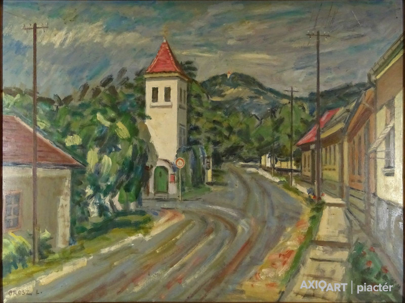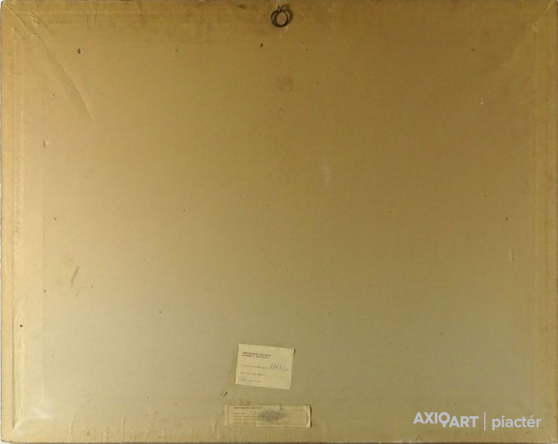 [FK0037/Z018] A kép mérete: 50 x 70 cm keret nélkül. Készült: Olaj, Vászon A kép Paizs László (Szentpéterúr, 1935) alkotása. Jelezve Jobbra lent "P. L." A festmény jó állapotban van. Keret: Ép A festmény hátoldalán a Képcsarnokvállalat címkéje található. Magyar festők és grafikusok életrajzi lexikona I-II. Festő. Tanulmányait a budapesti Iparművészeti Főiskolán végezte 1959-ben. Z. Gács György, Rákosy Zoltán és Szentiványi Lajos növendéke volt. A '60-as évek első felében hagyományosabb felfogású olajképeket festett, mozaikokat, freskókat, utóbb a pop-art körébe tartozó, a francia Arman munkáival rokon műveket alkotott. 1961 óta kiállító művész. Egyéni (Fényes Adolf Terem, Csók Galéria, Műcsarnok, Magyar Nemzeti Galéria, Halászbástya, Bástya Galéria, Vigadó Galéria, Budapest Galéria, Győr, Szombathely, Szeged, Zalaegerszeg, Duisburg, Aix-en-Provence, stb). és vegyes (Ernst Múzeum, Műcsarnok, Óbuda Galéria, Magyar Nemzeti Galéria, Csók Galéria, Vigadó Galéria, Székesfehérvár, Kaposvár, Pécs, Hódmezővásárhely, Firenze, Milano, Padova, Nápoly, Velence, Düsseldorf, Aachen, Genf, stb) tárlatokon vett részt. 1980-ban Munkácsy-díjjal jutalmazták, 1988-ban Érdemes Művész kitüntető elismerésben részesült. Munkáit őrzi a Magyar Nemzeti Galéria, a Fővárosi Képtár, a szombathelyi képtár, a pécsi Janus P. Múzeum, a székesfehérvári István Király Múzeum és a dunaszerdahelyi Kortárs Magyar Galéria. (H.B.: Műv, 1972/4, K.Gy.: Műv. 1977/2, K.G.: Műv. 1978/10, M.L.: Műv, 1983/5, R.G.: Műv, 1987/9, Sz.Gy.: Új Műv. 1995/4, MK) Magyar festők és grafikusok életrajzi lexikona I-II. Műgyűjtők és kereskedők kézikönyve Festő. Tanulmányait a bp.-i Iparművészeti Főiskolán végezte. Mozaikokat ferskókat, utóbb a pop-art körébe tartozó, a francia Arman műveivel rokon műveket alkotott. Mozaikok: a Szegedi Megyei Tanács, a Pécsi Óvoda, a Gödöllői Agrártudományi Egyetem. Freskók: Budapest - Csatárka úti Gyermekotthon. 1971-ben a Fényes Adolf Teremben volt kiállítása, 1983-ban pedig a szegedi Móra Ferenc Múzeumban nagyszabású tárlatokon mutatta be munkáit. 1988-ban érdemes művész kitüntető elismerésben részesült. (MK) Magyar festők és grafikusok adattára Az Iparművészeti Főiskolán végzett 1959-ben. Mozaikokat (Szeged, Megyei Tanács; Pécs, Óvoda; Gödöllő, Agrártudományi Egyetem), freskókat (Budapest, Csatárka úti Gyermekotthon), újabban a pop art körébe tartozó, a francia Arman műveivel rokon műveket alkotott. 1971-ben a Fényes Adolf Teremben nyílt kiállítása. 1983 februárjában a szegedi Móra Ferenc Múzeumban megrendezett nagyszabású tárlaton mutatta be alkotásait. 1988-ban érdemes művész kitüntető elismerésben részesült. - MK Művészeti lexikon I-IV. (Szentpéterur, 1935. dec. 26.- ): festő. Az Iparművészeti Főiskolán 1959-ben végzett Rákosy Zoltán, Z. Gách György és Szentiványi Lajos növendékeként. Épületdiszítő mozaikokat, (Szeged, Megyei Tanács, 1961; Pécs, Óvoda, 1964), műanyagfreskókat (Bp., Csatárka úti Gyermekotthon, 1964) és gobelinterveket készít. Kortárs magyar művészeti lexikon I-III. Festő, szobrász, grafikus. 1959: MIF, mesterei: Z. Gács György, Rákosy Zoltán, Szentiványi Lajos. 1980: Munkácsy-díj; 1988: érdemes művész. Főiskolás éveinek második felében, majd azt követően számos murális munka kivitelezésében vett részt, Fónyi Géza, Konecsni György, Z. Gács György, Rákosi Zoltán és Domanovszky Endre mellett dolgozva. A 60-as évek első felének hagyományosabb fölfogású olajképeket festett. 1964-ben a Velencei B.-n megismerkedett az amerikai pavilonban a pop art Európában akkor még újnak számító törekvésével, és részben ez inspirálta, hogy 1967-ben textil, fém, bőr anyagú "varrottas" képeket küldjön az FKS éves tárlatára; a megnyitó előtt többek között az ő munkáit is eltávolították a falról. A 70-es években pop art-os objekteket (A trónörököspár politikai gyilkosság áldozata lett, 1970, plexiüveg, újság, szarvasbogarak), majd konstruktív, átlátszó plexiüveg plasztikákat készített belső fénytörő határfelületekkel. A 80-as években készültek az anyagában színezett, konstruktív, nagyméretű poliészter szobrai, majd színes poliészter táblaképeket alkotott, mesterségesen roncsolt felületekkel, mintha régészeti leletek vagy atomtámadás utáni festmény-szurrogátumok lennének. Ekkor kezdett organikus plaszikájú bronzszobrokat is mintázni. A 90-es években, a táblaképek és szobrok mellett nagyméretű, egyedi grafikákat készített, formavilágában némileg a roncsolt táblaképekből kiindulva, de szinte kizárólag az emberi alakból elvonatkoztatott torzókat megjelenítve. Ek: 1966: Művészklub, Győr; 1971: Fényes A. T.; 1972: Bercsényi 28-30 G.; 1973: BME B-épület; 1976: Csók G.; 1977: G. Hildebrandt, Duisburg (NSZK); 1979: Bástya G., Halászbástya; Helyőrségi Műv. H., Nagyatád; József A. Műv. Közp., Szeged; Göcsej M., Zalaegerszeg; 1982: Bezzegh G., Küsnacht (CH); 1983: Móra F. M., Szeged; 1987: Műcsarnok (kat.); MNG; 1988: Pandora G., Badacsonytomaj; 1989: Parktheatter, Iserlohn (NSZK); Qualitas G.; Hevesi S. Színház, Zalaegerszeg; 1990: Vasarely Fondation (Ferdinánd Judittal, Fóth Ernővel), Aix-en-Provence (FR); 1994: Vigadó G.; 1997: Pest Center G.; 1998: Budapest G. (kat.); 1999: Pest Center G. (kat); G. Arcis, Sárvár; MMA, Bp.; 2001: SZK, Szhely; Ernst M. (kat.) Vcsk: 1961, 1964, 1966: FKS, Ernst M.; 1962: 9. Magyar Képzőműv. kiállítás, Műcsarnok; 1967: Mai magyar festészet, Új-Delhi; 1969: Vas megyei művészek, Savaria M., Szhely; V. Orsz. Grafikai B., Miskolc; 1971: Új művek, Műcsarnok; 1972: Fiatal művészek Budapestről. Likovni Salon, Újvidék (YU); 1972, 1973: Balatonboglár