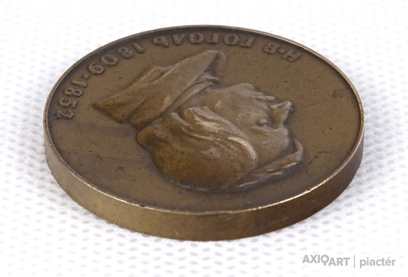 [0F946/X043] Hibátlan állapotú, kétoldalas bronz érem. Egyik oldalon felirat: ACHATIUS BARCSAI DE NAGYBARCSA Másik oldalon felirat: ÉREMGYŰJTŐK HAJDÚ-BIHAR MEGYEI SZERVEZETE 1925 - 1988 Jelzés: TS TÓTH S. Szélesség: 4.2 cm Súly: 0.03 kg Tóth Sándor (1933) szobrász szobrász Születési hely: Miskolc Születési dátum: 1933     Mesterei: Hincz Gyula, Pap Gyula, Barcsay Jenő, Kisfaludi Strobl Zsigmond. 1951-1959: Magyar Képzőművészeti Főiskola, mesterei: Hincz Gyula, Pap Gyula, Barcsay Jenő, Kisfaludi Strobl Zsigmond. 1959-ben a művészeti főiskolák Tanácsköztársasági Pályázatának nagydíját nyerte el. 1959-1960-ban a Művészeti Alap ösztöndíjával a hódmezővásárhelyi telepen alkotott. 1961-ben Szegeden telepedett le és 1974-ig a Művészeti Gimnázium tanára. Ezt követően Nyíregyházán kapott műtermet, ahol alkotótevékenysége mellett eredményes szakköröket vezetett. Egy évtizedig volt a szabolcsi művészek szervezetének titkára. Számos szegedi és nyíregyházi szobrászművészt indított el a pályán. 1977-ben kezdeményezte a Nyíregyháza-sóstói Nemzetközi Éremművészeti és Kisplasztikai Alkotótelep alapítását, az Alkotótelepi Tanácsnak indulástól fogva tagja. Főiskolás éveiben 1954-től nyaranta a hódmezővásárhelyi, 1969-ben a zsennyei, 1971-1975 között a villányi, 1973-ban a kecskeméti és oronskói (PL), 1974-1976 között, 1983-ban, 1985-ben, 1991-ben a nyíregyháza-sóstói, 1975-ben a burgaszi (BG), 1976-ban a potsdami (Német Demokratikus Köztársaság) és a zamosci (PL); 1977-ben a rzeszówi (PL), 1988-ban a palangai (Litvánia), a dzintari-i (Lettország) és a zsdennyevoni (UA), 1988-ban a körmöcbányai, 1992-ben a klaipédai (Litvánia) művésztelepen dolgozott. Eredményes munkásságát számos elismerés jelzi: 1962: Szegedi Nyári Tárlat III. díja; 1963: Szegedi Nyári Tárlat II. díja; 1964: Alföldi Tárlat díja, Gyula; 1968: Szegedi Nyári Tárlat díja; 1969: Szocialista Kultúráért; 1970: Békéscsabai Alföldi Tárlat Nívódíja; 1972: Szegedi Nyári Tárlat díja; Szabadka Város díja; 1973: Békéscsabai Alföldi Tárlat Munkácsy Emlékérme; 1974: Firenzei Giorgio Vasari Nemzetközi Éremverseny 3. díja; 1975: Felszabadulási Pályázat III. díja, Hódmezővásárhely; 1982: Munkácsy-díj; 1984: Szegedi Nyári Tárlat díja; 1986: a Magyar Éremgyűjtők Egyesülete az év legszebb egyesületi érme kitüntetése; 1989: Iserlohn Város díja; 1991: VI. Pál pápa ezüst Emlékérme; 1995: Ravenna Város Aranyérme; 1996: Hatvani Portré Biennálé díja; 1997: Hadtörténeti Múzem Kiállítási díja; Szeged Megyei Jogú Város Polgármesteri Hivatala díja. Az 1986-1987-es tanévben az Egri Tanárképző Főiskola tanszékvezető főiskolai tanára volt. Első kiállításain a szobrászati alkotások mellett festmények és rajzok is helyt kaptak. Rézlemez-domborításai és kisplasztikái témáit leginkább családja életéből vette. Realista stílusú - ritkán absztrakt felfogású (Madarak és halak sorozat, 1972) - alkotásai leggyakrabban bronzból készülnek, de jól bánik más anyagokkal is. Korábban gyakran készített terrakotta, mészkő-, márvány- és faszobrokat. Számos köztéri munkát készített, melyek között emléktáblák, emlékművek, büsztök, önálló térplasztikák sorakoznak. Legmonumentálisabb alkotásaként tarjuk számon a máriapócsi Bazilita templom kapuját. Vert és öntött érmeket is készít. Jelentős emlékérmeinek és orvosi vonatkozású érmeinek száma. Forrás: artportal.hu