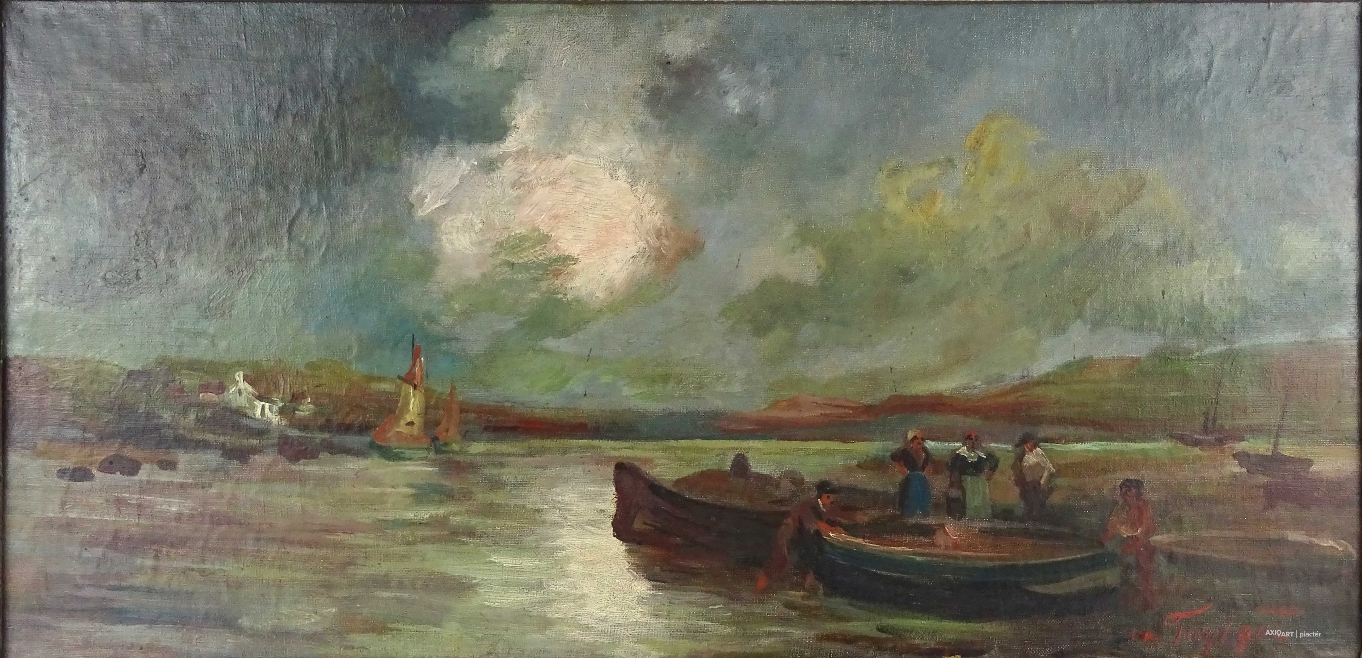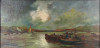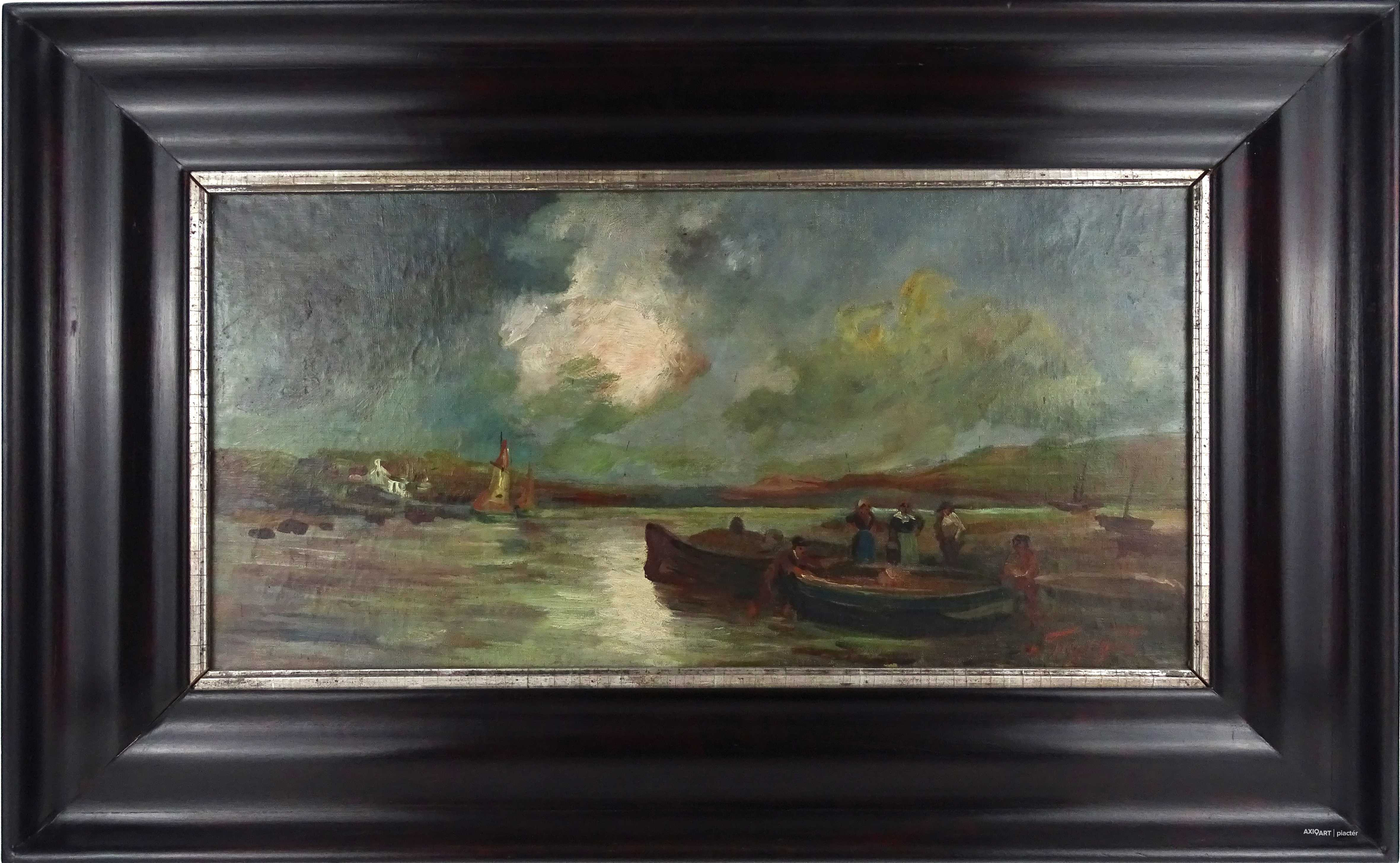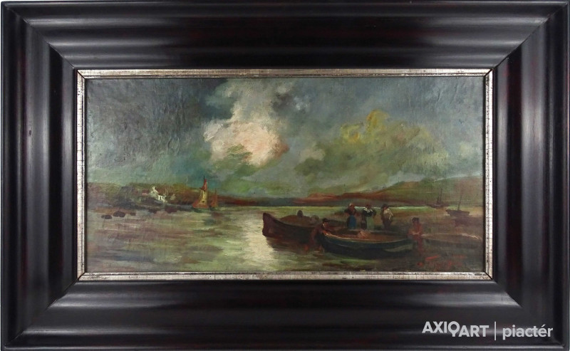 Nyugat-európai festő: Tengerparti bárkák 1904 63.5 x 31.5 cm