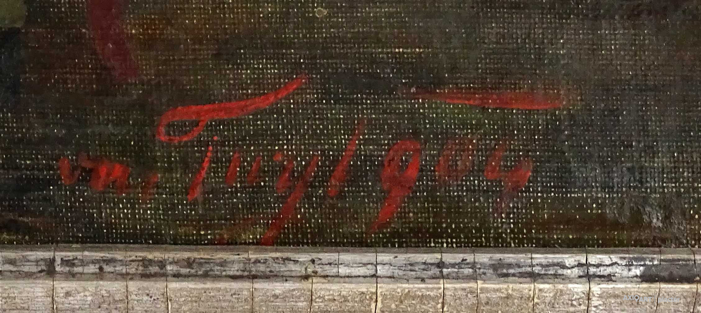 [1Y322/145] Régi, jelzett, olaj-vászon festmény hibátlan állapotú, széles fakeretben. Jelzés jobbra lent, lásd fotó. ..... 904 Magasság: 51 cm Szélesség: 83 cm Súly: 4.65 kg