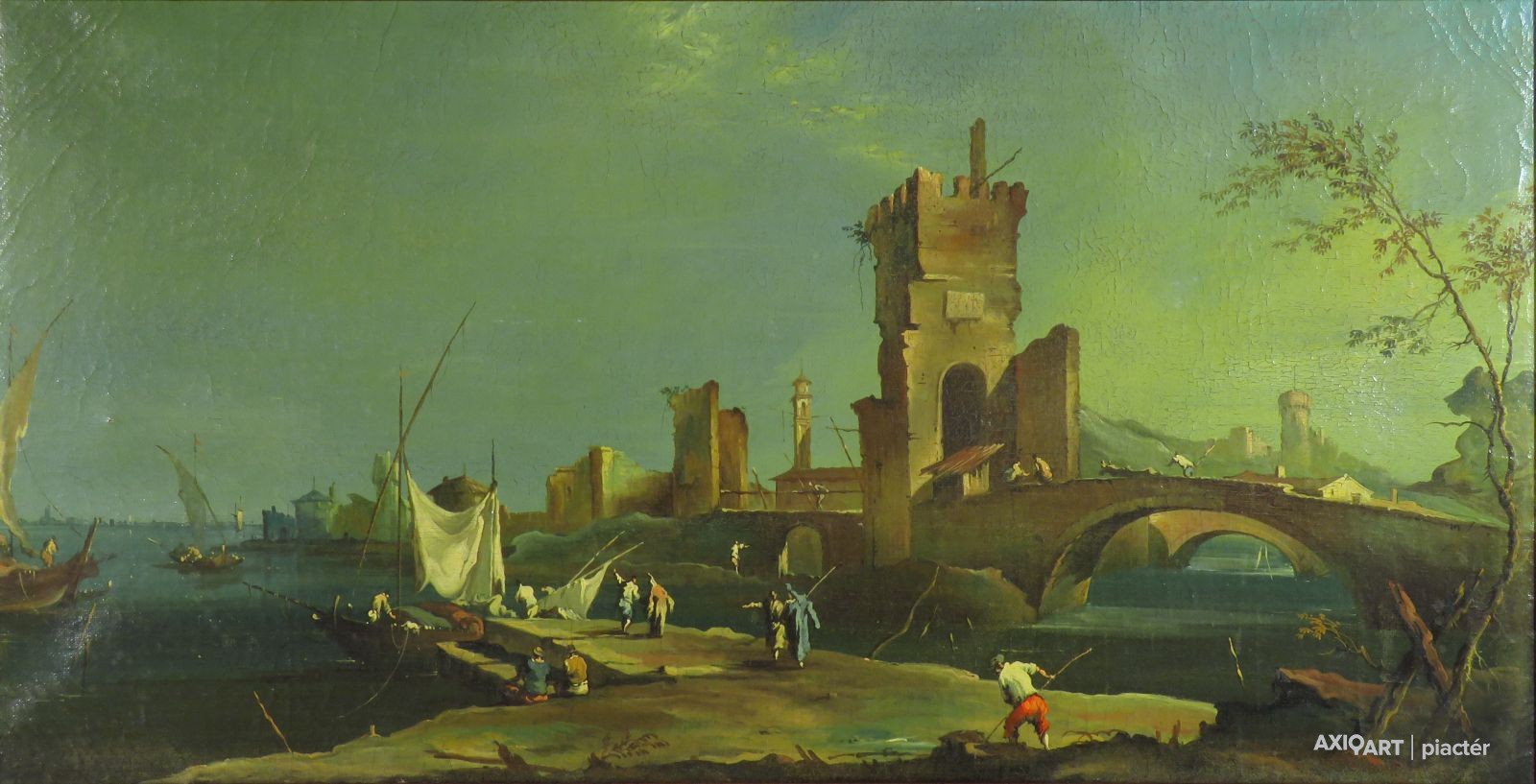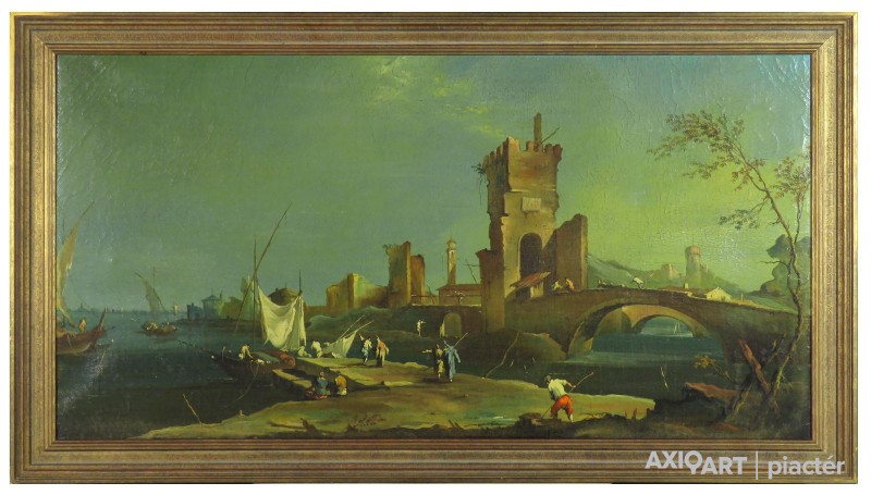 Olasz festő : XVIII. sz.-i mediterrán kikötő képe