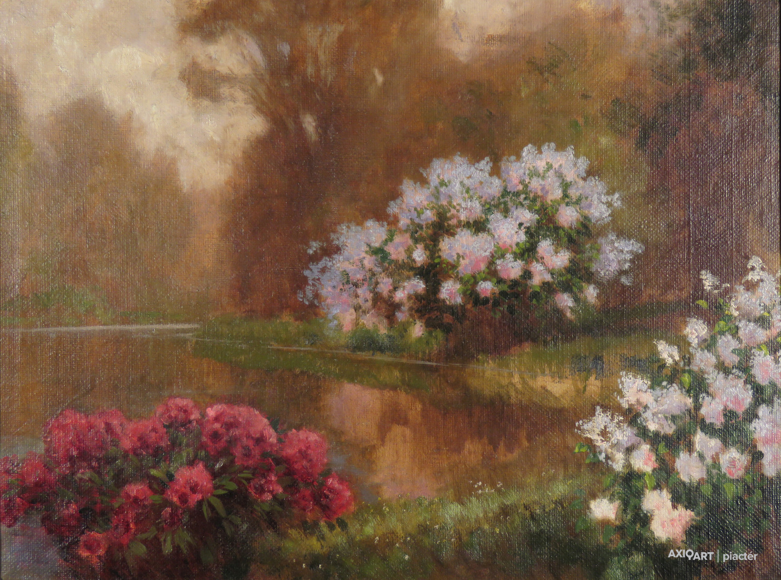 Olgyay Ferenc : Virágzó bokrok a tóparton