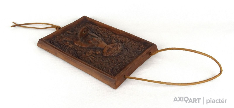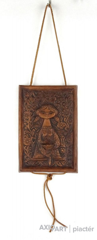 [1D342/X136] Hibátlan állapotú, nagy méretű, máz nélküli, falra akasztási lehetőséggel rendelkező fali kerámia. Rajta menyecske, népviseletben, kezében gyertyatartó. Magasság: 23.5 cm Szélesség: 16 cm Súly: 0.66 kg Orbán Katalin keramikus Budapest, 1950-08-20  Szerző: Laczkó Ibolya 1974: Magyar Iparművészeti Főiskola, szilikátipari tanszék, kerámia szak, mestere: Csekovszky Árpád, Rákosy Zoltán és Jánossy György volt. 1975: IV. Országos Kerámia Biennálé különdíj, Pécs; 1979: Nemzetközi Kerámiaverseny nagydíja, Faenza; 1980: VI. Országos Kerámia Biennálé különdíj, Pécs; 1980-ban Görögországban volt ösztöndíjas; 1982: Szocialista Országok Iparművészeti Quadriennáléja II. díj, Erfurt; VII. Országos Kerámia Biennálé III. díj, Pécs; 1983: Nemzetközi Kerámiakiállítás aranyérem, Faenza; 1985-ben ösztöndíjjal Belgiumban járt; 1991: Gádor István-díj; 1992: Ferenczy Noémi-díj; Kecskeméti Nemzetközi Kerámia Stúdió Nívódíja; XII. Országos Kerámia Biennálé III. díj, Pécs. 1977-ben és 1978-ban a Siklósi Kerámia Alkotótelep ösztöndíjasaként dolgozott, 1979 és 1991 között csaknem minden évben részt vett a Kecskeméti Nemzetközi Kerámia Stúdió munkájában. 1974-1977 között a Budapesti Porcelángyár tervezője volt, majd 1978-ban rajzot tanított a Frankel Leó Általános Iskolában. 1989-1991 között a Magyar Iparművészeti Főiskola Mesterképző Intézetében tanított, 1994-1996-ban a budapesti Képző- és Iparművészeti Szakközépiskola esti tagozatának kerámia szakos növendékeit oktatta. Az AIC és a Magyar Szilikátipari Tudományos Egyesület tagja. Munkái elsősorban építészeti kerámiák, reliefrajzok, festmények és szobrok magas hőfoktartományban égetve. Irodalom ANCSIN RÁCZ GY.: A Pataky Művelődési Központ kerámiaburkolatai, Mestermunka, 1975/13. ANCSIN RÁCZ GY.: Gondolatok agyagban, szavakban, Mestermunka, 1975/23. Mai magyar iparművészet. Kerámia, porcelán, üveg, Budapest, 1975 P. SZŰCS J.: Az utak kettéválnak, Művészet, 1978/3. P. SZŰCS J.: A kellemet-lenné vált kellemes (Kerámia ''''78), Művészet, 1978/ 11. VOJTA, J. M.: Bechyně for the ninth time, Glass Review, 1978/12. 37o Concorso Internazionale della Ceramica d''''Arte, Bollettino del Museo Internationale delle Ceramiche in Faenza, 1979/5. NEMESSURI Z.: Az ötödik triennálé, Magyarország, 1980/ 15. VADAS J.: Nem vonalasan, Élet és Irodalom, 1981. augusztus 22. A kecskeméti Kerámia Stúdió kiállítása, Művészet, 1981/ 10. PAPP J.: Rétegek és vonalak. ~ és Lőrincz Győző kerámiái, Művészet, 1982/9.  ~nal (kat., Budapest, 1993). Egyéni kiállítások Egyéni kiállítások 1980 • Zwinger [Lőrincz Győzővel], Kőszeg 1985 • Átrium Hyatt, Budapest [Fusz Györggyel, Lőrincz Győzővel] 1988 • Kispesti Munkásotthon, Budapest 1993 • Dorottya u. Galéria, Budapest Válogatott csoportos kiállítások Válogatott csoportos kiállítások IV., VI-IX., XII. Országos Kerámia Biennálé, Pécs 1977, 1978 • Kerámia Szimpozion Kiállítása, Siklós 1978 • Szimpozion kiállítás, Bechyně (CSZ) 1979 • Bechyněi jubileumi szimpozion kiállítás, Prága • Kecskeméti Kerámia Stúdió Kiállítása,Kecskemét 1979, 1980, 1981 • Nemzetközi Kerámiaművészeti Verseny, Faenza 1980 • Kecskeméti Kerámia Stúdió Kiállítása, Bécs • A kéz intelligenciája, Műcsarnok, Budapest • Nemzetközi Kerámia Biennálé, Sopot (PL) 1980, 1982 • Nemzetközi Kerámia Biennálé, Vallauris (FR) 1981 • Vonal, 10 magyar keramikus kiállítása, Óbuda Galéria, Budapest • Az európai kerámiaművészet 11 útja, Darmstadt-Dieburg (Német Szövetségi Köztársaság) 1982 • Magyar kerámia, Palazzo delle Espozisioni, Faenza • Szocialista Országok Iparművészeti Quadriennáléja, Erfurt • Kecskeméti Kerámia Stúdió Gyűjteményes Kiállítása, Siklós 1983 • A tervezés értékteremtés. Országos Iparművészeti kiállítás, Műcsarnok, Budapest • Magyarországi miniatűr kerámia és textil, München. Művek közgyűjteményekben Művek közgyűjteményekben Janus Pannonius Múzeum, Pécs Savaria Múzeum, Szombathely Forrás: artportal.hu