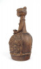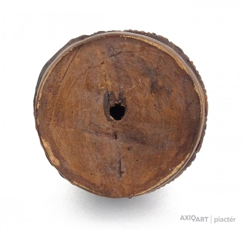 [0U704/BX-9] Hibátlan állapotú, jelzett, háromalakos kerámia figurális mécsestartó figura. Jelzés: KISS ROÓZ Magasság: 19 cm Szélesség: 6 cm Hosszúság: 16 cm Súly: 0.639 kg Kiss Roóz Ilona keramikus Születési hely: Szatmárnémeti [Satu Mare, RO] Születési dátum: 1920 Kiállítások az adatbázisban:  Kiss Roóz Ilona életműkiállítása Mesterei: Orbán Antal, Ohmann Béla. 1939-43: Iparművészeti Iskola, mesterei: Orbán Antal, Ohmann Béla. 1956, 1962: Munkácsy-díj; 1980: érdemes művész; 1984: SZOT-díj; 1994: MSZOSZ díja; 1995: Magyar Köztársasági Érdemrend Középkeresztje. A magyar kerámia Kovács Margit által teremtett naiv-népies irányzatának jeles művelője. Edényeit, kisplasztikáit, ill. murális alkotásait vidám színvilág és kedves humor jellemzi. 1948 és 1952 között tanított az Iparművészeti Főiskolán, azóta szabadfoglalkozású. Egyéni kiállítások 1966 • Csók Galéria, Budapest 1971 • Csók Galéria, Budapest 1980 • Budavári Ipaművészeti Bolt, Budapest 1984 • Petőfi Művelődési Ház, Tiszaluc 1989 • Kispréposti Palota, Eger (állandó kiállítás) 1992 • Bécs 1995 • Minigaléria, Miskolc 1996 • Petőfi Művelődési Ház, Tiszaluc 1997 • Derkovits Művelődési Központ, Tiszaújváros. Válogatott csoportos kiállítások 1947 • Karácsonyi kiállítás, Budapest • Fővárosi Művelődési Központ 1952 • Iparművészeti kiállítás, Ernst Múzeum, Budapest 1956 • Iparművészeti kiállítás, Iparművészeti Múzeum, Budapest 1958 • Magyar kerámia kiállítás, Vallauris 1959 • Magyar képzőművésznők kiállítása, Ernst Múzeum, Budapest 1959 • IV. Országos Iparművészeti Kiállítás, Műcsarnok, Budapest 1963 • Modern magyar kerámia, Royal Festival Hall, London 1965 • Országos Iparművészeti Kiállítás, Műcsarnok, Budapest 1968, 1970 • I., II. Országos Kerámia Biennálé, Pécs 1973 • Magyar kerámia, Ankara, Isztambul 1975 • Tárgy és alkotója, Iparművészeti Múzeum, Budapest 1982 • Magyar kézműves kerámia, Siklós 1995 • XX. századi magyar keramikusok, Iparművészeti Múzeum, Budapest • Az agyag mesterei, Vigadó Galéria, Budapest 1998 • Őszi Kerámia Kiállítás, Olaf Palme Ház, Budapest Művek közgyűjteményekben Köztéri művei kerámia dombormű (1958, Pereces, bölcsőde) kerámia napóra (1959, Székesfehérvár, Béke téri iskola) csempeburkolat (1961, Szeged, rendelőintézet) falikép (kerámia, 1962, Sopron, Gyermekszanatórium) kerámia falikép (1966, Békéscsaba, bölcsőde) Irodalom GÁL J.: ~ 77 éves. Beszélgetés a művésszel, Magyar Iparművészet, 1997/4. KESZTHELYI K.-LACZKÓ I.: A magyar kerámiaművészet I., Alkotók, adatok 1945-1998, Budapest, 1999. Vadas József + MAOE Forrás: artportal.hu