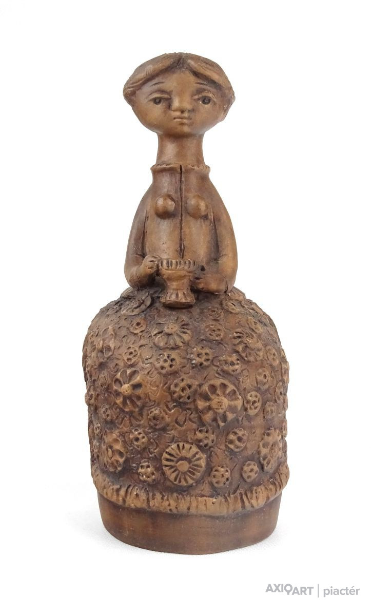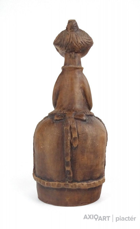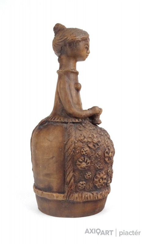 [1D188/BX-9] Hibátlan állapotú, nagy méretű, máz nélküli kerámia figura. Menyecske, népviseletben, kezében gyertyatartó. Magasság: 30 cm Szélesség: 12 cm Súly: 1.14 kg Orbán Katalin keramikus Budapest, 1950-08-20  Szerző: Laczkó Ibolya 1974: Magyar Iparművészeti Főiskola, szilikátipari tanszék, kerámia szak, mestere: Csekovszky Árpád, Rákosy Zoltán és Jánossy György volt. 1975: IV. Országos Kerámia Biennálé különdíj, Pécs; 1979: Nemzetközi Kerámiaverseny nagydíja, Faenza; 1980: VI. Országos Kerámia Biennálé különdíj, Pécs; 1980-ban Görögországban volt ösztöndíjas; 1982: Szocialista Országok Iparművészeti Quadriennáléja II. díj, Erfurt; VII. Országos Kerámia Biennálé III. díj, Pécs; 1983: Nemzetközi Kerámiakiállítás aranyérem, Faenza; 1985-ben ösztöndíjjal Belgiumban járt; 1991: Gádor István-díj; 1992: Ferenczy Noémi-díj; Kecskeméti Nemzetközi Kerámia Stúdió Nívódíja; XII. Országos Kerámia Biennálé III. díj, Pécs. 1977-ben és 1978-ban a Siklósi Kerámia Alkotótelep ösztöndíjasaként dolgozott, 1979 és 1991 között csaknem minden évben részt vett a Kecskeméti Nemzetközi Kerámia Stúdió munkájában. 1974-1977 között a Budapesti Porcelángyár tervezője volt, majd 1978-ban rajzot tanított a Frankel Leó Általános Iskolában. 1989-1991 között a Magyar Iparművészeti Főiskola Mesterképző Intézetében tanított, 1994-1996-ban a budapesti Képző- és Iparművészeti Szakközépiskola esti tagozatának kerámia szakos növendékeit oktatta. Az AIC és a Magyar Szilikátipari Tudományos Egyesület tagja. Munkái elsősorban építészeti kerámiák, reliefrajzok, festmények és szobrok magas hőfoktartományban égetve. Irodalom ANCSIN RÁCZ GY.: A Pataky Művelődési Központ kerámiaburkolatai, Mestermunka, 1975/13. ANCSIN RÁCZ GY.: Gondolatok agyagban, szavakban, Mestermunka, 1975/23. Mai magyar iparművészet. Kerámia, porcelán, üveg, Budapest, 1975 P. SZŰCS J.: Az utak kettéválnak, Művészet, 1978/3. P. SZŰCS J.: A kellemet-lenné vált kellemes (Kerámia ''''78), Művészet, 1978/ 11. VOJTA, J. M.: Bechyně for the ninth time, Glass Review, 1978/12. 37o Concorso Internazionale della Ceramica d''''Arte, Bollettino del Museo Internationale delle Ceramiche in Faenza, 1979/5. NEMESSURI Z.: Az ötödik triennálé, Magyarország, 1980/ 15. VADAS J.: Nem vonalasan, Élet és Irodalom, 1981. augusztus 22. A kecskeméti Kerámia Stúdió kiállítása, Művészet, 1981/ 10. PAPP J.: Rétegek és vonalak. ~ és Lőrincz Győző kerámiái, Művészet, 1982/9.  ~nal (kat., Budapest, 1993). Egyéni kiállítások Egyéni kiállítások 1980 • Zwinger [Lőrincz Győzővel], Kőszeg 1985 • Átrium Hyatt, Budapest [Fusz Györggyel, Lőrincz Győzővel] 1988 • Kispesti Munkásotthon, Budapest 1993 • Dorottya u. Galéria, Budapest Válogatott csoportos kiállítások Válogatott csoportos kiállítások IV., VI-IX., XII. Országos Kerámia Biennálé, Pécs 1977, 1978 • Kerámia Szimpozion Kiállítása, Siklós 1978 • Szimpozion kiállítás, Bechyně (CSZ) 1979 • Bechyněi jubileumi szimpozion kiállítás, Prága • Kecskeméti Kerámia Stúdió Kiállítása,Kecskemét 1979, 1980, 1981 • Nemzetközi Kerámiaművészeti Verseny, Faenza 1980 • Kecskeméti Kerámia Stúdió Kiállítása, Bécs • A kéz intelligenciája, Műcsarnok, Budapest • Nemzetközi Kerámia Biennálé, Sopot (PL) 1980, 1982 • Nemzetközi Kerámia Biennálé, Vallauris (FR) 1981 • Vonal, 10 magyar keramikus kiállítása, Óbuda Galéria, Budapest • Az európai kerámiaművészet 11 útja, Darmstadt-Dieburg (Német Szövetségi Köztársaság) 1982 • Magyar kerámia, Palazzo delle Espozisioni, Faenza • Szocialista Országok Iparművészeti Quadriennáléja, Erfurt • Kecskeméti Kerámia Stúdió Gyűjteményes Kiállítása, Siklós 1983 • A tervezés értékteremtés. Országos Iparművészeti kiállítás, Műcsarnok, Budapest • Magyarországi miniatűr kerámia és textil, München. Művek közgyűjteményekben Művek közgyűjteményekben Janus Pannonius Múzeum, Pécs Savaria Múzeum, Szombathely Forrás: artportal.hu