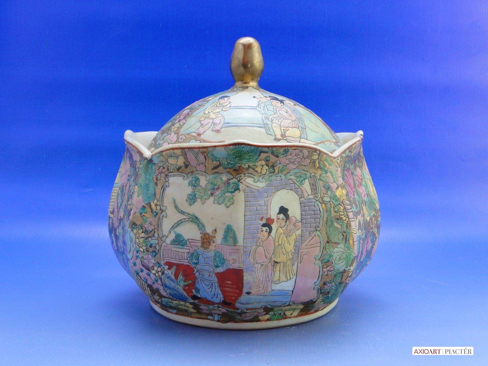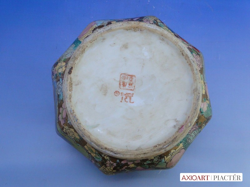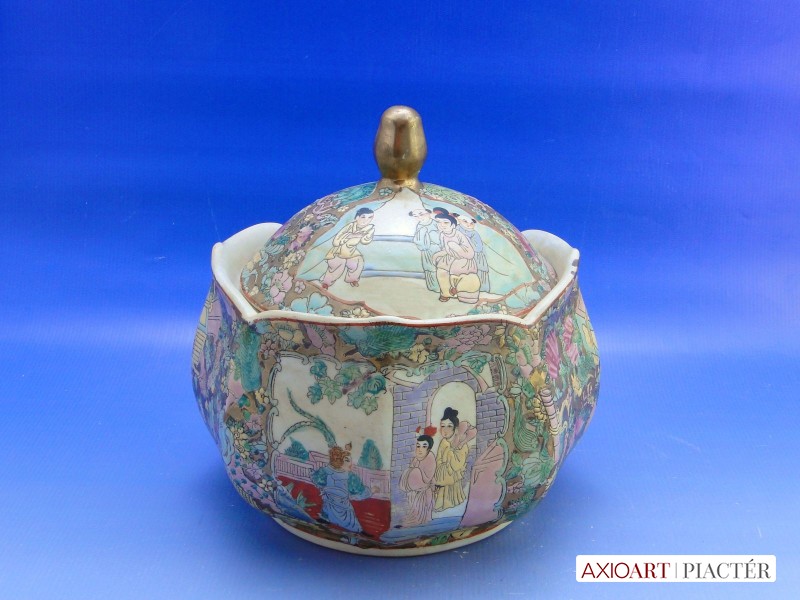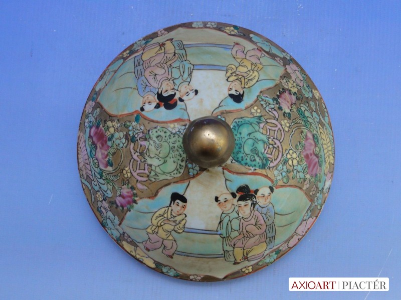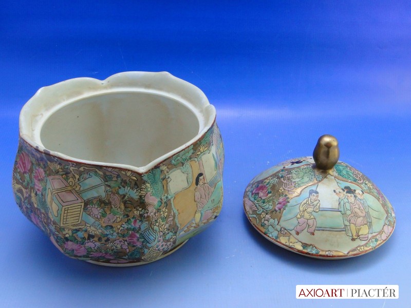 Hibátlan állapotú extra nagyméretű duplán jelzett óriási satsuma porcelán bonbonier.