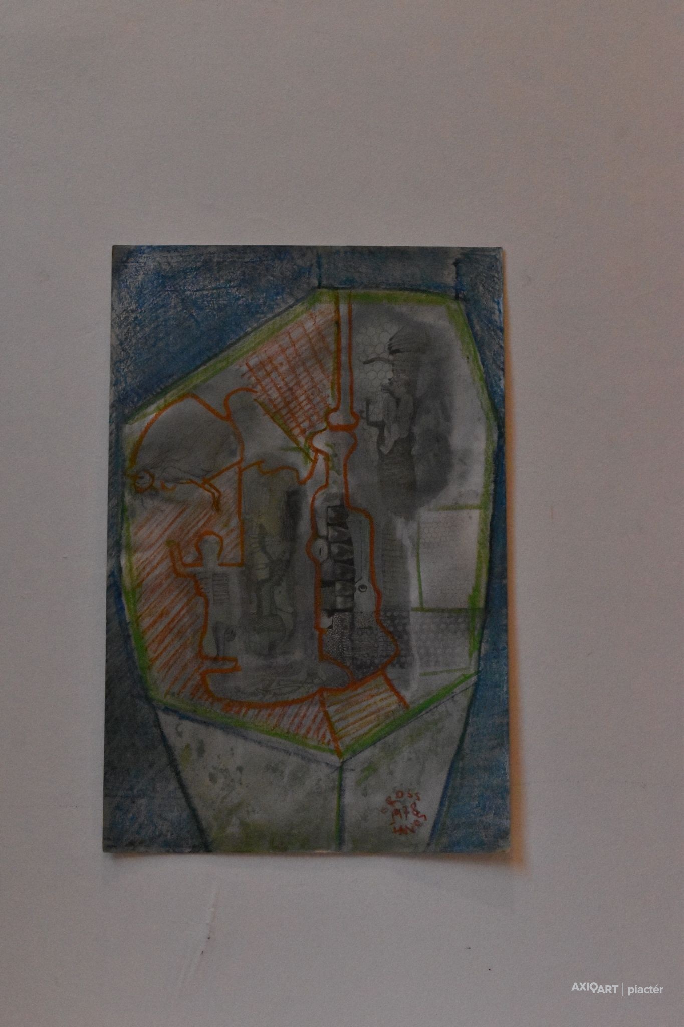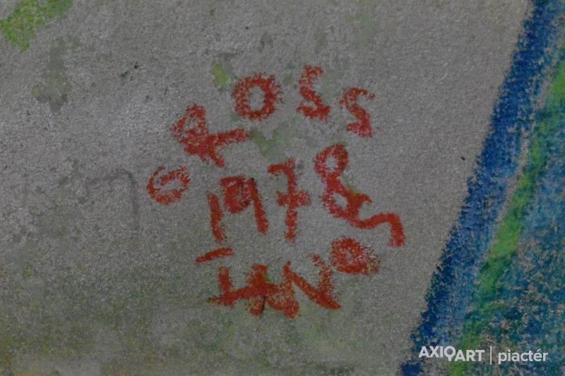 [FK1845/Z24/18] A kép mérete: 50 x 66 cm keret nélkül. Készült: pasztell, tempera, Papír A kép Kéri László (Budapest, 1949) alkotása. Jelezve Jobbra lent "Kéri László 76" A festmény jó állapotban van. Keret: Új A festmény hátoldalán a Képcsarnokvállalat raglapja látható. Magyar festők és grafikusok életrajzi lexikona I-II. Festő, grafikus. Tanulmányait a budapesti Képzőművészeti Főiskola festőszakán végezte 1976-ban. Sarkantyu Simon festőművész útmutatásai mellett képezte magát, de mesterének tartja Svády Lajost is. Évekig Szentesen dolgozott, majd Hódmezővásárhelyen telepedett le. 1977-ben tartotta első tárlatát. Ezt számos csoportos és egyéni bemutató követte. 1998-ban a Szegedi Táblaképfestészeti Biennálén szerepelt sikerrel. A Vásárhelyi Őszi Tárlatokon, valamint a békéscsabai Alföldi Tárlatokon nagyszámú díjat nyert el. Nem alföldi születésű, de tárgyi, valamint képi elemekkel kapcsolódik az alföldi hagyományokhoz. Rajzai, tusrajzai elementáris grafikusi tehetségről árulkodnak. Emberi viszonyokat, meghökkentő - alkalmasint - megdöbbentő emberi helyzeteket ábrázolnak rajzai. Festészetét illletően, pályakezdő korában erőteljesen érződött képein választott mesterének hatása, valamint a kései manierizimus és a korai barokk gomolygó, dinamikus rajzossága, erőteljes színvilága. A '80-as évek elején színei egyszerűbbek, tisztábbak lesznek. A '80-as, '90-es évtizedfordulón újból zaklatottan fest, diszharmonikus szín és tónuskontrasztokat használ. Az évtized vége felé újra higgadtabb megoldásokkat próbálkozik. Akvarellben és pasztellben is elismert művész, díszletterveket is készít. Számos köztéri munkája ismert (többnyire pannók). Alkotásai a Magyar Nemzeti Galéria és a hódmezővásárhelyi Tornyai J. Múzeum őrzi. (Pogány Gábor, MÉ, N.I.: Új Műv, 1992/5, Sz.P.: Új Műv. 1998/10) Magyar festők és grafikusok életrajzi lexikona I-II. Műgyűjtők és kereskedők kézikönyve Festő. Tanulmányait a bp.-i Képzőművészeti Főiskolán végezte, majd egy ideig Szentesen, később Hódmezővásárhelyen működött, ahol 1977-ben tartotta első tárlatát. Festészetének meghatározója az Alföld, de tárgyi és képi elemekkel kapcsolódik az alföldi hagyományokhoz. (MÉ) Magyar festők és grafikusok adattára Tanulmányait 1976-ban a Képzőművészeti Főiskolán végezte, a még ebben az évben Szentesre költözött. Jelenleg Hódmezővásárhelyen él, ahol 1977-ben tartotta első kiállítását. Festészetének meghatározója választott szűkebb hazája, az Alföld. Bár nem közvetlenül,inkább áttételesen, tárgyi és képi elemekkel kapcsolódik az alföldi hagyományokhoz. - Irod.: P. Sz. T.: Művész életrajzok. Bp. 1985. Művész életrajzok kortárs magyar képzőművészek 1976-ban végzett a Képzőművészeti Főiskolán, s még ez évben Szentesre költözött. Jelenleg Hódmezővásárhelyen él; első kiállítása e városban volt 1977-ben. - Festészetének meghatározója választott szűkebb pátriája, az Alföld; bár nem közvetlenül, inkább áttételesen, tárgyi és képi elemekkel kapcsolódik az alföldi festészeti hagyományokhoz. Kortárs magyar művészeti lexikon I-III. 1976: MKF, festő szak, mestere: Sarkanyú Simon, de Sváby Lajost is mesterének tartja. 1976-84-ig Szentesen él, azóta Hmvhelyen. A Vásárhelyi Őszi Tárlatokon és a bcsabai Alföldi Tárlatokon nagyszámú díjat nyert; 1980: PIM, József A.-pályázat HNF díja; 1978, 1984, 1986: Szegedi Nyári Tárlat díja; 1987: Tornyai Plakett; 1992: Akvarell B: Eger város Önkormányzat díja; 1998: Zene szemeimnek, MATÁV festészeti pályázat II. díja. Pályakezdő korában erőteljesen érződött képein választott mesterének hatása, valamint a kései manierizmus, és a korai barokk gomolygó, dinamikus rajzossága, erőteljes színvilága. A 80-as évek elején a színek egyszerűbbek, tisztábbak lesznek és előszeretettel alkalmaz a képen belső fényforrást. A 80-as, 90-es évtizedfordulón újból zaklatottaan fest, diszharmonikus szín és tónuskontrasztokat használ, szimbolikája áttételesebbé válik, majd kisméretű vásznakból sorozatokat készít, egy keretben álllítva ki azokat. Az évtized vége felé újra higgadtabb megoldásokat választ. Kéri László festészete mindvégig emberközpontú, figurális, az erőteljes emberi érzelmek közvetítője. Akvarellben és pasztellben is elismert művész, díszletterveket is készít. Ek: 1977: Medgyessy T., Hmvhely; 1979: Kisg. Szentes; 1981: Horváth E. G., Bgyarmat; 1983: Móra F. M. Képtára, Szeged; 1985: Vaszary T., Kaposvár; Gyöngyösi G., Gyöngyös; 1988: M. Historii, Lódz (PL); Magyar Int. Varsó; 1989: Art Service G., Párizs (kat.); 1990: Chateau d' Eguilly, Pouilly en Auxois (FR); 1991: Coll. Hung., Bécs; Műv. Közp., Nagykanizsa; 1993: Art Service G., Párizs; 1995: Wesselényi 70 G.; Tornyai J. M., Hmvhely; Bartók G., Szeged; 1996: G. de Meerse, Haarelmmermeer (NL); Hódtói Ált. Isk., Hmvhely; 1997: Tiszai G., Csongrád Vcsk: 1977-től Vásárhelyi Őszi Tárlatok, Szegedi Nyári Tárlatok, Alföldi Tárlatok, Bcsaba; 1981: Az út elején? Közben? Nyolc fiatal művész, Bartók 32 G.; 1982: I. Orsz. Rajzb., Salgótarján, Festőművészek a XI. kerületben, Bartók 32 G.; 1984: Vásárhelyi művészek, Zentai M. (Senta, YU), Vallomások az emberről, Juhász Gy. Műv. Közp., Szeged; 1987: Nközi Művésztelep, Iserlohn (NSZK); 1988: Görög Templom, Vác; Wilhelmshafen (D); 1994: Európa elrablása, Vigadó G.; 1997: Szimbiózis, Pest Center G.; 1998: Mednyánszky Társaság, S. Andrea G., Párma (OL); Belső rajz, Nádor G.; Kollázs, Vigadó G.; Zene szemeinknek, MATÁV pályázat, Pécs, Győr, Miskolc, Debrecen, Bp.; 1999: Ne vakolj a freskóra, Móra F. M. Képtára, Szeged; Mednyánszky Társaság, Koller G.; S