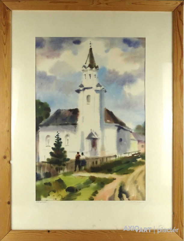 Papír akvarell, üveglap mögött, natúr léckeretben. Akasztási lehetőséggel rendelkezik. Hátoldalán a Képcsarnok Vállalat papírcímkéje látható.