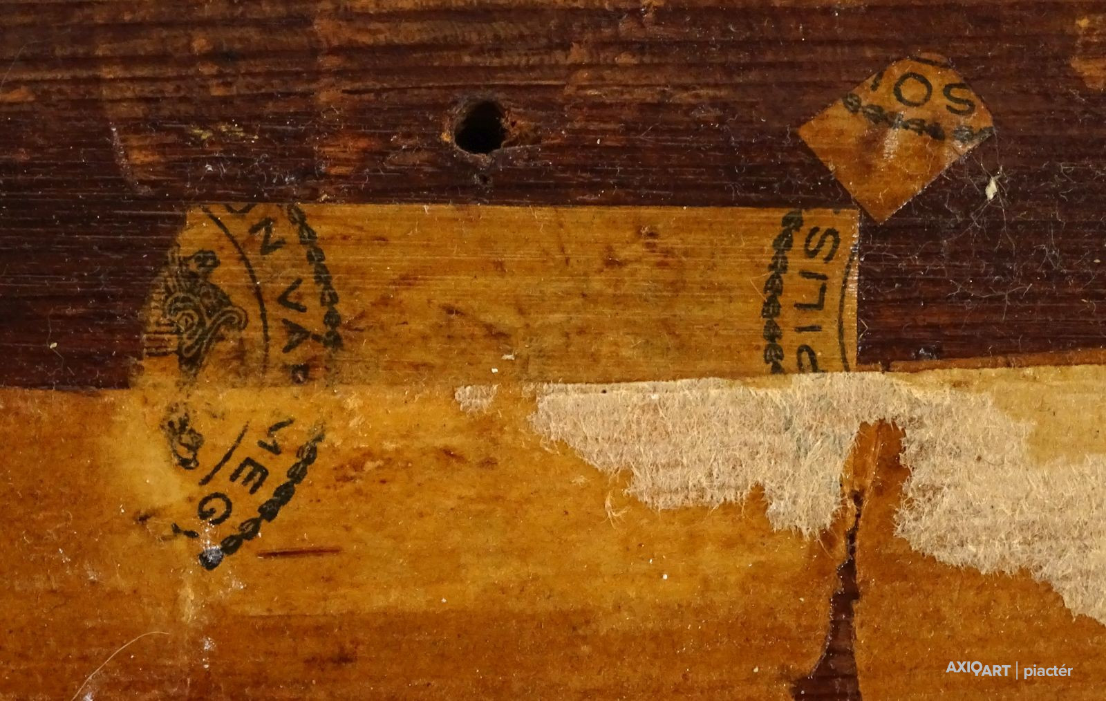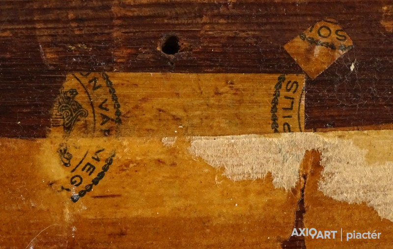 [1Y029/Z018] Olaj farost festmény, üveglap mögött, hibátlan képcsarnokos keretben. Hátoldalán Képcsarnok Vállalat papír címkéje: A művész neve: SCHÉNER MIHÁLY A kép címe: TÁJ Magasság: 66.5 cm Szélesség: 86 cm Súly: 6.54 kg Schéner Mihály festő, grafikus, szobrász, keramikus, bábtervező Medgyesegyháza, 1923-01-9 Elhalálozott: Budapest, 2009. május 11. Honlap: http://www.kormendigaleria.hu/kiadvany.html 1942-1947: Magyar Képzőművészeti Főiskola, tanára: Rudnay Gyula. 1978: Munkácsy-díj; 1984: érdemes művész; 1989: kiváló művész; 1995: Kossuth-díj. 1992-től a Magyar Művészeti Akadémia, 1993-tól a Széchenyi Irodalmi és Művészeti Akadémia tagja. 1956-ig tanított. 1982: Nagyatádi Faszobrász Alkotótelep, 1985: Nemzetközi Acélszobrász Alkotótelep, Dunaújváros. A stílusában felismerhető, mégis sokféle műtárgyat létrehozó ~ gazdag, állandóan alakuló életműve a folyton változó világban helyét kereső, az alkotói szabadságot megvalósító XX. századi képzőművész példázata lehetne. Magát expresszív-szürrealista alkotónak nevezi. Egyaránt dolgozik festékkel, textillel, fával, fémmel. Rajzol, szerkeszt, farag, épít, gyúr, varr és ragaszt, felhasználja a mézesbábok öntőformáit. Festő, rajzoló, textilszobor- és bábkészítő, fazekas, asztalos, esztergályos. Háromlépcsős folyamatban gondolkozik: rajzban tervez, majd fest, szobrot készít, “formába önt”, mindig a végső plasztikai megoldást keresi. Ami állandó és mégis játékosan változékony megjelenésű Schéner művészetében, az a gyermekkori emlékek által meghatározott népi mesterségek iránti tiszteletet kifejező motívumkincs, a tárgyi folklór formakészlete, amely már-már kézjegyként ismétlődik munkáin. Mitologikussá nőtt képzelete új lényeket teremt, pl: a Pigulát, amely disznótestű, emberfejű teremtmény. Schéner festményein a szürrealista motívumokat konstruktív szerkezetbe rendezi, a geometriát és az organikus természeti motívumokat egyaránt beépíti műveibe. A népi, népművészeti formakincsből merített lovas huszárok, betyárok, szegénylegények cifra szűr mentéje, piros csákója, fekete csizmája, az önálló életet élő zsinórdíszek és mézeskalács bábok, a kiskocsik a gyermekkori vásárok, búcsúk színes forgatagába vezet. A primér motívumokat aztán felváltják a vastagon felhordott felületbe karcolt jelek, vonalhálózatok, amelyek a játszó gyermek homokba rajzolt ábráit, a pásztorember fába vésett üzeneteit, az ősember barlang falába rótt mágikus jeleneteit idézik meg. A művész pillanatnyi érdeklődésének megfelelően a színek búvópatakként tűnnek el és jelennek meg ismét. A 60-as években leginkább a formákkal való játék érdekelte, a festmények felülete egyre gazdagodott: a táblaképek felületén applikációk jelentek meg, vagy lemállasztott rétegek hagyták maguk után hiányukat, motívumok nélküli ősformák, archetipikus képzetek bukkantak fel művészetében. A véletlenszerűnek látszó rétegekkel való játék azonban tudatos komponálás eredménye, amely később nyilvánvaló ritmusnak és formai szerkesztettségnek adja át a helyét, mint a Törvénytáblák c. sorozaton. A különböző művészi kifejezési formák egymásra termékenyítő hatással vannak, át- meg áthatják egymást. Textilszobrai, amelyekkel új műfajt teremtett, ugyanazzal az automatikus, expresszív-szürrealista módszerrel készülnek, mint festményei. A hagyományosan a népművészetben alkalmazott anyag, a filc lehetőséget ad a népi formakincs felelevenítésére, amely azonban a művész különös szürrealista átiratában jelenik meg. A szívekkel kivarrt, zsinórdíszes Posztókotlós c. művén mézesbábok lógnak, hátán huszárok lovagolnak. Egész sor textilből készült kéz-plasztikát alkot, amelyeket az ujjakra rávarrt díszekkel öltöztet, személyesít meg. A színes-különös világból aztán ~ újra puritán képi és formai rendbe juttatja el a nézőt, majd nemsokára tépett, gyűrt, vágott, csorgatott, repedezni hagyott szenvedélyesen vonagló képi felületeket hagy hátra. Schéner készített apró gyermekjátékokat, térstruktúra-tereket, mászókákat is. A magyar népi formák mellett szürreális játékaiban gyakran alkalmaz görög mitológiai alakokat, “elkentaurosodott” lovakat, Gorgó-fejeket, sellőket, hárpiákat, Pán-ábrázolásokat. Schéner nemcsak saját művészetéről publikál, hanem művésztársairól is számos írása jelenik meg, elsősorban az Új Auróra c. folyóiratban, amelynek egy ideig főmunkatársa volt. Irodalom kiállítása, Magyar Építőművészet, 1962/4. Húsz év után, Művészet, 1965/4. BOZÓKY M.: ~, Tiszatáj, 1968/5. PERNECZKY G.: Nincs uborkaszezon, Élet és Irodalom, 1969. augusztus 8. BARÁNSZKY-JÓB L.: ~, Művészet, 1969/9. LÁSZLÓ GY.: ~ kaposvári kiállítása, Jelenkor, 1969/4. MAJOR M.: Pásztorok, betyárok, huszárok - kezek, Tükör, 1970. szeptember 15. FRANK J.: Bemutatjuk ~t, Élet és Irodalom, 1972. május 6. ról kiállítása ürügyén, Képzőművészeti Almanach, Budapest, 1972 Sötétkék kokasok, Élet és Irodalom, 1973. szeptember 9. MAJOR M.: ~ játékai, Élet és Irodalom, 1974. július 27. BARTA J.: Egy különös művész, Alföld, 1974/6. VADAS J.: Szárnykészítők, Élet és Irodalom, 1975. október 4. JUHÁSZ F.: A halál ellen játszani, Élet és Irodalom, 1975. május 17. PAP G.: Kincsek és műkincsek, Művészet, 1975/6. P. SZŰCS J.: Az utak kettéválnak, Művészet, 1978/3. Békési művészet, Művészet, 1978/7. SZAMOSI F.: ~ [kismonográfia], Budapest, 1978 VADAS J.: Játék a játékkal, Élet és Irodalom, 1979. augusztus 18. NÉMETH L.: ~ műveiről, Művészet, 1979/4. MIKLÓS P.: Mit akar ez a múzeum?, Művésze