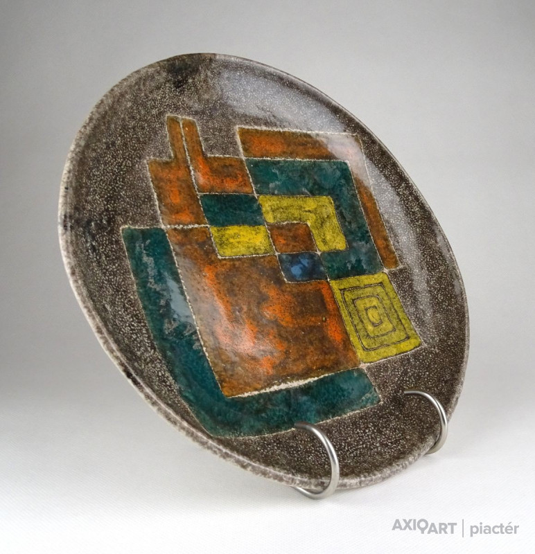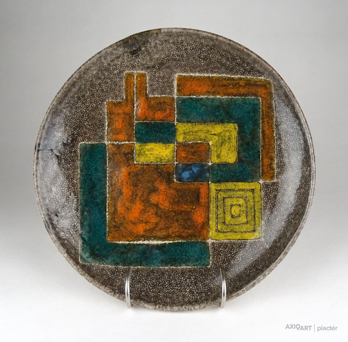 Pál Ilona retro geometrikus absztrakt kerámia falitál 25 cm