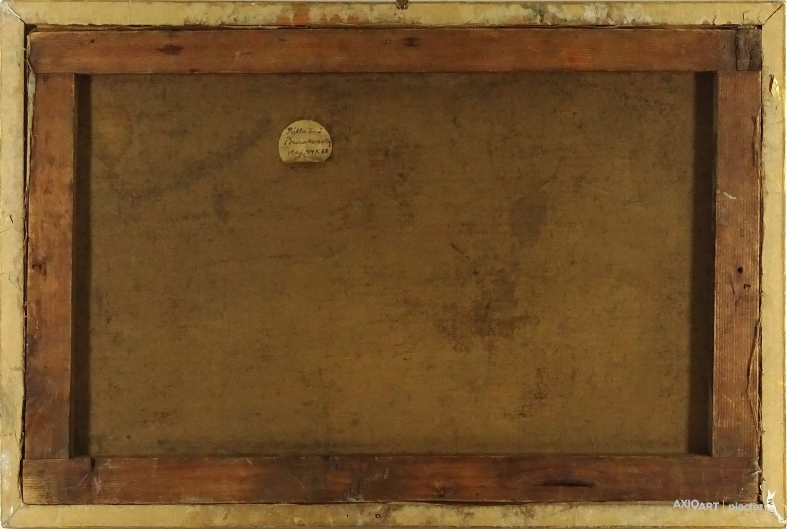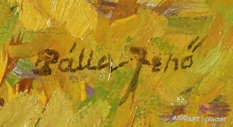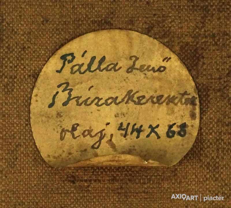 [FK0037/Z018] A kép mérete: 50 x 70 cm keret nélkül. Készült: Olaj, Vászon A kép Paizs László (Szentpéterúr, 1935) alkotása. Jelezve Jobbra lent "P. L." A festmény jó állapotban van. Keret: Ép A festmény hátoldalán a Képcsarnokvállalat címkéje található. Magyar festők és grafikusok életrajzi lexikona I-II. Festő. Tanulmányait a budapesti Iparművészeti Főiskolán végezte 1959-ben. Z. Gács György, Rákosy Zoltán és Szentiványi Lajos növendéke volt. A '60-as évek első felében hagyományosabb felfogású olajképeket festett, mozaikokat, freskókat, utóbb a pop-art körébe tartozó, a francia Arman munkáival rokon műveket alkotott. 1961 óta kiállító művész. Egyéni (Fényes Adolf Terem, Csók Galéria, Műcsarnok, Magyar Nemzeti Galéria, Halászbástya, Bástya Galéria, Vigadó Galéria, Budapest Galéria, Győr, Szombathely, Szeged, Zalaegerszeg, Duisburg, Aix-en-Provence, stb). és vegyes (Ernst Múzeum, Műcsarnok, Óbuda Galéria, Magyar Nemzeti Galéria, Csók Galéria, Vigadó Galéria, Székesfehérvár, Kaposvár, Pécs, Hódmezővásárhely, Firenze, Milano, Padova, Nápoly, Velence, Düsseldorf, Aachen, Genf, stb) tárlatokon vett részt. 1980-ban Munkácsy-díjjal jutalmazták, 1988-ban Érdemes Művész kitüntető elismerésben részesült. Munkáit őrzi a Magyar Nemzeti Galéria, a Fővárosi Képtár, a szombathelyi képtár, a pécsi Janus P. Múzeum, a székesfehérvári István Király Múzeum és a dunaszerdahelyi Kortárs Magyar Galéria. (H.B.: Műv, 1972/4, K.Gy.: Műv. 1977/2, K.G.: Műv. 1978/10, M.L.: Műv, 1983/5, R.G.: Műv, 1987/9, Sz.Gy.: Új Műv. 1995/4, MK) Magyar festők és grafikusok életrajzi lexikona I-II. Műgyűjtők és kereskedők kézikönyve Festő. Tanulmányait a bp.-i Iparművészeti Főiskolán végezte. Mozaikokat ferskókat, utóbb a pop-art körébe tartozó, a francia Arman műveivel rokon műveket alkotott. Mozaikok: a Szegedi Megyei Tanács, a Pécsi Óvoda, a Gödöllői Agrártudományi Egyetem. Freskók: Budapest - Csatárka úti Gyermekotthon. 1971-ben a Fényes Adolf Teremben volt kiállítása, 1983-ban pedig a szegedi Móra Ferenc Múzeumban nagyszabású tárlatokon mutatta be munkáit. 1988-ban érdemes művész kitüntető elismerésben részesült. (MK) Magyar festők és grafikusok adattára Az Iparművészeti Főiskolán végzett 1959-ben. Mozaikokat (Szeged, Megyei Tanács; Pécs, Óvoda; Gödöllő, Agrártudományi Egyetem), freskókat (Budapest, Csatárka úti Gyermekotthon), újabban a pop art körébe tartozó, a francia Arman műveivel rokon műveket alkotott. 1971-ben a Fényes Adolf Teremben nyílt kiállítása. 1983 februárjában a szegedi Móra Ferenc Múzeumban megrendezett nagyszabású tárlaton mutatta be alkotásait. 1988-ban érdemes művész kitüntető elismerésben részesült. - MK Művészeti lexikon I-IV. (Szentpéterur, 1935. dec. 26.- ): festő. Az Iparművészeti Főiskolán 1959-ben végzett Rákosy Zoltán, Z. Gách György és Szentiványi Lajos növendékeként. Épületdiszítő mozaikokat, (Szeged, Megyei Tanács, 1961; Pécs, Óvoda, 1964), műanyagfreskókat (Bp., Csatárka úti Gyermekotthon, 1964) és gobelinterveket készít. Kortárs magyar művészeti lexikon I-III. Festő, szobrász, grafikus. 1959: MIF, mesterei: Z. Gács György, Rákosy Zoltán, Szentiványi Lajos. 1980: Munkácsy-díj; 1988: érdemes művész. Főiskolás éveinek második felében, majd azt követően számos murális munka kivitelezésében vett részt, Fónyi Géza, Konecsni György, Z. Gács György, Rákosi Zoltán és Domanovszky Endre mellett dolgozva. A 60-as évek első felének hagyományosabb fölfogású olajképeket festett. 1964-ben a Velencei B.-n megismerkedett az amerikai pavilonban a pop art Európában akkor még újnak számító törekvésével, és részben ez inspirálta, hogy 1967-ben textil, fém, bőr anyagú "varrottas" képeket küldjön az FKS éves tárlatára; a megnyitó előtt többek között az ő munkáit is eltávolították a falról. A 70-es években pop art-os objekteket (A trónörököspár politikai gyilkosság áldozata lett, 1970, plexiüveg, újság, szarvasbogarak), majd konstruktív, átlátszó plexiüveg plasztikákat készített belső fénytörő határfelületekkel. A 80-as években készültek az anyagában színezett, konstruktív, nagyméretű poliészter szobrai, majd színes poliészter táblaképeket alkotott, mesterségesen roncsolt felületekkel, mintha régészeti leletek vagy atomtámadás utáni festmény-szurrogátumok lennének. Ekkor kezdett organikus plaszikájú bronzszobrokat is mintázni. A 90-es években, a táblaképek és szobrok mellett nagyméretű, egyedi grafikákat készített, formavilágában némileg a roncsolt táblaképekből kiindulva, de szinte kizárólag az emberi alakból elvonatkoztatott torzókat megjelenítve. Ek: 1966: Művészklub, Győr; 1971: Fényes A. T.; 1972: Bercsényi 28-30 G.; 1973: BME B-épület; 1976: Csók G.; 1977: G. Hildebrandt, Duisburg (NSZK); 1979: Bástya G., Halászbástya; Helyőrségi Műv. H., Nagyatád; József A. Műv. Közp., Szeged; Göcsej M., Zalaegerszeg; 1982: Bezzegh G., Küsnacht (CH); 1983: Móra F. M., Szeged; 1987: Műcsarnok (kat.); MNG; 1988: Pandora G., Badacsonytomaj; 1989: Parktheatter, Iserlohn (NSZK); Qualitas G.; Hevesi S. Színház, Zalaegerszeg; 1990: Vasarely Fondation (Ferdinánd Judittal, Fóth Ernővel), Aix-en-Provence (FR); 1994: Vigadó G.; 1997: Pest Center G.; 1998: Budapest G. (kat.); 1999: Pest Center G. (kat); G. Arcis, Sárvár; MMA, Bp.; 2001: SZK, Szhely; Ernst M. (kat.) Vcsk: 1961, 1964, 1966: FKS, Ernst M.; 1962: 9. Magyar Képzőműv. kiállítás, Műcsarnok; 1967: Mai magyar festészet, Új-Delhi; 1969: Vas megyei művészek, Savaria M., Szhely; V. Orsz. Grafikai B., Miskolc; 1971: Új művek, Műcsarnok; 1972: Fiatal művészek Budapestről. Likovni Salon, Újvidék (YU); 1972, 1973: Balatonboglár