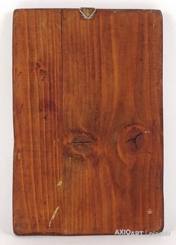 Fa táblára festett ikon. Hátoldalán falra akasztási lehetőség.