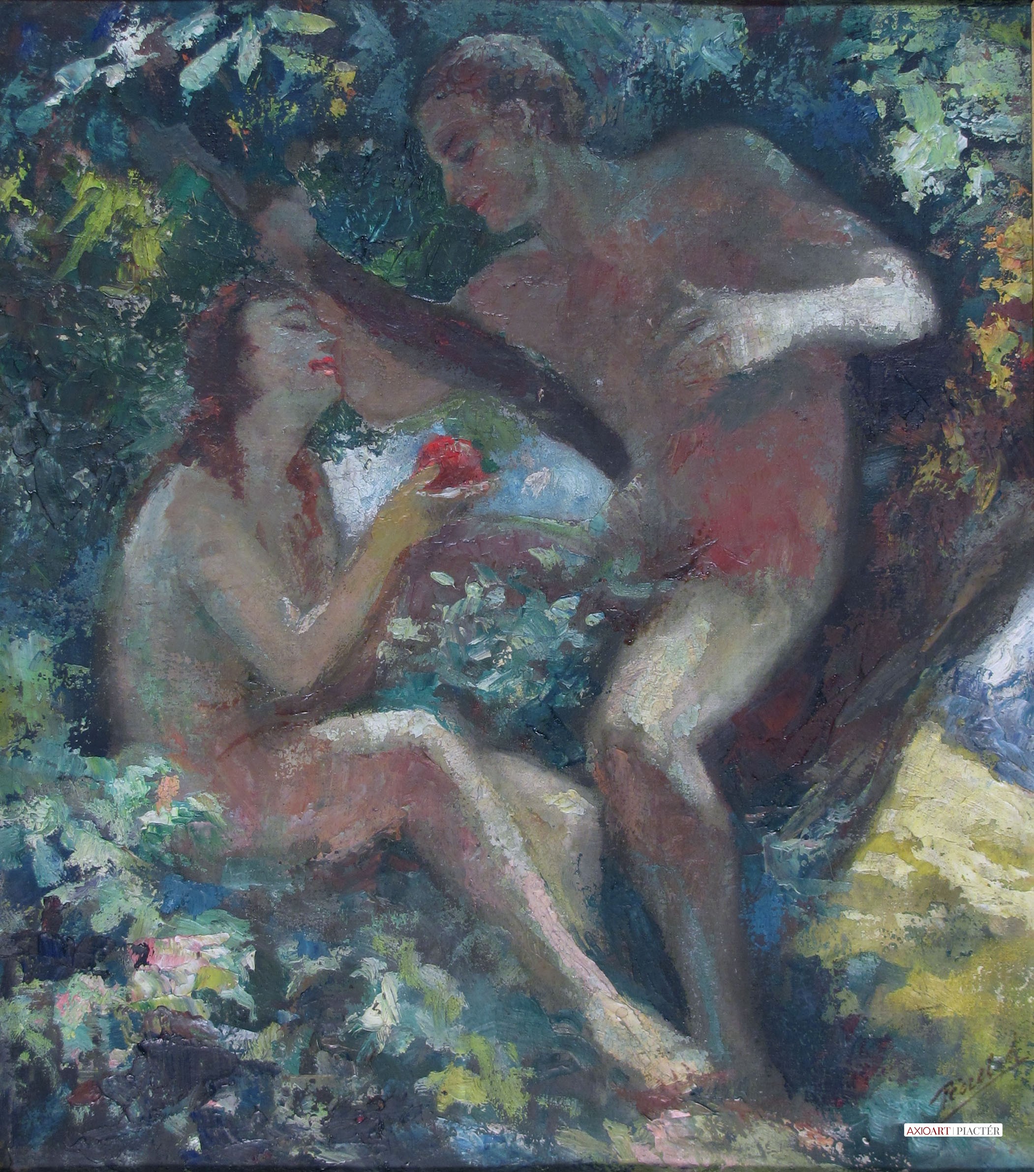 [FK2668/Bp301/4] A kép mérete: 50,5 x 80,5 cm keret nélkül. Készült: Olaj, Vászon A kép Moldován István (Kolozsvár, 1911) alkotása. Jelezve Jobbra lent "Moldován István" A festmény jó állapotban van. Keret: Ép A festmény hátoldalán a Képcsarnokvállalat raglapja láltható. Magyar festők és grafikusok életrajzi lexikona I-II. Festő. Tanulmányait Kolozsvárott, a Szépművészeti Főiskolán kezdte 1930-ban. A következő esztendőben a nagybányai Szépművészeti Iskolában Thorma János és Krizsán János korrektúráján képezte magát. 1931-ben a budapesti Képzőművészeti Főiskola hallgatója lett. Réti István, később Szőnyi István volt a mestere. Már mint főiskolás sok díjat és kitüntetést nyert. 1948-ban megkapta a római ösztöndíjat, de lemondva róla, Erdélybe ment. 1948-1950 között Erdélyben élt, és népművészetben gazdag vidékein festett. 1943-ban Kolozsvárott, 1946-ban Gyöngyösön, 1955-ben, 1959-ben és 1962-ben a Kulturális Kapcsolatok Intézetében, illetve a Csók Galériában rendezett egyéni bemutatókat. Ezen kívül több Európai országban, az USA-ban, Kanadában és Indiában is bemutatta munkáit. Eleinte sajátos atmoszférájú, lírai tájképeket, eleven színvilágú képmásokat festett, később mondernebb, erőteljesebben szerkesztett művekkel jelentkezett. A Pécsi Tanárképző Főiskola számára mozaikot készített. Erdély szerelmese volt. A székely népművészet gazdag formavilágának hatása döntő jelentőségűvé vált sokoldalú művészetében. Műv. díjak: a Szinyei Társaság elismerő oklevele, a Főváros festészeti-díja, "Kolozsvár a képzőművészetben" II. díj, állami ösztöndíj, római ösztöndíj, a Képzőművészek Szövetsége Észak-Magyarországi festészeti díja, SZOT festészeti díj. Több murális művet (mozaik) alkotott. A Magyar Nemzeti Galéria több alkotását őrzi. (M. L.: Műv. 1967/6, RI-NM) Magyar festők és grafikusok életrajzi lexikona I-II. Műgyűjtők és kereskedők kézikönyve Festő. Tanulmányait a kolozsvári Szépművészeti Főiskolán kezdte 1930-ban. A nagybányai szabadiskolában is megfordult. Itt Thorma János és Krizsán János korrektúráján képezte magát. 1931-ben Budapesten a Képzőművészeti Főiskola hallgatója lett. Réti István, később Szőnyi István volt a mestere. Már mint főiskolás sok díjat nyert. 1948-ban megkapta a római ösztöndíjat, de lemondva róla, Erdélybe ment. 1948-1950 k. Erdélyben élt, és népművészetben gazdag vidékein festett. 1943-ban Kolozsváron, 1946-ban Gyöngyösön, 1955-ben, 1959-ben és 1962-ben a Kulturális Kapcsolatok Intézetében, illetve a Csók Galériában rendezett önálló kiállítást. Ezen kívül több Európai országban, az USA-ban, Kanadában és Indiában is bemutatta műveit. Eleinte sajátos atmoszférájú, lírai tájképeket, eleven színvilágú képmásokat festett, később mondernebb, erőteljesebben szerkesztett művekkel jelentkezett. A Pécsi Tanárképző Főiskola számára mozaikot készített. Erdély szerelmese volt. A székely népművészet gazdag formavilágának hatása döntő jelentőségűvé vált sokoldalú művészetében. 1942-ben megkapta a Szinyei Társaság elismerését, és a Főváros festészeti-díjat,1943-ban elnyerte a "Kolozsvár a képzőművészetben" c. díjat. 1947-ben állami ösztöndíjat,1948-ban a római ösztöndíjat, 1972-ben a Képzőművészek Szövetsége Észak-Magyarországi festészeti díját kapta meg. A MNG több művét őrzi. (M. L.: Műv.-1976/6) Magyar festők és grafikusok adattára Tanulmányait Kolozsvárott a Képzőművészeti Főiskolán, majd Nagybányán Thorma János és Krizsán János irányítása mellett kezdte, 1931-től Budapesten megszakításokkal a Képzőművészeti Főiskolán Réti István és Szőnyi István növendékeként fejezte be. 1949-ben és 1950-ben ösztöndíjjal dolgozott Erdélyben, majd hosszú tanulmányutakra indult Nyugat-Európába, az Egyesült Államokba, s a Szovjetunióba. Először Kolozsvárott lépett a nyilvánosság elé 1943-ban, majd 1946-ban Egerben és Gyöngyösön, 1947-ben Miskolcon, 1948-ban Hatvanban, 1955, 1961 és 1981-ben a Csók Galériában, 1959-ben a KKI-ben, 1960-ban Nagykanizsán, 1963-ban Kiskunfélegyházán, 1966-ban Debrecenben, 1969 és 1975-ben Békéscsabán, 1971-ben a Mednyánszky Teremben, 1973-ban Gyöngyösön és Debrecenben, 1977-ben Egerben, 1979-ben Veszprémben, 1983-ban Miskolcon, 1984-ben Csepelen, 1986-ban a Vigadó Galériában rendezett önálló kiállítást. Külföldi kiállításai: Moszkva, Varsó, India, Szófia, Párizs, Bukarest, Belgrád, New York, Montreál és Toronto. Eddig közel kétezer színes táblaképet festett, de szívesen foglalkozik mozaikkészítéssel is. 1964-ben a Pécsi Pedagógiai Főiskola, 1968-ban a Salgótarjáni Kórház, 1969-ben a názáreti templom és 1970-ben a Videoton Vállalat díszterme részére mozaikot készített. - Erdély szerelmese. A székely népművészet gazdag formavilágának hatása döntő jelentőségűvé vált festészetében. Olyan formanyelvet alakított ki magának, amely színvilágában és summázó formaalakításában sajátos erdélyi zamat érződik, ugyanakkor korszerűen modern is konstruktivista stílusa. Munkásságát 1942-ben a Szinyei Társaság elismerésével és a Fővárosi festészeti-díjjal, 1943-ben Római-ösztöndíjjal, 1947-ben Állam ösztöndíjjal (Románai), 1963-ben a SZOT festészeti-díjával, 1972-ben a Képzőművészek Szövetsége Észak-Magyarországi festészeti-díjával tüntették ki. - Irod.: Bíró Béla: Kolozsváry Moldován István. Erdélyi Helikon, 1943.; Felvinczi Takács Zoltán: Kolozsváry Moldován István. Kolozsvár, 1943.; Dutka Mária: Magyar Nemzet, 1961.; Maksay László: Moldován István. Művészet, 1965.; D. Fehér Zsuzsa. Moldován István, Bp. 1971.; Theisler G