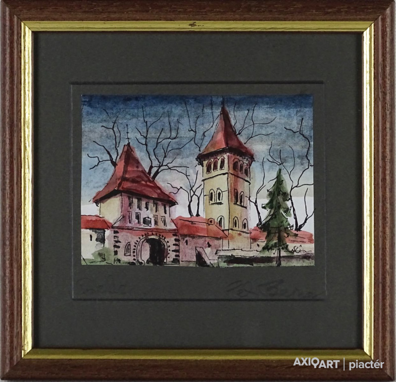 [1P024/129] Papír tus, akvarell vegyes technika üveglap mögött, paszpartuban és barna keretben. Akasztási lehetőséggel rendelkezik. Jelzés jobbra lent: PÉLI MANDULA Kép címe balra lent: BRASSÓ TUS, AKVARELL 2002 Magasság: 22 cm Szélesség: 32 cm Súly: 0.585 kg Péli Mandula grafikus Nagyvárad [Oradea, RO], 1969-08-28  1987: Képzőművészeti Líceum, Kolozsvár, kerámia szak; 1996: Magyar Képzőművészeti Főiskola, sokszorosító grafika szak, mesterei: Eszik Alajos, Pásztor Gábor; Magyar Képzőművészeti Főiskola, mesterkurzus. 1993: Barcsay-pályázat, I. díj; 1998: a Magyar Alkotóművészek Országos Egyesületének munkaösztöndíja. Az MGSZ tagja. A KREA Környezettervező Iskola tanára. Egyéni kiállítások Egyéni kiállítások 1996 • Örök Szüret Borgaléria, Budapest 2001 • Új Színház, Budapest Válogatott csoportos kiállítások Válogatott csoportos kiállítások 1987 • Kolozsvár 1993 • Nemzetközi Grafikai Biennálé, Győr • XVII. Országos Grafikai Biennálé, Miskolci Galéria, Miskolc Nemzetközi Művészkönyv Kiállítás, Vigadó Galéria, Budapest • FISE-kiállítás, Csók Galéria, Budapest 1997 • II. Országos Színesnyomat Grafikai kiállítás, Művészetek Háza, Szekszárd • Nemzetközi Livres-Objets Biennálé, Győr 1998 • XIX. Országos Grafikai Biennálé, Miskolci Galéria, Miskolc 1999 • Könyvvásár, Frankfurt 2000 • XX. Országos Grafikai Biennálé, Miskolci Galéria, Miskolc • Goethe Intézet, Budapest • Lélegzet, Erdei Ferenc Művelődési Ház, Kecskemét.    Forrás: artportal.hu