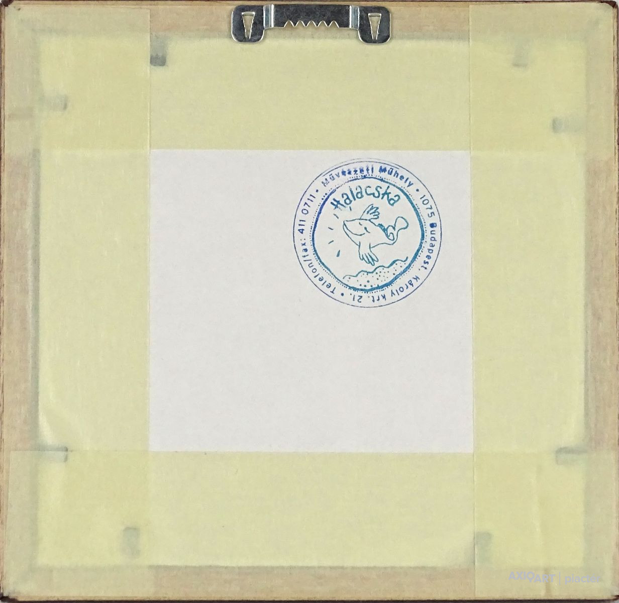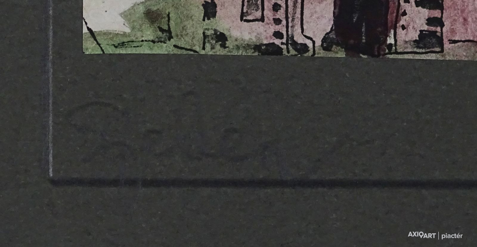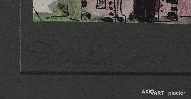 [FK1845/Z24/18] A kép mérete: 50 x 66 cm keret nélkül. Készült: pasztell, tempera, Papír A kép Kéri László (Budapest, 1949) alkotása. Jelezve Jobbra lent "Kéri László 76" A festmény jó állapotban van. Keret: Új A festmény hátoldalán a Képcsarnokvállalat raglapja látható. Magyar festők és grafikusok életrajzi lexikona I-II. Festő, grafikus. Tanulmányait a budapesti Képzőművészeti Főiskola festőszakán végezte 1976-ban. Sarkantyu Simon festőművész útmutatásai mellett képezte magát, de mesterének tartja Svády Lajost is. Évekig Szentesen dolgozott, majd Hódmezővásárhelyen telepedett le. 1977-ben tartotta első tárlatát. Ezt számos csoportos és egyéni bemutató követte. 1998-ban a Szegedi Táblaképfestészeti Biennálén szerepelt sikerrel. A Vásárhelyi Őszi Tárlatokon, valamint a békéscsabai Alföldi Tárlatokon nagyszámú díjat nyert el. Nem alföldi születésű, de tárgyi, valamint képi elemekkel kapcsolódik az alföldi hagyományokhoz. Rajzai, tusrajzai elementáris grafikusi tehetségről árulkodnak. Emberi viszonyokat, meghökkentő - alkalmasint - megdöbbentő emberi helyzeteket ábrázolnak rajzai. Festészetét illletően, pályakezdő korában erőteljesen érződött képein választott mesterének hatása, valamint a kései manierizimus és a korai barokk gomolygó, dinamikus rajzossága, erőteljes színvilága. A '80-as évek elején színei egyszerűbbek, tisztábbak lesznek. A '80-as, '90-es évtizedfordulón újból zaklatottan fest, diszharmonikus szín és tónuskontrasztokat használ. Az évtized vége felé újra higgadtabb megoldásokkat próbálkozik. Akvarellben és pasztellben is elismert művész, díszletterveket is készít. Számos köztéri munkája ismert (többnyire pannók). Alkotásai a Magyar Nemzeti Galéria és a hódmezővásárhelyi Tornyai J. Múzeum őrzi. (Pogány Gábor, MÉ, N.I.: Új Műv, 1992/5, Sz.P.: Új Műv. 1998/10) Magyar festők és grafikusok életrajzi lexikona I-II. Műgyűjtők és kereskedők kézikönyve Festő. Tanulmányait a bp.-i Képzőművészeti Főiskolán végezte, majd egy ideig Szentesen, később Hódmezővásárhelyen működött, ahol 1977-ben tartotta első tárlatát. Festészetének meghatározója az Alföld, de tárgyi és képi elemekkel kapcsolódik az alföldi hagyományokhoz. (MÉ) Magyar festők és grafikusok adattára Tanulmányait 1976-ban a Képzőművészeti Főiskolán végezte, a még ebben az évben Szentesre költözött. Jelenleg Hódmezővásárhelyen él, ahol 1977-ben tartotta első kiállítását. Festészetének meghatározója választott szűkebb hazája, az Alföld. Bár nem közvetlenül,inkább áttételesen, tárgyi és képi elemekkel kapcsolódik az alföldi hagyományokhoz. - Irod.: P. Sz. T.: Művész életrajzok. Bp. 1985. Művész életrajzok kortárs magyar képzőművészek 1976-ban végzett a Képzőművészeti Főiskolán, s még ez évben Szentesre költözött. Jelenleg Hódmezővásárhelyen él; első kiállítása e városban volt 1977-ben. - Festészetének meghatározója választott szűkebb pátriája, az Alföld; bár nem közvetlenül, inkább áttételesen, tárgyi és képi elemekkel kapcsolódik az alföldi festészeti hagyományokhoz. Kortárs magyar művészeti lexikon I-III. 1976: MKF, festő szak, mestere: Sarkanyú Simon, de Sváby Lajost is mesterének tartja. 1976-84-ig Szentesen él, azóta Hmvhelyen. A Vásárhelyi Őszi Tárlatokon és a bcsabai Alföldi Tárlatokon nagyszámú díjat nyert; 1980: PIM, József A.-pályázat HNF díja; 1978, 1984, 1986: Szegedi Nyári Tárlat díja; 1987: Tornyai Plakett; 1992: Akvarell B: Eger város Önkormányzat díja; 1998: Zene szemeimnek, MATÁV festészeti pályázat II. díja. Pályakezdő korában erőteljesen érződött képein választott mesterének hatása, valamint a kései manierizmus, és a korai barokk gomolygó, dinamikus rajzossága, erőteljes színvilága. A 80-as évek elején a színek egyszerűbbek, tisztábbak lesznek és előszeretettel alkalmaz a képen belső fényforrást. A 80-as, 90-es évtizedfordulón újból zaklatottaan fest, diszharmonikus szín és tónuskontrasztokat használ, szimbolikája áttételesebbé válik, majd kisméretű vásznakból sorozatokat készít, egy keretben álllítva ki azokat. Az évtized vége felé újra higgadtabb megoldásokat választ. Kéri László festészete mindvégig emberközpontú, figurális, az erőteljes emberi érzelmek közvetítője. Akvarellben és pasztellben is elismert művész, díszletterveket is készít. Ek: 1977: Medgyessy T., Hmvhely; 1979: Kisg. Szentes; 1981: Horváth E. G., Bgyarmat; 1983: Móra F. M. Képtára, Szeged; 1985: Vaszary T., Kaposvár; Gyöngyösi G., Gyöngyös; 1988: M. Historii, Lódz (PL); Magyar Int. Varsó; 1989: Art Service G., Párizs (kat.); 1990: Chateau d' Eguilly, Pouilly en Auxois (FR); 1991: Coll. Hung., Bécs; Műv. Közp., Nagykanizsa; 1993: Art Service G., Párizs; 1995: Wesselényi 70 G.; Tornyai J. M., Hmvhely; Bartók G., Szeged; 1996: G. de Meerse, Haarelmmermeer (NL); Hódtói Ált. Isk., Hmvhely; 1997: Tiszai G., Csongrád Vcsk: 1977-től Vásárhelyi Őszi Tárlatok, Szegedi Nyári Tárlatok, Alföldi Tárlatok, Bcsaba; 1981: Az út elején? Közben? Nyolc fiatal művész, Bartók 32 G.; 1982: I. Orsz. Rajzb., Salgótarján, Festőművészek a XI. kerületben, Bartók 32 G.; 1984: Vásárhelyi művészek, Zentai M. (Senta, YU), Vallomások az emberről, Juhász Gy. Műv. Közp., Szeged; 1987: Nközi Művésztelep, Iserlohn (NSZK); 1988: Görög Templom, Vác; Wilhelmshafen (D); 1994: Európa elrablása, Vigadó G.; 1997: Szimbiózis, Pest Center G.; 1998: Mednyánszky Társaság, S. Andrea G., Párma (OL); Belső rajz, Nádor G.; Kollázs, Vigadó G.; Zene szemeinknek, MATÁV pályázat, Pécs, Győr, Miskolc, Debrecen, Bp.; 1999: Ne vakolj a freskóra, Móra F. M. Képtára, Szeged; Mednyánszky Társaság, Koller G.; S