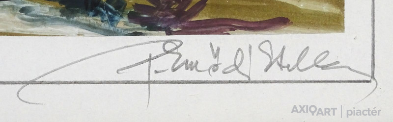 [FK1845/Z24/18] A kép mérete: 50 x 66 cm keret nélkül. Készült: pasztell, tempera, Papír A kép Kéri László (Budapest, 1949) alkotása. Jelezve Jobbra lent "Kéri László 76" A festmény jó állapotban van. Keret: Új A festmény hátoldalán a Képcsarnokvállalat raglapja látható. Magyar festők és grafikusok életrajzi lexikona I-II. Festő, grafikus. Tanulmányait a budapesti Képzőművészeti Főiskola festőszakán végezte 1976-ban. Sarkantyu Simon festőművész útmutatásai mellett képezte magát, de mesterének tartja Svády Lajost is. Évekig Szentesen dolgozott, majd Hódmezővásárhelyen telepedett le. 1977-ben tartotta első tárlatát. Ezt számos csoportos és egyéni bemutató követte. 1998-ban a Szegedi Táblaképfestészeti Biennálén szerepelt sikerrel. A Vásárhelyi Őszi Tárlatokon, valamint a békéscsabai Alföldi Tárlatokon nagyszámú díjat nyert el. Nem alföldi születésű, de tárgyi, valamint képi elemekkel kapcsolódik az alföldi hagyományokhoz. Rajzai, tusrajzai elementáris grafikusi tehetségről árulkodnak. Emberi viszonyokat, meghökkentő - alkalmasint - megdöbbentő emberi helyzeteket ábrázolnak rajzai. Festészetét illletően, pályakezdő korában erőteljesen érződött képein választott mesterének hatása, valamint a kései manierizimus és a korai barokk gomolygó, dinamikus rajzossága, erőteljes színvilága. A '80-as évek elején színei egyszerűbbek, tisztábbak lesznek. A '80-as, '90-es évtizedfordulón újból zaklatottan fest, diszharmonikus szín és tónuskontrasztokat használ. Az évtized vége felé újra higgadtabb megoldásokkat próbálkozik. Akvarellben és pasztellben is elismert művész, díszletterveket is készít. Számos köztéri munkája ismert (többnyire pannók). Alkotásai a Magyar Nemzeti Galéria és a hódmezővásárhelyi Tornyai J. Múzeum őrzi. (Pogány Gábor, MÉ, N.I.: Új Műv, 1992/5, Sz.P.: Új Műv. 1998/10) Magyar festők és grafikusok életrajzi lexikona I-II. Műgyűjtők és kereskedők kézikönyve Festő. Tanulmányait a bp.-i Képzőművészeti Főiskolán végezte, majd egy ideig Szentesen, később Hódmezővásárhelyen működött, ahol 1977-ben tartotta első tárlatát. Festészetének meghatározója az Alföld, de tárgyi és képi elemekkel kapcsolódik az alföldi hagyományokhoz. (MÉ) Magyar festők és grafikusok adattára Tanulmányait 1976-ban a Képzőművészeti Főiskolán végezte, a még ebben az évben Szentesre költözött. Jelenleg Hódmezővásárhelyen él, ahol 1977-ben tartotta első kiállítását. Festészetének meghatározója választott szűkebb hazája, az Alföld. Bár nem közvetlenül,inkább áttételesen, tárgyi és képi elemekkel kapcsolódik az alföldi hagyományokhoz. - Irod.: P. Sz. T.: Művész életrajzok. Bp. 1985. Művész életrajzok kortárs magyar képzőművészek 1976-ban végzett a Képzőművészeti Főiskolán, s még ez évben Szentesre költözött. Jelenleg Hódmezővásárhelyen él; első kiállítása e városban volt 1977-ben. - Festészetének meghatározója választott szűkebb pátriája, az Alföld; bár nem közvetlenül, inkább áttételesen, tárgyi és képi elemekkel kapcsolódik az alföldi festészeti hagyományokhoz. Kortárs magyar művészeti lexikon I-III. 1976: MKF, festő szak, mestere: Sarkanyú Simon, de Sváby Lajost is mesterének tartja. 1976-84-ig Szentesen él, azóta Hmvhelyen. A Vásárhelyi Őszi Tárlatokon és a bcsabai Alföldi Tárlatokon nagyszámú díjat nyert; 1980: PIM, József A.-pályázat HNF díja; 1978, 1984, 1986: Szegedi Nyári Tárlat díja; 1987: Tornyai Plakett; 1992: Akvarell B: Eger város Önkormányzat díja; 1998: Zene szemeimnek, MATÁV festészeti pályázat II. díja. Pályakezdő korában erőteljesen érződött képein választott mesterének hatása, valamint a kései manierizmus, és a korai barokk gomolygó, dinamikus rajzossága, erőteljes színvilága. A 80-as évek elején a színek egyszerűbbek, tisztábbak lesznek és előszeretettel alkalmaz a képen belső fényforrást. A 80-as, 90-es évtizedfordulón újból zaklatottaan fest, diszharmonikus szín és tónuskontrasztokat használ, szimbolikája áttételesebbé válik, majd kisméretű vásznakból sorozatokat készít, egy keretben álllítva ki azokat. Az évtized vége felé újra higgadtabb megoldásokat választ. Kéri László festészete mindvégig emberközpontú, figurális, az erőteljes emberi érzelmek közvetítője. Akvarellben és pasztellben is elismert művész, díszletterveket is készít. Ek: 1977: Medgyessy T., Hmvhely; 1979: Kisg. Szentes; 1981: Horváth E. G., Bgyarmat; 1983: Móra F. M. Képtára, Szeged; 1985: Vaszary T., Kaposvár; Gyöngyösi G., Gyöngyös; 1988: M. Historii, Lódz (PL); Magyar Int. Varsó; 1989: Art Service G., Párizs (kat.); 1990: Chateau d' Eguilly, Pouilly en Auxois (FR); 1991: Coll. Hung., Bécs; Műv. Közp., Nagykanizsa; 1993: Art Service G., Párizs; 1995: Wesselényi 70 G.; Tornyai J. M., Hmvhely; Bartók G., Szeged; 1996: G. de Meerse, Haarelmmermeer (NL); Hódtói Ált. Isk., Hmvhely; 1997: Tiszai G., Csongrád Vcsk: 1977-től Vásárhelyi Őszi Tárlatok, Szegedi Nyári Tárlatok, Alföldi Tárlatok, Bcsaba; 1981: Az út elején? Közben? Nyolc fiatal művész, Bartók 32 G.; 1982: I. Orsz. Rajzb., Salgótarján, Festőművészek a XI. kerületben, Bartók 32 G.; 1984: Vásárhelyi művészek, Zentai M. (Senta, YU), Vallomások az emberről, Juhász Gy. Műv. Közp., Szeged; 1987: Nközi Művésztelep, Iserlohn (NSZK); 1988: Görög Templom, Vác; Wilhelmshafen (D); 1994: Európa elrablása, Vigadó G.; 1997: Szimbiózis, Pest Center G.; 1998: Mednyánszky Társaság, S. Andrea G., Párma (OL); Belső rajz, Nádor G.; Kollázs, Vigadó G.; Zene szemeinknek, MATÁV pályázat, Pécs, Győr, Miskolc, Debrecen, Bp.; 1999: Ne vakolj a freskóra, Móra F. M. Képtára, Szeged; Mednyánszky Társaság, Koller G.; S
