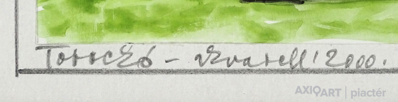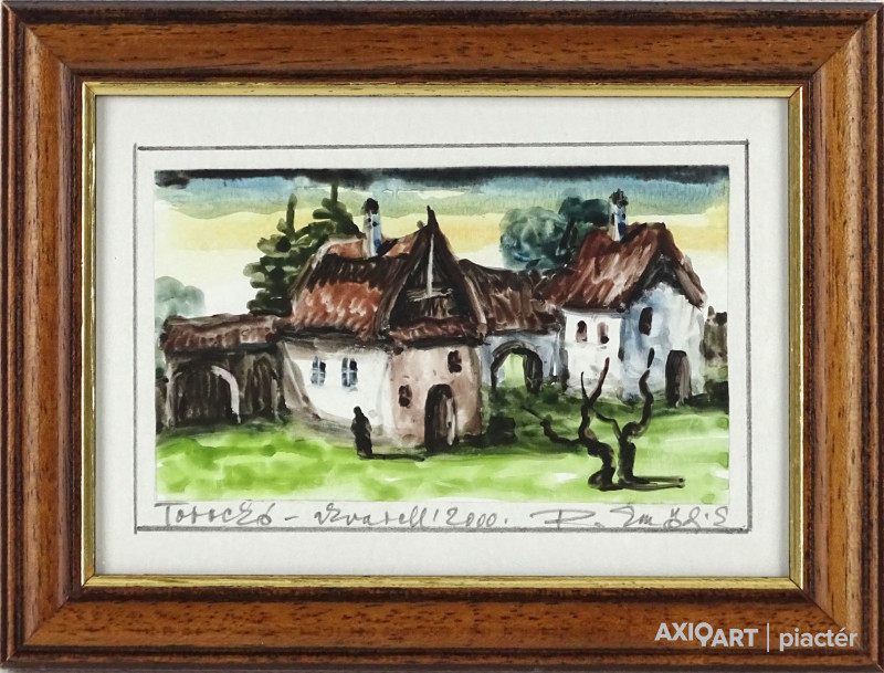 [1P027/129] Papír akvarell üveglap mögött, keretben. Akasztási lehetőséggel rendelkezik. Jelzés jobbra lent: P. EMŐDI E. (Péli Emődi Etelka) Balra lent kép címe, technika: TOROCKÓ AKVARELL 2000 Magasság: 13.5 cm Szélesség: 18 cm Súly: 0.155 kg