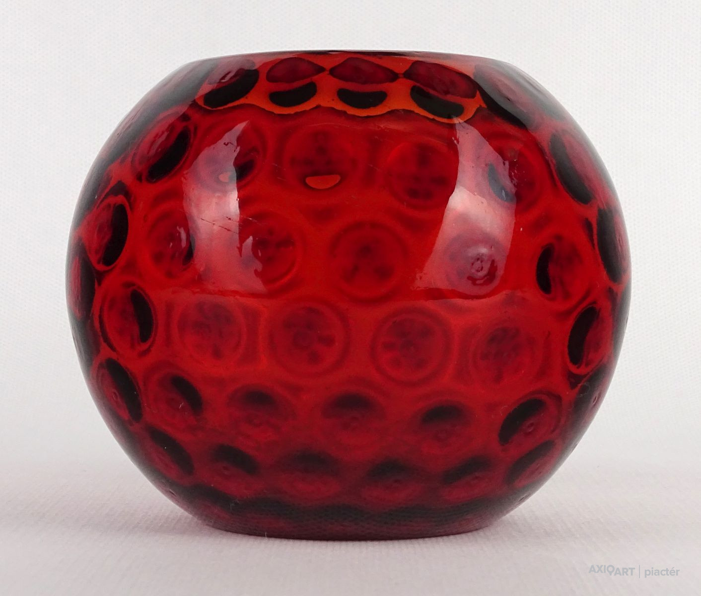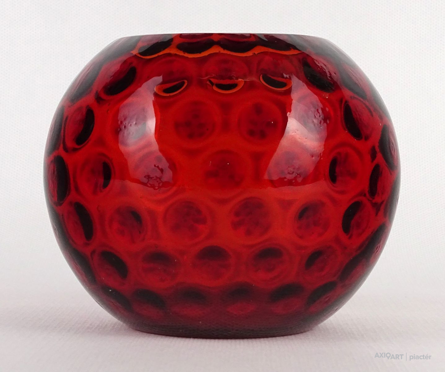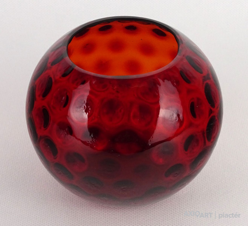 Piros fújt skandináv üveg váza gömbváza 10 cm