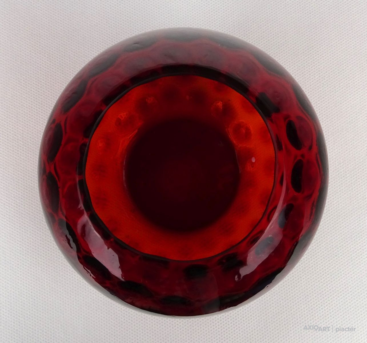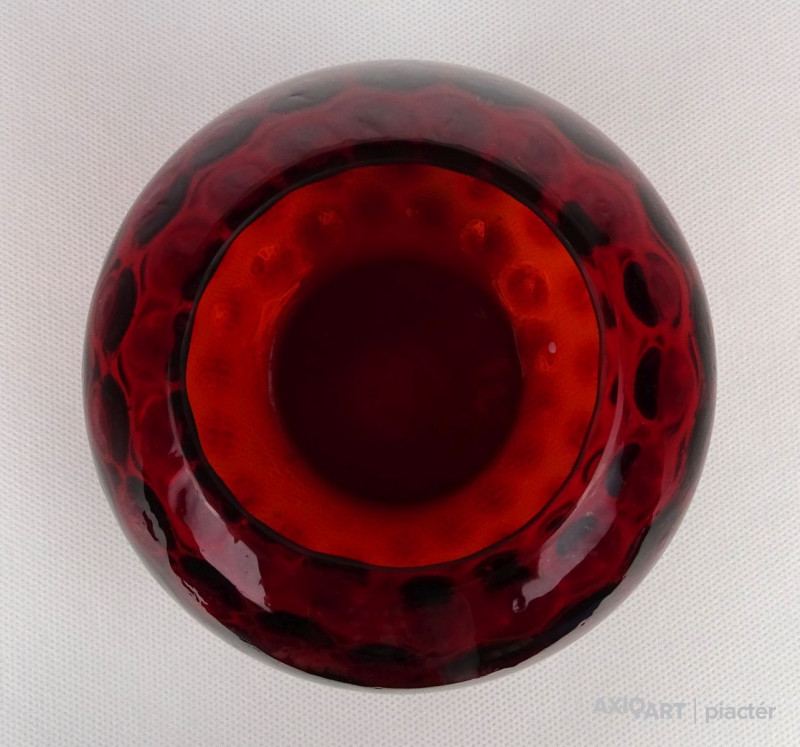 Hibátlan állapotú piros, belülről pikkelyes skandináv üveg váza, svéd design üveg váza. Fúvott üveg váza, gömbváza.