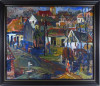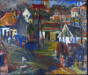 [FK2668/Bp301/4] A kép mérete: 50,5 x 80,5 cm keret nélkül. Készült: Olaj, Vászon A kép Moldován István (Kolozsvár, 1911) alkotása. Jelezve Jobbra lent "Moldován István" A festmény jó állapotban van. Keret: Ép A festmény hátoldalán a Képcsarnokvállalat raglapja láltható. Magyar festők és grafikusok életrajzi lexikona I-II. Festő. Tanulmányait Kolozsvárott, a Szépművészeti Főiskolán kezdte 1930-ban. A következő esztendőben a nagybányai Szépművészeti Iskolában Thorma János és Krizsán János korrektúráján képezte magát. 1931-ben a budapesti Képzőművészeti Főiskola hallgatója lett. Réti István, később Szőnyi István volt a mestere. Már mint főiskolás sok díjat és kitüntetést nyert. 1948-ban megkapta a római ösztöndíjat, de lemondva róla, Erdélybe ment. 1948-1950 között Erdélyben élt, és népművészetben gazdag vidékein festett. 1943-ban Kolozsvárott, 1946-ban Gyöngyösön, 1955-ben, 1959-ben és 1962-ben a Kulturális Kapcsolatok Intézetében, illetve a Csók Galériában rendezett egyéni bemutatókat. Ezen kívül több Európai országban, az USA-ban, Kanadában és Indiában is bemutatta munkáit. Eleinte sajátos atmoszférájú, lírai tájképeket, eleven színvilágú képmásokat festett, később mondernebb, erőteljesebben szerkesztett művekkel jelentkezett. A Pécsi Tanárképző Főiskola számára mozaikot készített. Erdély szerelmese volt. A székely népművészet gazdag formavilágának hatása döntő jelentőségűvé vált sokoldalú művészetében. Műv. díjak: a Szinyei Társaság elismerő oklevele, a Főváros festészeti-díja, "Kolozsvár a képzőművészetben" II. díj, állami ösztöndíj, római ösztöndíj, a Képzőművészek Szövetsége Észak-Magyarországi festészeti díja, SZOT festészeti díj. Több murális művet (mozaik) alkotott. A Magyar Nemzeti Galéria több alkotását őrzi. (M. L.: Műv. 1967/6, RI-NM) Magyar festők és grafikusok életrajzi lexikona I-II. Műgyűjtők és kereskedők kézikönyve Festő. Tanulmányait a kolozsvári Szépművészeti Főiskolán kezdte 1930-ban. A nagybányai szabadiskolában is megfordult. Itt Thorma János és Krizsán János korrektúráján képezte magát. 1931-ben Budapesten a Képzőművészeti Főiskola hallgatója lett. Réti István, később Szőnyi István volt a mestere. Már mint főiskolás sok díjat nyert. 1948-ban megkapta a római ösztöndíjat, de lemondva róla, Erdélybe ment. 1948-1950 k. Erdélyben élt, és népművészetben gazdag vidékein festett. 1943-ban Kolozsváron, 1946-ban Gyöngyösön, 1955-ben, 1959-ben és 1962-ben a Kulturális Kapcsolatok Intézetében, illetve a Csók Galériában rendezett önálló kiállítást. Ezen kívül több Európai országban, az USA-ban, Kanadában és Indiában is bemutatta műveit. Eleinte sajátos atmoszférájú, lírai tájképeket, eleven színvilágú képmásokat festett, később mondernebb, erőteljesebben szerkesztett művekkel jelentkezett. A Pécsi Tanárképző Főiskola számára mozaikot készített. Erdély szerelmese volt. A székely népművészet gazdag formavilágának hatása döntő jelentőségűvé vált sokoldalú művészetében. 1942-ben megkapta a Szinyei Társaság elismerését, és a Főváros festészeti-díjat,1943-ban elnyerte a "Kolozsvár a képzőművészetben" c. díjat. 1947-ben állami ösztöndíjat,1948-ban a római ösztöndíjat, 1972-ben a Képzőművészek Szövetsége Észak-Magyarországi festészeti díját kapta meg. A MNG több művét őrzi. (M. L.: Műv.-1976/6) Magyar festők és grafikusok adattára Tanulmányait Kolozsvárott a Képzőművészeti Főiskolán, majd Nagybányán Thorma János és Krizsán János irányítása mellett kezdte, 1931-től Budapesten megszakításokkal a Képzőművészeti Főiskolán Réti István és Szőnyi István növendékeként fejezte be. 1949-ben és 1950-ben ösztöndíjjal dolgozott Erdélyben, majd hosszú tanulmányutakra indult Nyugat-Európába, az Egyesült Államokba, s a Szovjetunióba. Először Kolozsvárott lépett a nyilvánosság elé 1943-ban, majd 1946-ban Egerben és Gyöngyösön, 1947-ben Miskolcon, 1948-ban Hatvanban, 1955, 1961 és 1981-ben a Csók Galériában, 1959-ben a KKI-ben, 1960-ban Nagykanizsán, 1963-ban Kiskunfélegyházán, 1966-ban Debrecenben, 1969 és 1975-ben Békéscsabán, 1971-ben a Mednyánszky Teremben, 1973-ban Gyöngyösön és Debrecenben, 1977-ben Egerben, 1979-ben Veszprémben, 1983-ban Miskolcon, 1984-ben Csepelen, 1986-ban a Vigadó Galériában rendezett önálló kiállítást. Külföldi kiállításai: Moszkva, Varsó, India, Szófia, Párizs, Bukarest, Belgrád, New York, Montreál és Toronto. Eddig közel kétezer színes táblaképet festett, de szívesen foglalkozik mozaikkészítéssel is. 1964-ben a Pécsi Pedagógiai Főiskola, 1968-ban a Salgótarjáni Kórház, 1969-ben a názáreti templom és 1970-ben a Videoton Vállalat díszterme részére mozaikot készített. - Erdély szerelmese. A székely népművészet gazdag formavilágának hatása döntő jelentőségűvé vált festészetében. Olyan formanyelvet alakított ki magának, amely színvilágában és summázó formaalakításában sajátos erdélyi zamat érződik, ugyanakkor korszerűen modern is konstruktivista stílusa. Munkásságát 1942-ben a Szinyei Társaság elismerésével és a Fővárosi festészeti-díjjal, 1943-ben Római-ösztöndíjjal, 1947-ben Állam ösztöndíjjal (Románai), 1963-ben a SZOT festészeti-díjával, 1972-ben a Képzőművészek Szövetsége Észak-Magyarországi festészeti-díjával tüntették ki. - Irod.: Bíró Béla: Kolozsváry Moldován István. Erdélyi Helikon, 1943.; Felvinczi Takács Zoltán: Kolozsváry Moldován István. Kolozsvár, 1943.; Dutka Mária: Magyar Nemzet, 1961.; Maksay László: Moldován István. Művészet, 1965.; D. Fehér Zsuzsa. Moldován István, Bp. 1971.; Theisler G