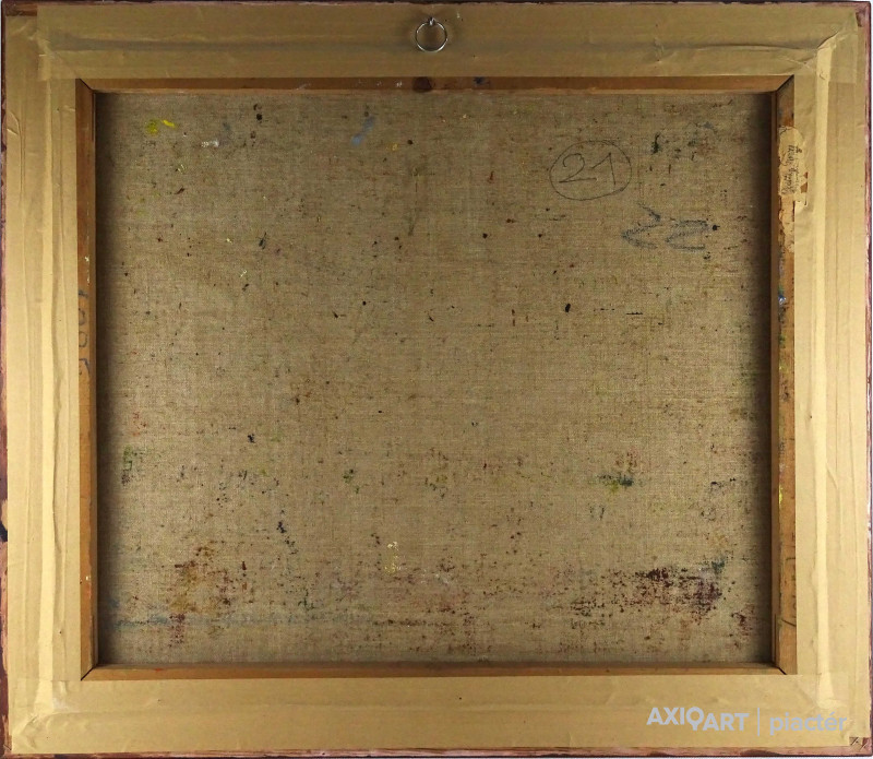 [FK0037/Z018] A kép mérete: 50 x 70 cm keret nélkül. Készült: Olaj, Vászon A kép Paizs László (Szentpéterúr, 1935) alkotása. Jelezve Jobbra lent "P. L." A festmény jó állapotban van. Keret: Ép A festmény hátoldalán a Képcsarnokvállalat címkéje található. Magyar festők és grafikusok életrajzi lexikona I-II. Festő. Tanulmányait a budapesti Iparművészeti Főiskolán végezte 1959-ben. Z. Gács György, Rákosy Zoltán és Szentiványi Lajos növendéke volt. A '60-as évek első felében hagyományosabb felfogású olajképeket festett, mozaikokat, freskókat, utóbb a pop-art körébe tartozó, a francia Arman munkáival rokon műveket alkotott. 1961 óta kiállító művész. Egyéni (Fényes Adolf Terem, Csók Galéria, Műcsarnok, Magyar Nemzeti Galéria, Halászbástya, Bástya Galéria, Vigadó Galéria, Budapest Galéria, Győr, Szombathely, Szeged, Zalaegerszeg, Duisburg, Aix-en-Provence, stb). és vegyes (Ernst Múzeum, Műcsarnok, Óbuda Galéria, Magyar Nemzeti Galéria, Csók Galéria, Vigadó Galéria, Székesfehérvár, Kaposvár, Pécs, Hódmezővásárhely, Firenze, Milano, Padova, Nápoly, Velence, Düsseldorf, Aachen, Genf, stb) tárlatokon vett részt. 1980-ban Munkácsy-díjjal jutalmazták, 1988-ban Érdemes Művész kitüntető elismerésben részesült. Munkáit őrzi a Magyar Nemzeti Galéria, a Fővárosi Képtár, a szombathelyi képtár, a pécsi Janus P. Múzeum, a székesfehérvári István Király Múzeum és a dunaszerdahelyi Kortárs Magyar Galéria. (H.B.: Műv, 1972/4, K.Gy.: Műv. 1977/2, K.G.: Műv. 1978/10, M.L.: Műv, 1983/5, R.G.: Műv, 1987/9, Sz.Gy.: Új Műv. 1995/4, MK) Magyar festők és grafikusok életrajzi lexikona I-II. Műgyűjtők és kereskedők kézikönyve Festő. Tanulmányait a bp.-i Iparművészeti Főiskolán végezte. Mozaikokat ferskókat, utóbb a pop-art körébe tartozó, a francia Arman műveivel rokon műveket alkotott. Mozaikok: a Szegedi Megyei Tanács, a Pécsi Óvoda, a Gödöllői Agrártudományi Egyetem. Freskók: Budapest - Csatárka úti Gyermekotthon. 1971-ben a Fényes Adolf Teremben volt kiállítása, 1983-ban pedig a szegedi Móra Ferenc Múzeumban nagyszabású tárlatokon mutatta be munkáit. 1988-ban érdemes művész kitüntető elismerésben részesült. (MK) Magyar festők és grafikusok adattára Az Iparművészeti Főiskolán végzett 1959-ben. Mozaikokat (Szeged, Megyei Tanács; Pécs, Óvoda; Gödöllő, Agrártudományi Egyetem), freskókat (Budapest, Csatárka úti Gyermekotthon), újabban a pop art körébe tartozó, a francia Arman műveivel rokon műveket alkotott. 1971-ben a Fényes Adolf Teremben nyílt kiállítása. 1983 februárjában a szegedi Móra Ferenc Múzeumban megrendezett nagyszabású tárlaton mutatta be alkotásait. 1988-ban érdemes művész kitüntető elismerésben részesült. - MK Művészeti lexikon I-IV. (Szentpéterur, 1935. dec. 26.- ): festő. Az Iparművészeti Főiskolán 1959-ben végzett Rákosy Zoltán, Z. Gách György és Szentiványi Lajos növendékeként. Épületdiszítő mozaikokat, (Szeged, Megyei Tanács, 1961; Pécs, Óvoda, 1964), műanyagfreskókat (Bp., Csatárka úti Gyermekotthon, 1964) és gobelinterveket készít. Kortárs magyar művészeti lexikon I-III. Festő, szobrász, grafikus. 1959: MIF, mesterei: Z. Gács György, Rákosy Zoltán, Szentiványi Lajos. 1980: Munkácsy-díj; 1988: érdemes művész. Főiskolás éveinek második felében, majd azt követően számos murális munka kivitelezésében vett részt, Fónyi Géza, Konecsni György, Z. Gács György, Rákosi Zoltán és Domanovszky Endre mellett dolgozva. A 60-as évek első felének hagyományosabb fölfogású olajképeket festett. 1964-ben a Velencei B.-n megismerkedett az amerikai pavilonban a pop art Európában akkor még újnak számító törekvésével, és részben ez inspirálta, hogy 1967-ben textil, fém, bőr anyagú "varrottas" képeket küldjön az FKS éves tárlatára; a megnyitó előtt többek között az ő munkáit is eltávolították a falról. A 70-es években pop art-os objekteket (A trónörököspár politikai gyilkosság áldozata lett, 1970, plexiüveg, újság, szarvasbogarak), majd konstruktív, átlátszó plexiüveg plasztikákat készített belső fénytörő határfelületekkel. A 80-as években készültek az anyagában színezett, konstruktív, nagyméretű poliészter szobrai, majd színes poliészter táblaképeket alkotott, mesterségesen roncsolt felületekkel, mintha régészeti leletek vagy atomtámadás utáni festmény-szurrogátumok lennének. Ekkor kezdett organikus plaszikájú bronzszobrokat is mintázni. A 90-es években, a táblaképek és szobrok mellett nagyméretű, egyedi grafikákat készített, formavilágában némileg a roncsolt táblaképekből kiindulva, de szinte kizárólag az emberi alakból elvonatkoztatott torzókat megjelenítve. Ek: 1966: Művészklub, Győr; 1971: Fényes A. T.; 1972: Bercsényi 28-30 G.; 1973: BME B-épület; 1976: Csók G.; 1977: G. Hildebrandt, Duisburg (NSZK); 1979: Bástya G., Halászbástya; Helyőrségi Műv. H., Nagyatád; József A. Műv. Közp., Szeged; Göcsej M., Zalaegerszeg; 1982: Bezzegh G., Küsnacht (CH); 1983: Móra F. M., Szeged; 1987: Műcsarnok (kat.); MNG; 1988: Pandora G., Badacsonytomaj; 1989: Parktheatter, Iserlohn (NSZK); Qualitas G.; Hevesi S. Színház, Zalaegerszeg; 1990: Vasarely Fondation (Ferdinánd Judittal, Fóth Ernővel), Aix-en-Provence (FR); 1994: Vigadó G.; 1997: Pest Center G.; 1998: Budapest G. (kat.); 1999: Pest Center G. (kat); G. Arcis, Sárvár; MMA, Bp.; 2001: SZK, Szhely; Ernst M. (kat.) Vcsk: 1961, 1964, 1966: FKS, Ernst M.; 1962: 9. Magyar Képzőműv. kiállítás, Műcsarnok; 1967: Mai magyar festészet, Új-Delhi; 1969: Vas megyei művészek, Savaria M., Szhely; V. Orsz. Grafikai B., Miskolc; 1971: Új művek, Műcsarnok; 1972: Fiatal művészek Budapestről. Likovni Salon, Újvidék (YU); 1972, 1973: Balatonboglár