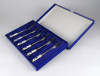 Porcelánbetétes 6 személyes ezüstözött villa készlet eredeti dobozában