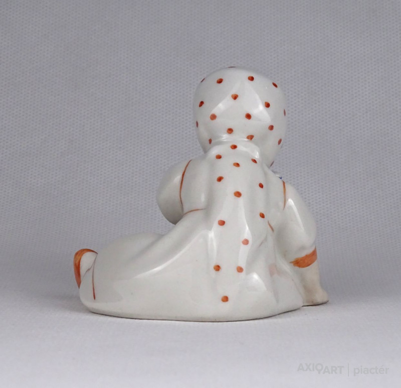 Pöttyös kendős korsós kislány Zsolnay porcelán figura