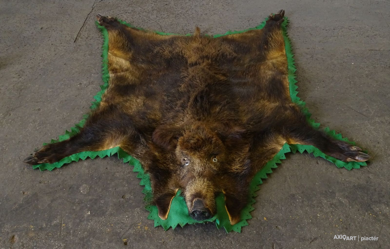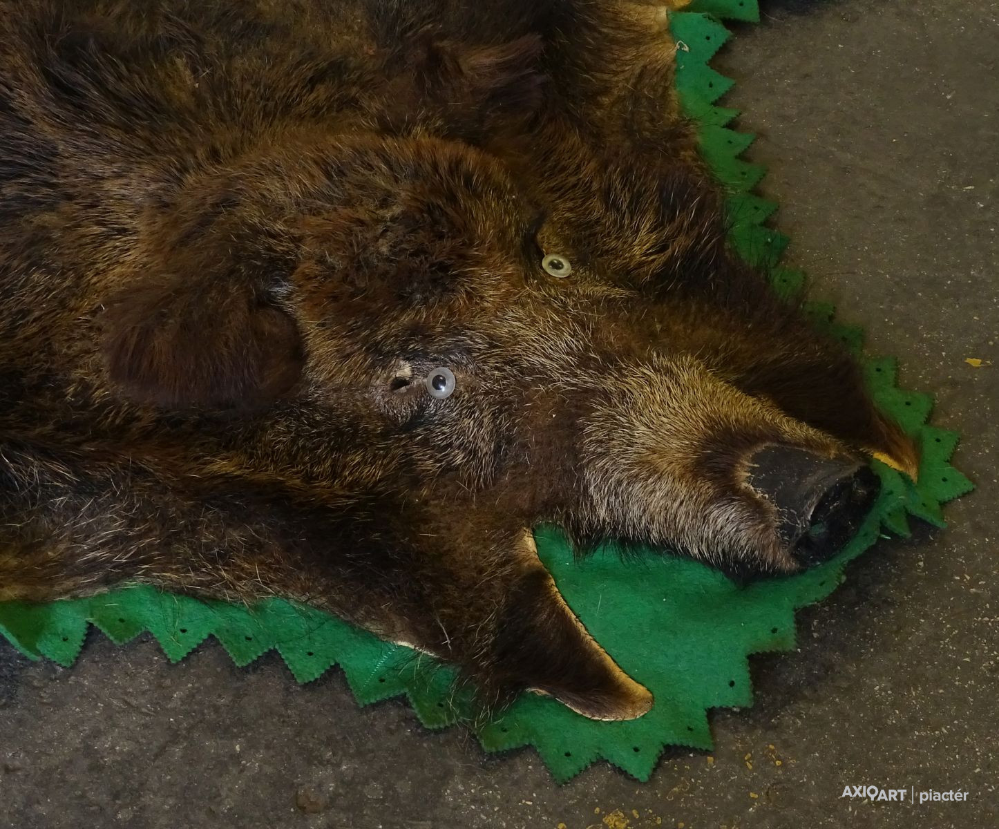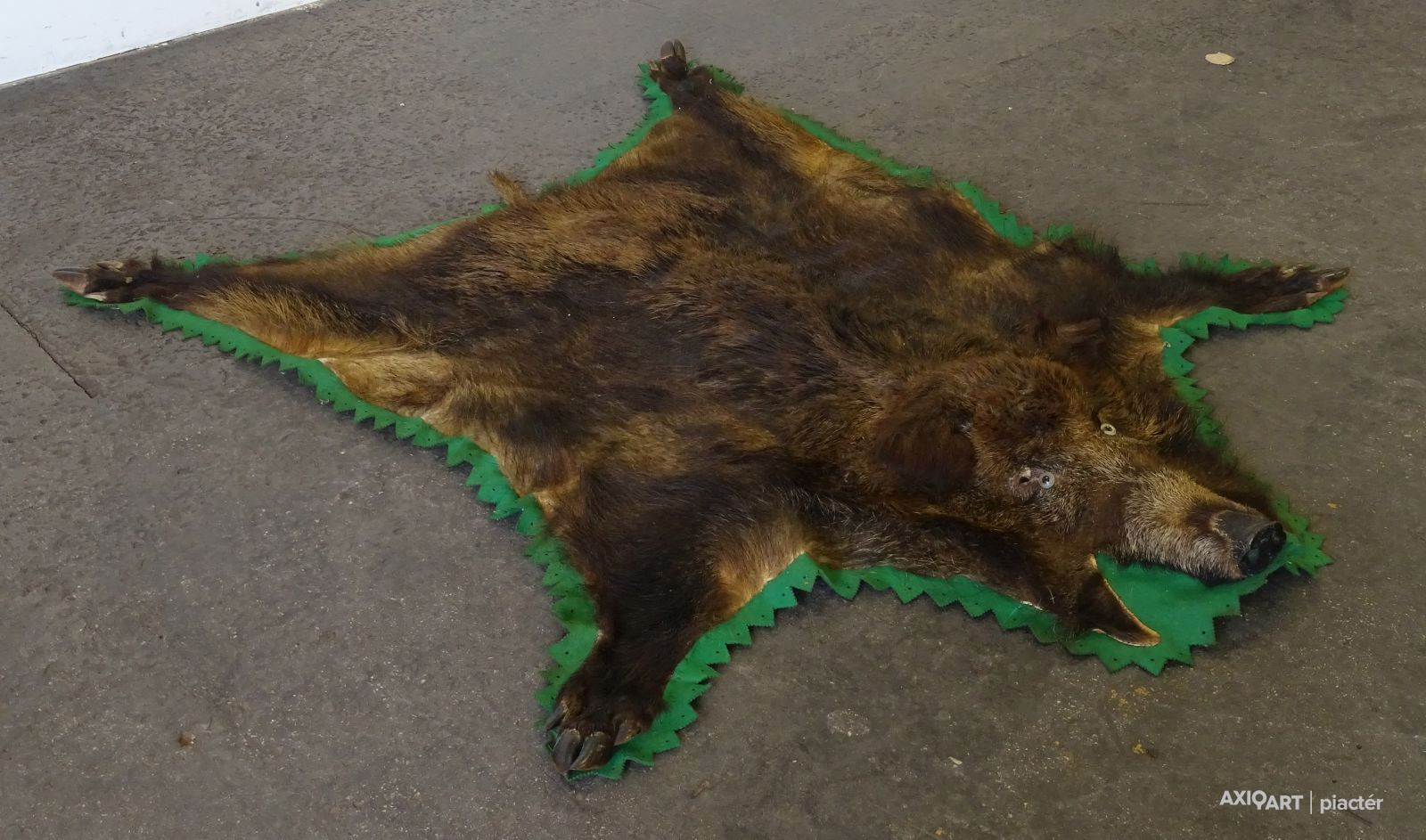 [1Q550/UZ-S] Nagy méretű, szép állapotú vaddisznó szőr, zöld filccel körben. Szélesség: 167 cm Hosszúság: 165 cm