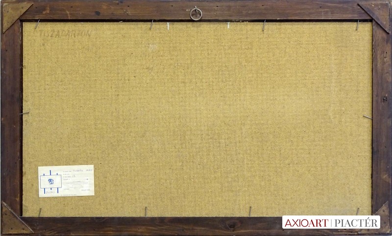 [FK3264/FL-4] A kép mérete: 31,5 x 70,5 cm keret nélkül. Készült: Olaj, tempera, Farostlemez A kép Kurucz D. István (Hódmezővásárhely, 1914, Budapest, 1996) alkotása. Jelezve Jobbra lent "Kurucz 977" A festmény jó állapotban van. Keret: Ép A festmény hátoldalán a Képcsarnokvállalat raglapja látható. Magyar festők és grafikusok életrajzi lexikona I-II. Festő, grafikus. Vásárhelyről, ahol Darvasy István festőművész figyelt fel tehetségére, került Szőnyi István magániskolájába. A fővárosi Képzőművészeti Főiskolának, ahol Rudnay Gyula, Réti István, Benkhard Ágost, Szőnyi István voltak a tanítómesterei 1940-ig volt a tanítványa. A monumentális festészetet Nagy Sándor tanította. Tanulmányúton járt több kelet- és nyugat-európai államban, Mongóliában, Japánban, Algériában. 1940-ben Hódmezővásárhelyen telepedett le, 1943-1947 között bekapcsolódott szülővárosa művészeti és közéletébe. A Vásárhely Népe c. lap munkatársa volt. 1949-59 között Szőnyi tanársegédjeként freskótechnikát tanított a főiskolán. 1951-52-ben megszervezte a Honvédségi Képzőművészeti Stúdiót, majd kinevezték a Honvéd Képzőművészeti Iskola igazgatójának. A vásárhelyi iskola reprezentáns egyéniségeként jelentős szerepe volt a Vásárhelyi Őszi Tárlatok elindításában. Megszervezete és vezette a Mednyánszky Társaságot, s haláláig művészeti vezetője volt a Hajdúböszörményi Nemzetközi Művésztelepnek. Évekig elnöke volt a Hortobágyi Alkotótábornak. Az alföldi parasztok életét megörökítő képei a falképek összefoglaló stílusában a népi realizmus és a dekoratív sommázás szellemében készültek. Számos falképet festett (Kossuth Akadémia, hódmezővásárhelyi iskola, stb.). 1941-től számos kisebb-nagyobb egyéni kiállítása volt, bemutatkozott több hazai és külhoni városban. 1941-től minden jelentősebb országos rendezvény és a magyar művészek külföldi bemutatóinak résztvevője. Rendszeresen szerepelt a Vásárhelyi Őszi Tárlatokon, a Hatvani Tájkép és Portrébiennálékon, a Szegedi Nyári Tárlatokon. Képei bemutatásra kerültek a vásárhelyi iskola jubileumi rendezvényein. 1962-ben több alkotásával szerepelt a Velencei Biennálén. Díjak: SZOT-díj, Munkácsy-díj, Érdemes és Kiváló Művész kitüntetés, Tornyai-plakett, római ösztöndíj, a Munka Érdemrend arany fokozata, Káplár Miklós-díj és emlékplakett, Kossuth-díj. Művei megtalálhatók minden jelentősebb hazai, több olasz és japán közgyűjteményben. (ML, D.J.: Műv. 1985/5, Tasnádi Attila adatközlése nyomán, L.L.: Műv. 1983/3) Magyar festők és grafikusok életrajzi lexikona I-II. Műgyűjtők és kereskedők kézikönyve Festő, grafikus. Vásárhelyről, ahol Darvasy István festőművész figyelt fel tehetségére, került Szőnyi István magániskolájába. A fővárosi Képzőművészeti Főiskolának, ahol Rudnay Gyula, Réti István, Benkhard Ágost, Szőnyi István voltak a tanítómesterei 1941-ig volt a növendéke. A monumentális festészetet Nagy Sándor tanította. Egy ideig tanársegédként működött Szőnyi mellett. Több ízben járt Itáliában tanulmányúton. Évekig művészeti vezetője volt a Hajdúböszörményi Nemzetközi Művésztelepnek. Az alföldi parasztok életét megörökítő képei a falképek összefoglaló stílusában a népi realizmus és a dekoratív sommázás szellemében készülnek. A II. világháború alatt szerepet vállalt a Szocialista Képzőművészek Csoportjának akcióiban. 1949-1960 k. a Képzőművészeti Főiskola falképtanszékének tanára volt. Több falképet festett (Kossuth Akadémia, hódmezővásárhelyi iskola, stb.). 1962-ben több alkotásával szerepelt a Velencei Biennálén, SZOT-díjas, Munkácsy-díjas, érdemes és kiváló művész kitüntető elismerésében részesült. (ML, D.J.: Műv.-1985/5, L.L: Műv.-1983/3) Magyar festők és grafikusok adattára Tanulmányait a Képzőművészeti Főiskolán végezte, ahol Rudnay Gyula és Réti István voltak a mesterei. 1941-1943-ban ösztöndíjas Rómában. 1943-1947 között Hódmezővásárhelyen dolgozik, egyidejűleg a Vásárhelyi Hétfő c. hetilap szerkesztője. 1949-1960 közötti években a budapesti Képzőművészeti Főiskola freskó tanszékének tanára. Az 1940-es évek eleje óta kiállító művész. 1962-ben a Velencei Biennálén állították ki műveit. 1970-ben Csók István Galériában volt kiállítása. A Vásárhelyi Őszi Tárlatok és a Szegedi Nyári Tárlatok rendszeres kiállító művésze. Az alföldi festészet egyéni hangú továbbfejlesztője. Táblaképeket, freskókat és kerámia falképeket alkot. Munkácsy-díjas, érdemes és kiváló művész kitüntető elismerésében részesült. A SZOT a legelső képzőművészek közt, 1962-ben tüntette ki díjával. A 70. születésnapját ünneplő művész 1984 decemberében életmű kiállítást rendezett műveiből a hódmezővásárhelyi Tornyai János Múzeumban. 1986-ban a budapesti Hollósy Galériában nyílt kiállítása. - Irod.: Szij Rezső: Kurucz Dezső István festőművész. Bp. 1967.; Kulcsár Ödön: SZOT-díjasok. Bp., 1981.; Lóska Lajos: Mindig freskót szerettem volna festeni. Beszélgetés Kurucz Dezső Istvánnal. Művészet, 1984. 3. Művészeti lexikon I-IV. Festő, Munkácsy-díjas. A Képzőművészeti Főiskolán Rudnay Gyula, Réti István, Benkhard Ágost, Szőnyi István növendéke volt 1934-40 között. Több ízben járt külföldi tanulmányúton. Az alföldi parasztok életét megörökítő képei a falképek összefoglaló stílusában a népi realizmus és a dekoratív sommázás szellemében készülnek. 1949-60 között a Képzőművészeti Főiskola falképtanszékének tanára volt. Több falképet festett (Kossuth Akadémia; Hódmezővásárhely, iskola, pápai pártház, 1965). Legutóbb 195