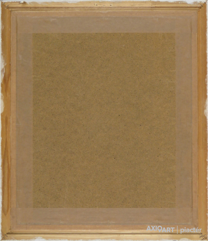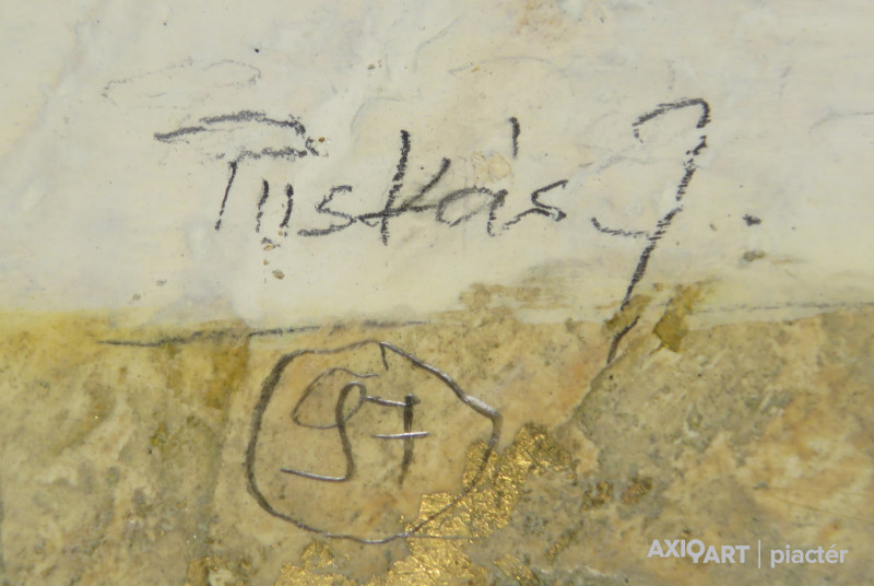 [1Y029/Z018] Olaj farost festmény, üveglap mögött, hibátlan képcsarnokos keretben. Hátoldalán Képcsarnok Vállalat papír címkéje: A művész neve: SCHÉNER MIHÁLY A kép címe: TÁJ Magasság: 66.5 cm Szélesség: 86 cm Súly: 6.54 kg Schéner Mihály festő, grafikus, szobrász, keramikus, bábtervező Medgyesegyháza, 1923-01-9 Elhalálozott: Budapest, 2009. május 11. Honlap: http://www.kormendigaleria.hu/kiadvany.html 1942-1947: Magyar Képzőművészeti Főiskola, tanára: Rudnay Gyula. 1978: Munkácsy-díj; 1984: érdemes művész; 1989: kiváló művész; 1995: Kossuth-díj. 1992-től a Magyar Művészeti Akadémia, 1993-tól a Széchenyi Irodalmi és Művészeti Akadémia tagja. 1956-ig tanított. 1982: Nagyatádi Faszobrász Alkotótelep, 1985: Nemzetközi Acélszobrász Alkotótelep, Dunaújváros. A stílusában felismerhető, mégis sokféle műtárgyat létrehozó ~ gazdag, állandóan alakuló életműve a folyton változó világban helyét kereső, az alkotói szabadságot megvalósító XX. századi képzőművész példázata lehetne. Magát expresszív-szürrealista alkotónak nevezi. Egyaránt dolgozik festékkel, textillel, fával, fémmel. Rajzol, szerkeszt, farag, épít, gyúr, varr és ragaszt, felhasználja a mézesbábok öntőformáit. Festő, rajzoló, textilszobor- és bábkészítő, fazekas, asztalos, esztergályos. Háromlépcsős folyamatban gondolkozik: rajzban tervez, majd fest, szobrot készít, “formába önt”, mindig a végső plasztikai megoldást keresi. Ami állandó és mégis játékosan változékony megjelenésű Schéner művészetében, az a gyermekkori emlékek által meghatározott népi mesterségek iránti tiszteletet kifejező motívumkincs, a tárgyi folklór formakészlete, amely már-már kézjegyként ismétlődik munkáin. Mitologikussá nőtt képzelete új lényeket teremt, pl: a Pigulát, amely disznótestű, emberfejű teremtmény. Schéner festményein a szürrealista motívumokat konstruktív szerkezetbe rendezi, a geometriát és az organikus természeti motívumokat egyaránt beépíti műveibe. A népi, népművészeti formakincsből merített lovas huszárok, betyárok, szegénylegények cifra szűr mentéje, piros csákója, fekete csizmája, az önálló életet élő zsinórdíszek és mézeskalács bábok, a kiskocsik a gyermekkori vásárok, búcsúk színes forgatagába vezet. A primér motívumokat aztán felváltják a vastagon felhordott felületbe karcolt jelek, vonalhálózatok, amelyek a játszó gyermek homokba rajzolt ábráit, a pásztorember fába vésett üzeneteit, az ősember barlang falába rótt mágikus jeleneteit idézik meg. A művész pillanatnyi érdeklődésének megfelelően a színek búvópatakként tűnnek el és jelennek meg ismét. A 60-as években leginkább a formákkal való játék érdekelte, a festmények felülete egyre gazdagodott: a táblaképek felületén applikációk jelentek meg, vagy lemállasztott rétegek hagyták maguk után hiányukat, motívumok nélküli ősformák, archetipikus képzetek bukkantak fel művészetében. A véletlenszerűnek látszó rétegekkel való játék azonban tudatos komponálás eredménye, amely később nyilvánvaló ritmusnak és formai szerkesztettségnek adja át a helyét, mint a Törvénytáblák c. sorozaton. A különböző művészi kifejezési formák egymásra termékenyítő hatással vannak, át- meg áthatják egymást. Textilszobrai, amelyekkel új műfajt teremtett, ugyanazzal az automatikus, expresszív-szürrealista módszerrel készülnek, mint festményei. A hagyományosan a népművészetben alkalmazott anyag, a filc lehetőséget ad a népi formakincs felelevenítésére, amely azonban a művész különös szürrealista átiratában jelenik meg. A szívekkel kivarrt, zsinórdíszes Posztókotlós c. művén mézesbábok lógnak, hátán huszárok lovagolnak. Egész sor textilből készült kéz-plasztikát alkot, amelyeket az ujjakra rávarrt díszekkel öltöztet, személyesít meg. A színes-különös világból aztán ~ újra puritán képi és formai rendbe juttatja el a nézőt, majd nemsokára tépett, gyűrt, vágott, csorgatott, repedezni hagyott szenvedélyesen vonagló képi felületeket hagy hátra. Schéner készített apró gyermekjátékokat, térstruktúra-tereket, mászókákat is. A magyar népi formák mellett szürreális játékaiban gyakran alkalmaz görög mitológiai alakokat, “elkentaurosodott” lovakat, Gorgó-fejeket, sellőket, hárpiákat, Pán-ábrázolásokat. Schéner nemcsak saját művészetéről publikál, hanem művésztársairól is számos írása jelenik meg, elsősorban az Új Auróra c. folyóiratban, amelynek egy ideig főmunkatársa volt. Irodalom kiállítása, Magyar Építőművészet, 1962/4. Húsz év után, Művészet, 1965/4. BOZÓKY M.: ~, Tiszatáj, 1968/5. PERNECZKY G.: Nincs uborkaszezon, Élet és Irodalom, 1969. augusztus 8. BARÁNSZKY-JÓB L.: ~, Művészet, 1969/9. LÁSZLÓ GY.: ~ kaposvári kiállítása, Jelenkor, 1969/4. MAJOR M.: Pásztorok, betyárok, huszárok - kezek, Tükör, 1970. szeptember 15. FRANK J.: Bemutatjuk ~t, Élet és Irodalom, 1972. május 6. ról kiállítása ürügyén, Képzőművészeti Almanach, Budapest, 1972 Sötétkék kokasok, Élet és Irodalom, 1973. szeptember 9. MAJOR M.: ~ játékai, Élet és Irodalom, 1974. július 27. BARTA J.: Egy különös művész, Alföld, 1974/6. VADAS J.: Szárnykészítők, Élet és Irodalom, 1975. október 4. JUHÁSZ F.: A halál ellen játszani, Élet és Irodalom, 1975. május 17. PAP G.: Kincsek és műkincsek, Művészet, 1975/6. P. SZŰCS J.: Az utak kettéválnak, Művészet, 1978/3. Békési művészet, Művészet, 1978/7. SZAMOSI F.: ~ [kismonográfia], Budapest, 1978 VADAS J.: Játék a játékkal, Élet és Irodalom, 1979. augusztus 18. NÉMETH L.: ~ műveiről, Művészet, 1979/4. MIKLÓS P.: Mit akar ez a múzeum?, Művésze