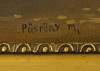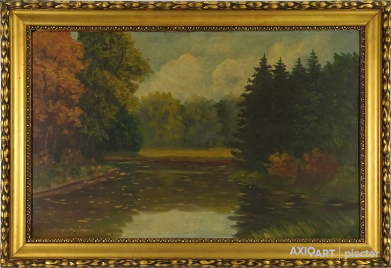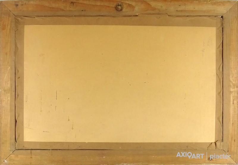 [FK0037/Z018] A kép mérete: 50 x 70 cm keret nélkül. Készült: Olaj, Vászon A kép Paizs László (Szentpéterúr, 1935) alkotása. Jelezve Jobbra lent "P. L." A festmény jó állapotban van. Keret: Ép A festmény hátoldalán a Képcsarnokvállalat címkéje található. Magyar festők és grafikusok életrajzi lexikona I-II. Festő. Tanulmányait a budapesti Iparművészeti Főiskolán végezte 1959-ben. Z. Gács György, Rákosy Zoltán és Szentiványi Lajos növendéke volt. A '60-as évek első felében hagyományosabb felfogású olajképeket festett, mozaikokat, freskókat, utóbb a pop-art körébe tartozó, a francia Arman munkáival rokon műveket alkotott. 1961 óta kiállító művész. Egyéni (Fényes Adolf Terem, Csók Galéria, Műcsarnok, Magyar Nemzeti Galéria, Halászbástya, Bástya Galéria, Vigadó Galéria, Budapest Galéria, Győr, Szombathely, Szeged, Zalaegerszeg, Duisburg, Aix-en-Provence, stb). és vegyes (Ernst Múzeum, Műcsarnok, Óbuda Galéria, Magyar Nemzeti Galéria, Csók Galéria, Vigadó Galéria, Székesfehérvár, Kaposvár, Pécs, Hódmezővásárhely, Firenze, Milano, Padova, Nápoly, Velence, Düsseldorf, Aachen, Genf, stb) tárlatokon vett részt. 1980-ban Munkácsy-díjjal jutalmazták, 1988-ban Érdemes Művész kitüntető elismerésben részesült. Munkáit őrzi a Magyar Nemzeti Galéria, a Fővárosi Képtár, a szombathelyi képtár, a pécsi Janus P. Múzeum, a székesfehérvári István Király Múzeum és a dunaszerdahelyi Kortárs Magyar Galéria. (H.B.: Műv, 1972/4, K.Gy.: Műv. 1977/2, K.G.: Műv. 1978/10, M.L.: Műv, 1983/5, R.G.: Műv, 1987/9, Sz.Gy.: Új Műv. 1995/4, MK) Magyar festők és grafikusok életrajzi lexikona I-II. Műgyűjtők és kereskedők kézikönyve Festő. Tanulmányait a bp.-i Iparművészeti Főiskolán végezte. Mozaikokat ferskókat, utóbb a pop-art körébe tartozó, a francia Arman műveivel rokon műveket alkotott. Mozaikok: a Szegedi Megyei Tanács, a Pécsi Óvoda, a Gödöllői Agrártudományi Egyetem. Freskók: Budapest - Csatárka úti Gyermekotthon. 1971-ben a Fényes Adolf Teremben volt kiállítása, 1983-ban pedig a szegedi Móra Ferenc Múzeumban nagyszabású tárlatokon mutatta be munkáit. 1988-ban érdemes művész kitüntető elismerésben részesült. (MK) Magyar festők és grafikusok adattára Az Iparművészeti Főiskolán végzett 1959-ben. Mozaikokat (Szeged, Megyei Tanács; Pécs, Óvoda; Gödöllő, Agrártudományi Egyetem), freskókat (Budapest, Csatárka úti Gyermekotthon), újabban a pop art körébe tartozó, a francia Arman műveivel rokon műveket alkotott. 1971-ben a Fényes Adolf Teremben nyílt kiállítása. 1983 februárjában a szegedi Móra Ferenc Múzeumban megrendezett nagyszabású tárlaton mutatta be alkotásait. 1988-ban érdemes művész kitüntető elismerésben részesült. - MK Művészeti lexikon I-IV. (Szentpéterur, 1935. dec. 26.- ): festő. Az Iparművészeti Főiskolán 1959-ben végzett Rákosy Zoltán, Z. Gách György és Szentiványi Lajos növendékeként. Épületdiszítő mozaikokat, (Szeged, Megyei Tanács, 1961; Pécs, Óvoda, 1964), műanyagfreskókat (Bp., Csatárka úti Gyermekotthon, 1964) és gobelinterveket készít. Kortárs magyar művészeti lexikon I-III. Festő, szobrász, grafikus. 1959: MIF, mesterei: Z. Gács György, Rákosy Zoltán, Szentiványi Lajos. 1980: Munkácsy-díj; 1988: érdemes művész. Főiskolás éveinek második felében, majd azt követően számos murális munka kivitelezésében vett részt, Fónyi Géza, Konecsni György, Z. Gács György, Rákosi Zoltán és Domanovszky Endre mellett dolgozva. A 60-as évek első felének hagyományosabb fölfogású olajképeket festett. 1964-ben a Velencei B.-n megismerkedett az amerikai pavilonban a pop art Európában akkor még újnak számító törekvésével, és részben ez inspirálta, hogy 1967-ben textil, fém, bőr anyagú "varrottas" képeket küldjön az FKS éves tárlatára; a megnyitó előtt többek között az ő munkáit is eltávolították a falról. A 70-es években pop art-os objekteket (A trónörököspár politikai gyilkosság áldozata lett, 1970, plexiüveg, újság, szarvasbogarak), majd konstruktív, átlátszó plexiüveg plasztikákat készített belső fénytörő határfelületekkel. A 80-as években készültek az anyagában színezett, konstruktív, nagyméretű poliészter szobrai, majd színes poliészter táblaképeket alkotott, mesterségesen roncsolt felületekkel, mintha régészeti leletek vagy atomtámadás utáni festmény-szurrogátumok lennének. Ekkor kezdett organikus plaszikájú bronzszobrokat is mintázni. A 90-es években, a táblaképek és szobrok mellett nagyméretű, egyedi grafikákat készített, formavilágában némileg a roncsolt táblaképekből kiindulva, de szinte kizárólag az emberi alakból elvonatkoztatott torzókat megjelenítve. Ek: 1966: Művészklub, Győr; 1971: Fényes A. T.; 1972: Bercsényi 28-30 G.; 1973: BME B-épület; 1976: Csók G.; 1977: G. Hildebrandt, Duisburg (NSZK); 1979: Bástya G., Halászbástya; Helyőrségi Műv. H., Nagyatád; József A. Műv. Közp., Szeged; Göcsej M., Zalaegerszeg; 1982: Bezzegh G., Küsnacht (CH); 1983: Móra F. M., Szeged; 1987: Műcsarnok (kat.); MNG; 1988: Pandora G., Badacsonytomaj; 1989: Parktheatter, Iserlohn (NSZK); Qualitas G.; Hevesi S. Színház, Zalaegerszeg; 1990: Vasarely Fondation (Ferdinánd Judittal, Fóth Ernővel), Aix-en-Provence (FR); 1994: Vigadó G.; 1997: Pest Center G.; 1998: Budapest G. (kat.); 1999: Pest Center G. (kat); G. Arcis, Sárvár; MMA, Bp.; 2001: SZK, Szhely; Ernst M. (kat.) Vcsk: 1961, 1964, 1966: FKS, Ernst M.; 1962: 9. Magyar Képzőműv. kiállítás, Műcsarnok; 1967: Mai magyar festészet, Új-Delhi; 1969: Vas megyei művészek, Savaria M., Szhely; V. Orsz. Grafikai B., Miskolc; 1971: Új művek, Műcsarnok; 1972: Fiatal művészek Budapestről. Likovni Salon, Újvidék (YU); 1972, 1973: Balatonboglár