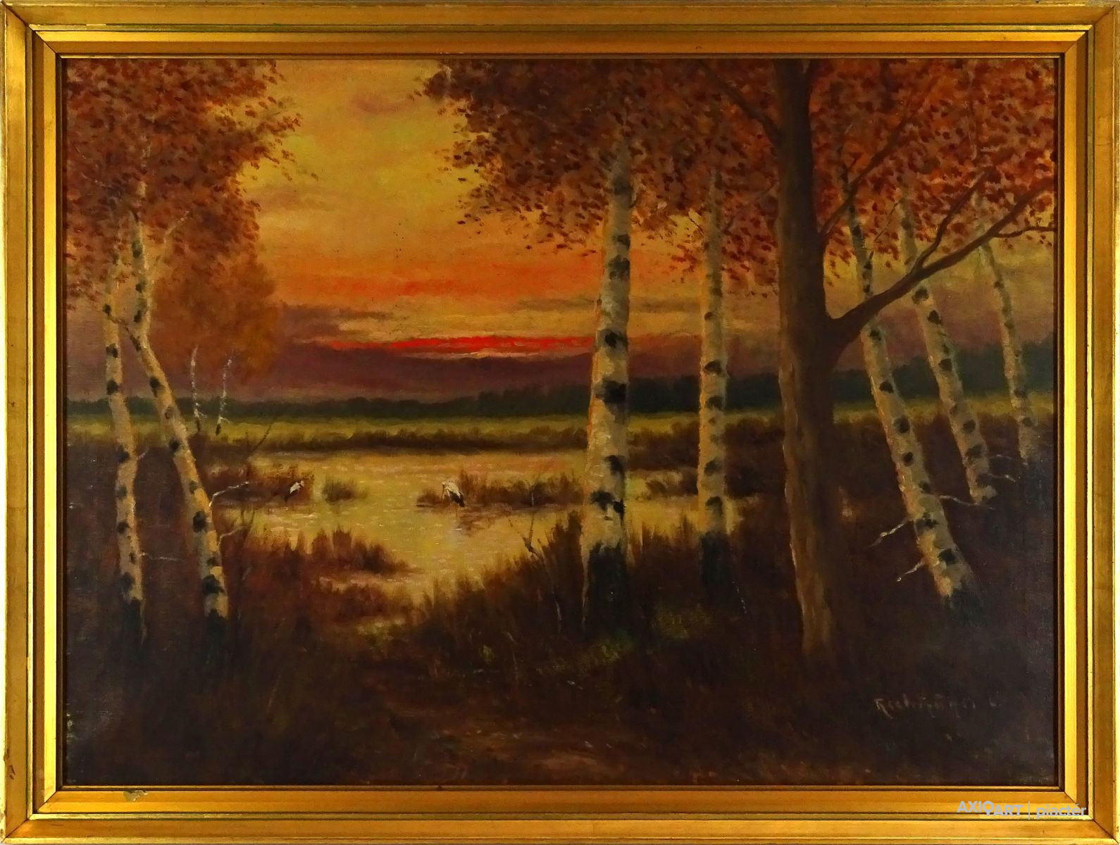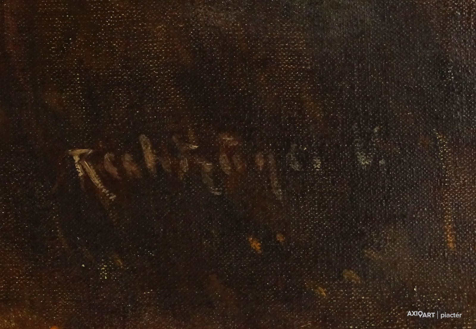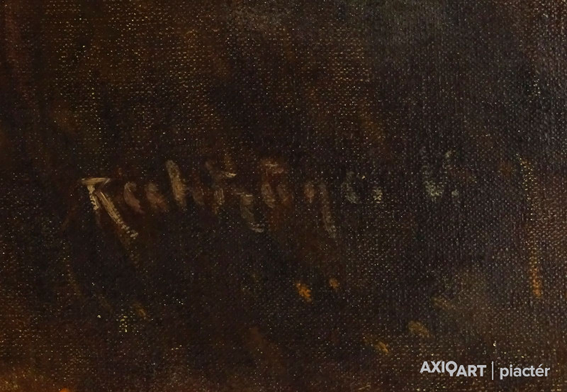 [1E894/032] Olaj vászon festmény, régi nagy méretű aranyozott keretben. Jelzés jobbra lent: Rentzügel V. Magasság: 67 cm Szélesség: 87 cm Súly: 2.35 kg
