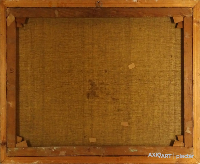 [FK0037/Z018] A kép mérete: 50 x 70 cm keret nélkül. Készült: Olaj, Vászon A kép Paizs László (Szentpéterúr, 1935) alkotása. Jelezve Jobbra lent "P. L." A festmény jó állapotban van. Keret: Ép A festmény hátoldalán a Képcsarnokvállalat címkéje található. Magyar festők és grafikusok életrajzi lexikona I-II. Festő. Tanulmányait a budapesti Iparművészeti Főiskolán végezte 1959-ben. Z. Gács György, Rákosy Zoltán és Szentiványi Lajos növendéke volt. A '60-as évek első felében hagyományosabb felfogású olajképeket festett, mozaikokat, freskókat, utóbb a pop-art körébe tartozó, a francia Arman munkáival rokon műveket alkotott. 1961 óta kiállító művész. Egyéni (Fényes Adolf Terem, Csók Galéria, Műcsarnok, Magyar Nemzeti Galéria, Halászbástya, Bástya Galéria, Vigadó Galéria, Budapest Galéria, Győr, Szombathely, Szeged, Zalaegerszeg, Duisburg, Aix-en-Provence, stb). és vegyes (Ernst Múzeum, Műcsarnok, Óbuda Galéria, Magyar Nemzeti Galéria, Csók Galéria, Vigadó Galéria, Székesfehérvár, Kaposvár, Pécs, Hódmezővásárhely, Firenze, Milano, Padova, Nápoly, Velence, Düsseldorf, Aachen, Genf, stb) tárlatokon vett részt. 1980-ban Munkácsy-díjjal jutalmazták, 1988-ban Érdemes Művész kitüntető elismerésben részesült. Munkáit őrzi a Magyar Nemzeti Galéria, a Fővárosi Képtár, a szombathelyi képtár, a pécsi Janus P. Múzeum, a székesfehérvári István Király Múzeum és a dunaszerdahelyi Kortárs Magyar Galéria. (H.B.: Műv, 1972/4, K.Gy.: Műv. 1977/2, K.G.: Műv. 1978/10, M.L.: Műv, 1983/5, R.G.: Műv, 1987/9, Sz.Gy.: Új Műv. 1995/4, MK) Magyar festők és grafikusok életrajzi lexikona I-II. Műgyűjtők és kereskedők kézikönyve Festő. Tanulmányait a bp.-i Iparművészeti Főiskolán végezte. Mozaikokat ferskókat, utóbb a pop-art körébe tartozó, a francia Arman műveivel rokon műveket alkotott. Mozaikok: a Szegedi Megyei Tanács, a Pécsi Óvoda, a Gödöllői Agrártudományi Egyetem. Freskók: Budapest - Csatárka úti Gyermekotthon. 1971-ben a Fényes Adolf Teremben volt kiállítása, 1983-ban pedig a szegedi Móra Ferenc Múzeumban nagyszabású tárlatokon mutatta be munkáit. 1988-ban érdemes művész kitüntető elismerésben részesült. (MK) Magyar festők és grafikusok adattára Az Iparművészeti Főiskolán végzett 1959-ben. Mozaikokat (Szeged, Megyei Tanács; Pécs, Óvoda; Gödöllő, Agrártudományi Egyetem), freskókat (Budapest, Csatárka úti Gyermekotthon), újabban a pop art körébe tartozó, a francia Arman műveivel rokon műveket alkotott. 1971-ben a Fényes Adolf Teremben nyílt kiállítása. 1983 februárjában a szegedi Móra Ferenc Múzeumban megrendezett nagyszabású tárlaton mutatta be alkotásait. 1988-ban érdemes művész kitüntető elismerésben részesült. - MK Művészeti lexikon I-IV. (Szentpéterur, 1935. dec. 26.- ): festő. Az Iparművészeti Főiskolán 1959-ben végzett Rákosy Zoltán, Z. Gách György és Szentiványi Lajos növendékeként. Épületdiszítő mozaikokat, (Szeged, Megyei Tanács, 1961; Pécs, Óvoda, 1964), műanyagfreskókat (Bp., Csatárka úti Gyermekotthon, 1964) és gobelinterveket készít. Kortárs magyar művészeti lexikon I-III. Festő, szobrász, grafikus. 1959: MIF, mesterei: Z. Gács György, Rákosy Zoltán, Szentiványi Lajos. 1980: Munkácsy-díj; 1988: érdemes művész. Főiskolás éveinek második felében, majd azt követően számos murális munka kivitelezésében vett részt, Fónyi Géza, Konecsni György, Z. Gács György, Rákosi Zoltán és Domanovszky Endre mellett dolgozva. A 60-as évek első felének hagyományosabb fölfogású olajképeket festett. 1964-ben a Velencei B.-n megismerkedett az amerikai pavilonban a pop art Európában akkor még újnak számító törekvésével, és részben ez inspirálta, hogy 1967-ben textil, fém, bőr anyagú "varrottas" képeket küldjön az FKS éves tárlatára; a megnyitó előtt többek között az ő munkáit is eltávolították a falról. A 70-es években pop art-os objekteket (A trónörököspár politikai gyilkosság áldozata lett, 1970, plexiüveg, újság, szarvasbogarak), majd konstruktív, átlátszó plexiüveg plasztikákat készített belső fénytörő határfelületekkel. A 80-as években készültek az anyagában színezett, konstruktív, nagyméretű poliészter szobrai, majd színes poliészter táblaképeket alkotott, mesterségesen roncsolt felületekkel, mintha régészeti leletek vagy atomtámadás utáni festmény-szurrogátumok lennének. Ekkor kezdett organikus plaszikájú bronzszobrokat is mintázni. A 90-es években, a táblaképek és szobrok mellett nagyméretű, egyedi grafikákat készített, formavilágában némileg a roncsolt táblaképekből kiindulva, de szinte kizárólag az emberi alakból elvonatkoztatott torzókat megjelenítve. Ek: 1966: Művészklub, Győr; 1971: Fényes A. T.; 1972: Bercsényi 28-30 G.; 1973: BME B-épület; 1976: Csók G.; 1977: G. Hildebrandt, Duisburg (NSZK); 1979: Bástya G., Halászbástya; Helyőrségi Műv. H., Nagyatád; József A. Műv. Közp., Szeged; Göcsej M., Zalaegerszeg; 1982: Bezzegh G., Küsnacht (CH); 1983: Móra F. M., Szeged; 1987: Műcsarnok (kat.); MNG; 1988: Pandora G., Badacsonytomaj; 1989: Parktheatter, Iserlohn (NSZK); Qualitas G.; Hevesi S. Színház, Zalaegerszeg; 1990: Vasarely Fondation (Ferdinánd Judittal, Fóth Ernővel), Aix-en-Provence (FR); 1994: Vigadó G.; 1997: Pest Center G.; 1998: Budapest G. (kat.); 1999: Pest Center G. (kat); G. Arcis, Sárvár; MMA, Bp.; 2001: SZK, Szhely; Ernst M. (kat.) Vcsk: 1961, 1964, 1966: FKS, Ernst M.; 1962: 9. Magyar Képzőműv. kiállítás, Műcsarnok; 1967: Mai magyar festészet, Új-Delhi; 1969: Vas megyei művészek, Savaria M., Szhely; V. Orsz. Grafikai B., Miskolc; 1971: Új művek, Műcsarnok; 1972: Fiatal művészek Budapestről. Likovni Salon, Újvidék (YU); 1972, 1973: Balatonboglár