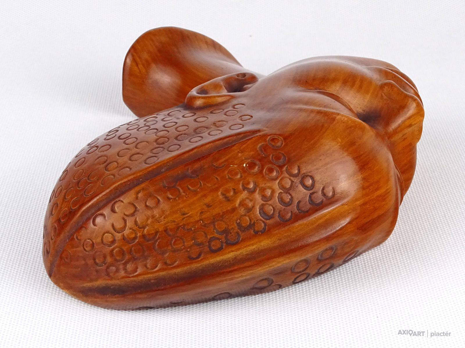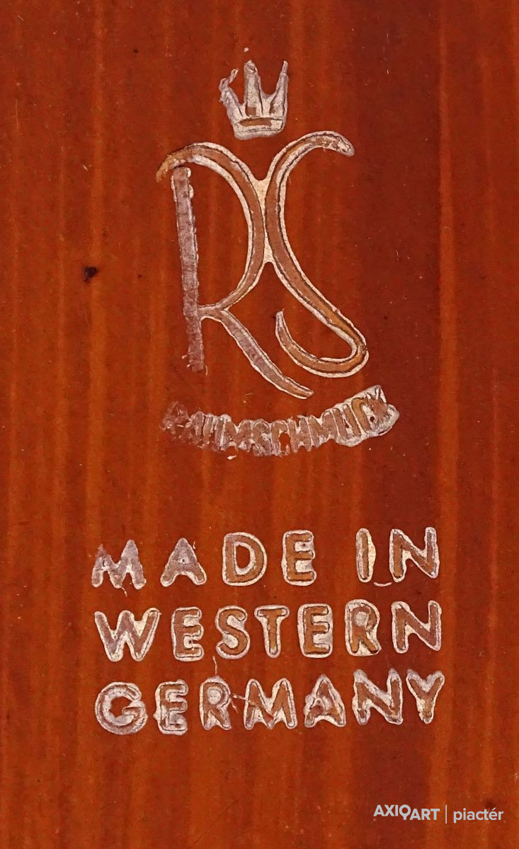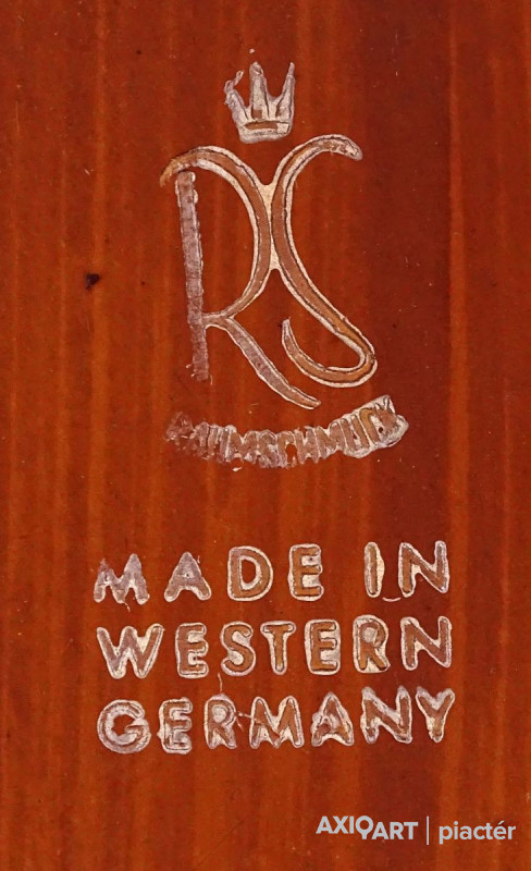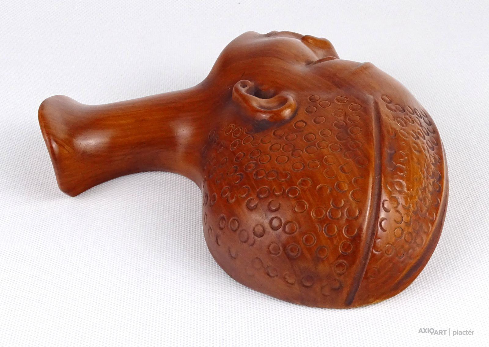 [0U704/BX-9] Hibátlan állapotú, jelzett, háromalakos kerámia figurális mécsestartó figura. Jelzés: KISS ROÓZ Magasság: 19 cm Szélesség: 6 cm Hosszúság: 16 cm Súly: 0.639 kg Kiss Roóz Ilona keramikus Születési hely: Szatmárnémeti [Satu Mare, RO] Születési dátum: 1920 Kiállítások az adatbázisban:  Kiss Roóz Ilona életműkiállítása Mesterei: Orbán Antal, Ohmann Béla. 1939-43: Iparművészeti Iskola, mesterei: Orbán Antal, Ohmann Béla. 1956, 1962: Munkácsy-díj; 1980: érdemes művész; 1984: SZOT-díj; 1994: MSZOSZ díja; 1995: Magyar Köztársasági Érdemrend Középkeresztje. A magyar kerámia Kovács Margit által teremtett naiv-népies irányzatának jeles művelője. Edényeit, kisplasztikáit, ill. murális alkotásait vidám színvilág és kedves humor jellemzi. 1948 és 1952 között tanított az Iparművészeti Főiskolán, azóta szabadfoglalkozású. Egyéni kiállítások 1966 • Csók Galéria, Budapest 1971 • Csók Galéria, Budapest 1980 • Budavári Ipaművészeti Bolt, Budapest 1984 • Petőfi Művelődési Ház, Tiszaluc 1989 • Kispréposti Palota, Eger (állandó kiállítás) 1992 • Bécs 1995 • Minigaléria, Miskolc 1996 • Petőfi Művelődési Ház, Tiszaluc 1997 • Derkovits Művelődési Központ, Tiszaújváros. Válogatott csoportos kiállítások 1947 • Karácsonyi kiállítás, Budapest • Fővárosi Művelődési Központ 1952 • Iparművészeti kiállítás, Ernst Múzeum, Budapest 1956 • Iparművészeti kiállítás, Iparművészeti Múzeum, Budapest 1958 • Magyar kerámia kiállítás, Vallauris 1959 • Magyar képzőművésznők kiállítása, Ernst Múzeum, Budapest 1959 • IV. Országos Iparművészeti Kiállítás, Műcsarnok, Budapest 1963 • Modern magyar kerámia, Royal Festival Hall, London 1965 • Országos Iparművészeti Kiállítás, Műcsarnok, Budapest 1968, 1970 • I., II. Országos Kerámia Biennálé, Pécs 1973 • Magyar kerámia, Ankara, Isztambul 1975 • Tárgy és alkotója, Iparművészeti Múzeum, Budapest 1982 • Magyar kézműves kerámia, Siklós 1995 • XX. századi magyar keramikusok, Iparművészeti Múzeum, Budapest • Az agyag mesterei, Vigadó Galéria, Budapest 1998 • Őszi Kerámia Kiállítás, Olaf Palme Ház, Budapest Művek közgyűjteményekben Köztéri művei kerámia dombormű (1958, Pereces, bölcsőde) kerámia napóra (1959, Székesfehérvár, Béke téri iskola) csempeburkolat (1961, Szeged, rendelőintézet) falikép (kerámia, 1962, Sopron, Gyermekszanatórium) kerámia falikép (1966, Békéscsaba, bölcsőde) Irodalom GÁL J.: ~ 77 éves. Beszélgetés a művésszel, Magyar Iparművészet, 1997/4. KESZTHELYI K.-LACZKÓ I.: A magyar kerámiaművészet I., Alkotók, adatok 1945-1998, Budapest, 1999. Vadas József + MAOE Forrás: artportal.hu