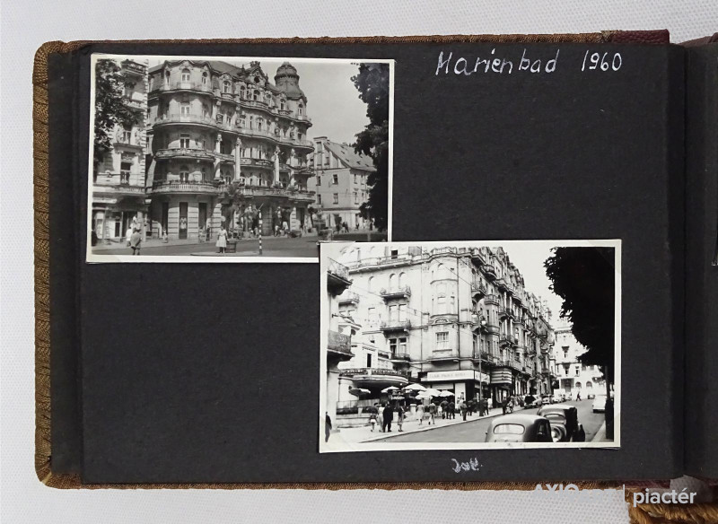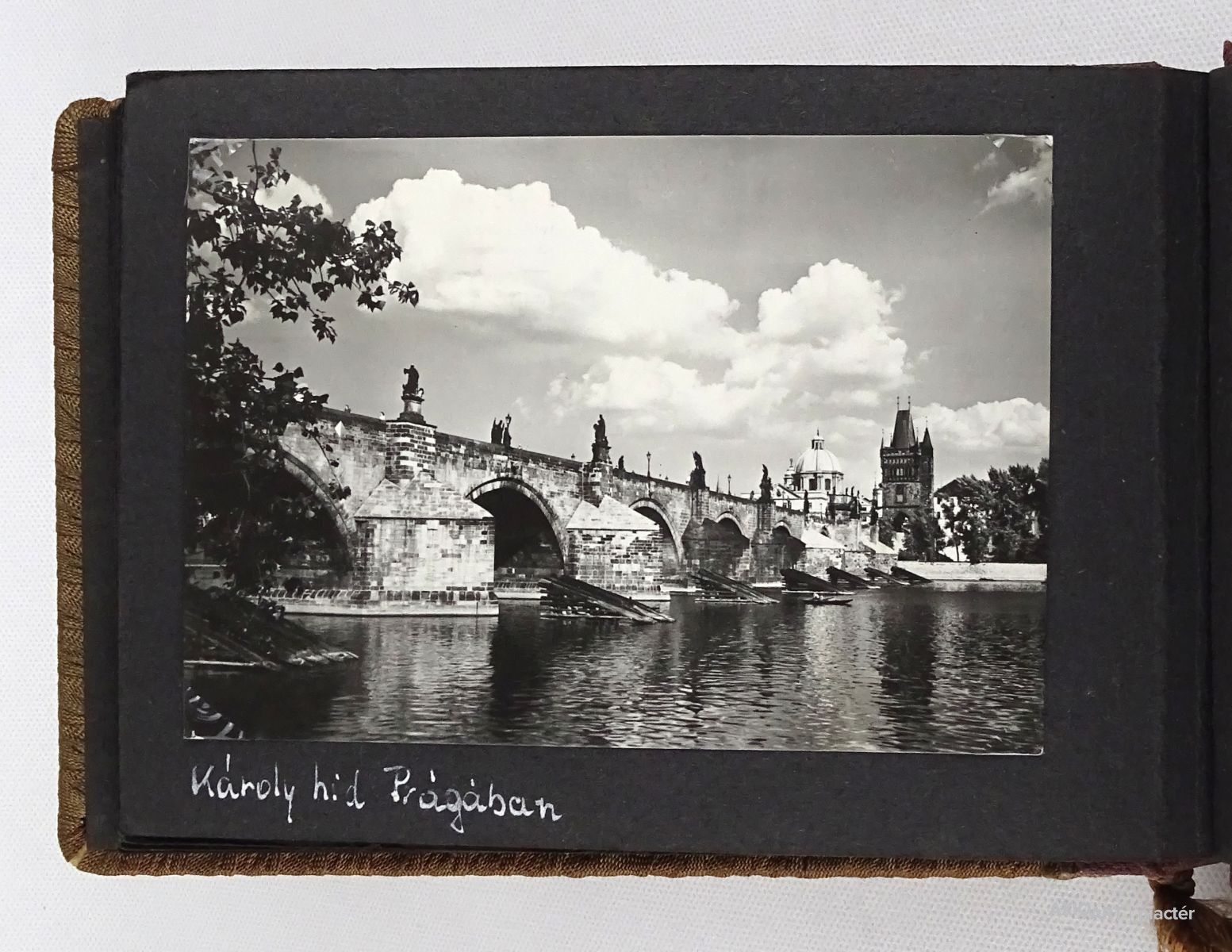 [1R132/X256] Régi fényképalbum, családi fotó gyűjtemény. Benne régi, a kirándulások alatt készített összesen 75 darab képpel. Feliratok, helyszínek: - PRÁGA 1960 - KARLSBAD 1960 - KARLSBAD - FILMFESZTIVÁL - 1960 - IRINA PETRESKU - MARIENBAD 1960 - TATRA - LOMNIC -GRAND HOTEL PRAGA 1960 - SZILÉZIA 1962 - POZSONY 1962 - LŐCSE 1960 - CSORBA TÓ - KÁROLY HÍD PRÁGA Szélesség: 14 cm Hosszúság: 23.3 cm Súly: 0.41 kg