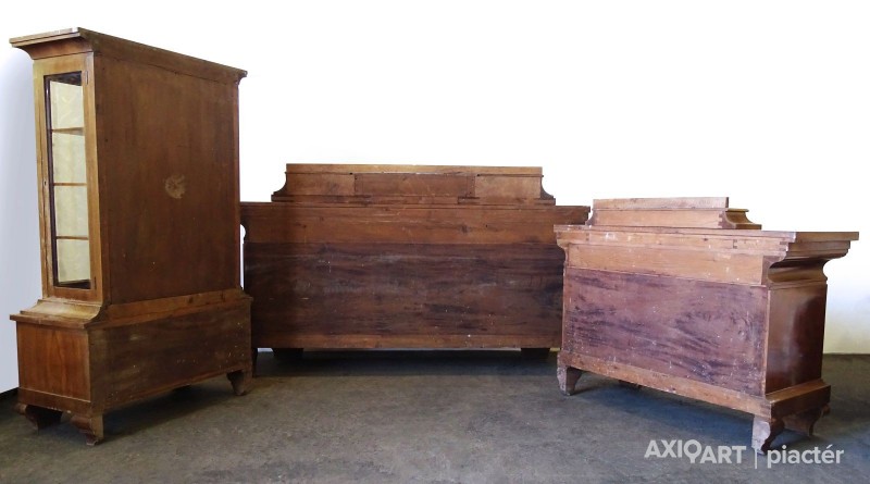 Gyönyörű, régi, 3 darabos tálaló garnitúra. A bútor igényes, dió, diógyökér furnérozású.